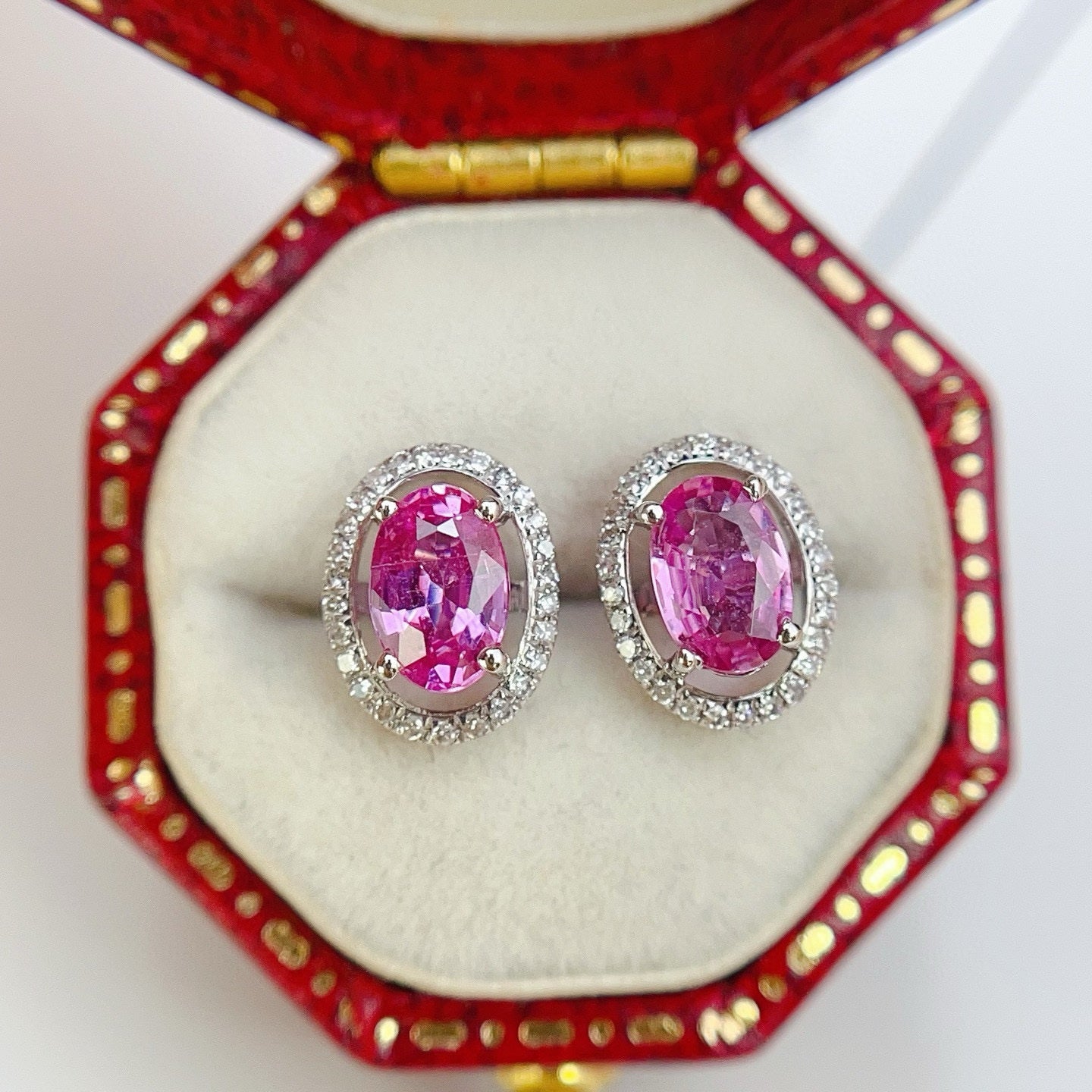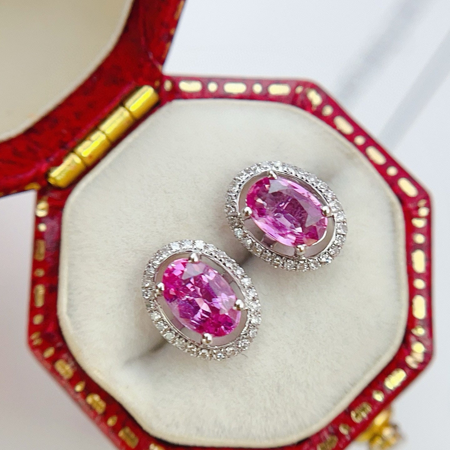 14K GOLD 1.25 CT NATURAL PADPARADSCHA SAPPHIRE & DIAMOND EARRINGS