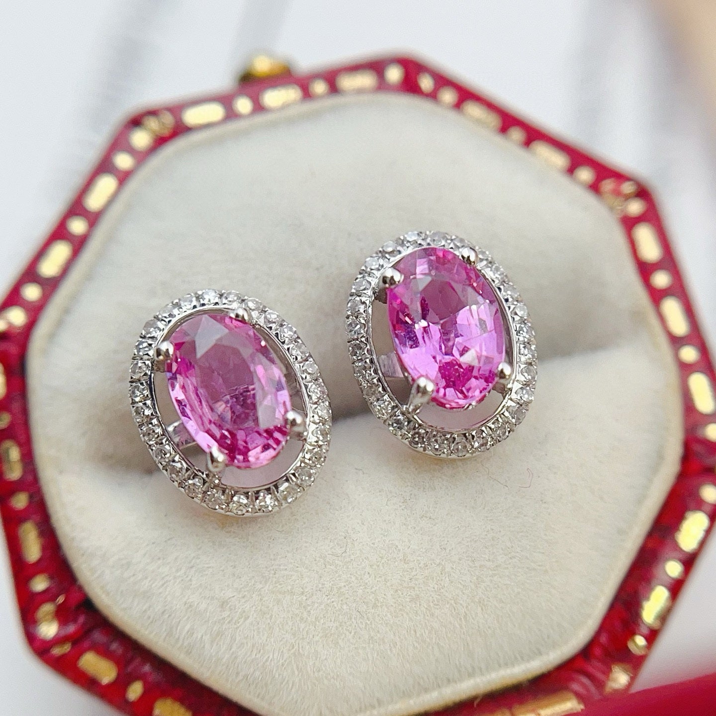 Ref:231021229 // Gold Content:14K Gold // Main Gemstone:Padparadscha Sapphire // Shape:Oval // Carat Weight:1.25ct // Color:Orangish Pink // Treatment:Natural // // Adjacent Gemstone 2 : Diamond // Number of stones:54 // Shape:Round // Clarity Grade:VS-SI // Color:H // Treatment:Natural // Cut Grade:G //