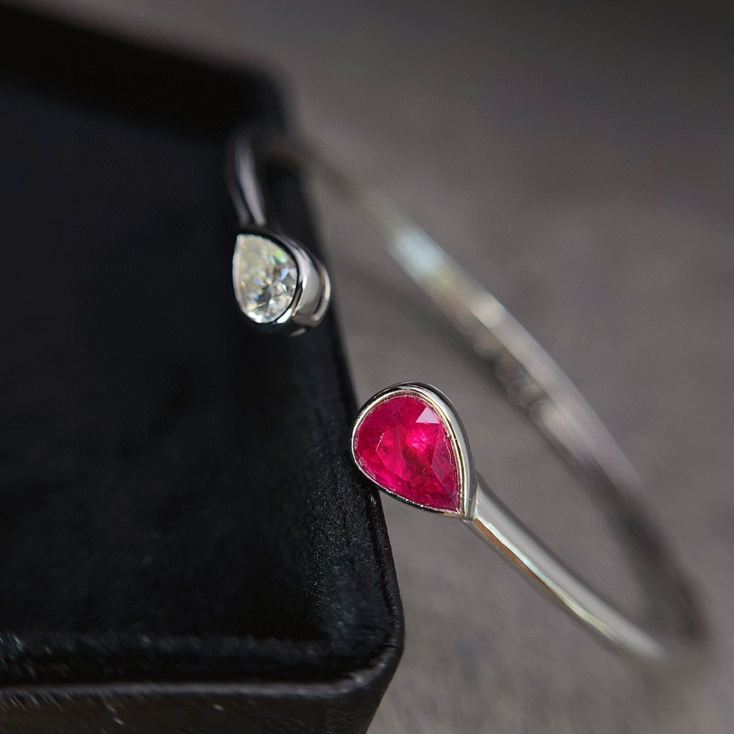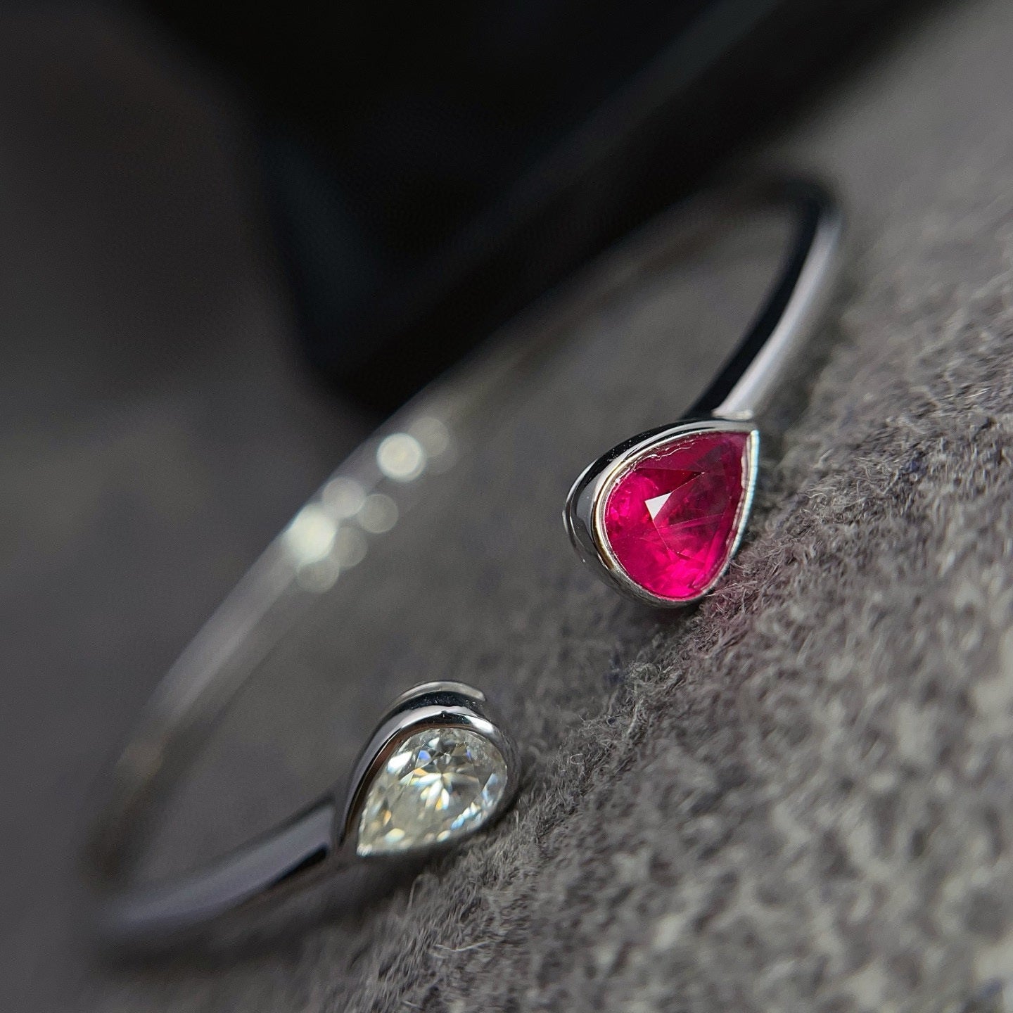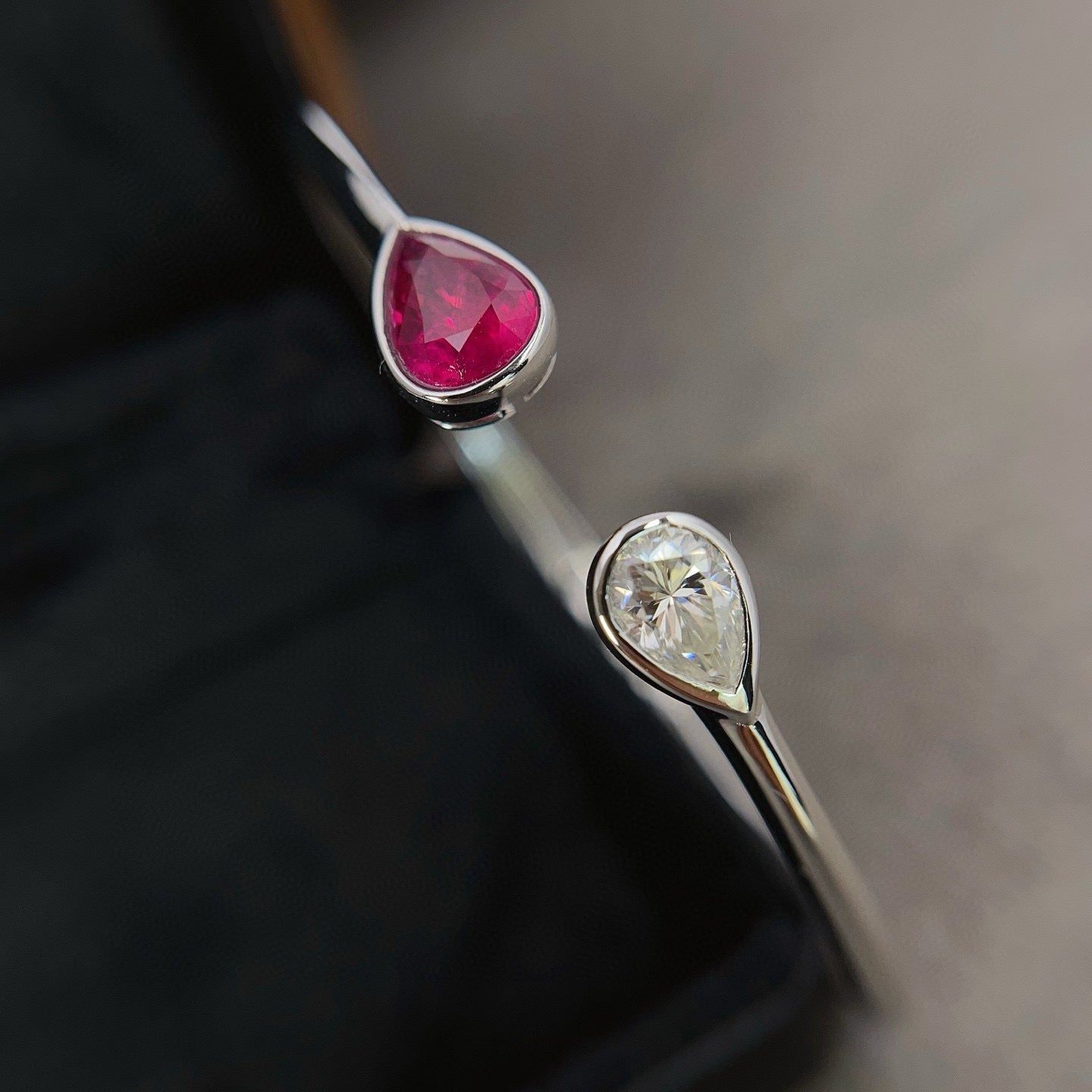 Ref:231021136 // Gold Content:14K Gold // Main Gemstone:Ruby // Shape:Pear // Carat Weight:1.25ct // Color:Red // Treatment:Natural // // Adjacent Gemstone 2 : Sapphire // Number of stones:1 // Shape:Pear // Color:White // Treatment:Natural //