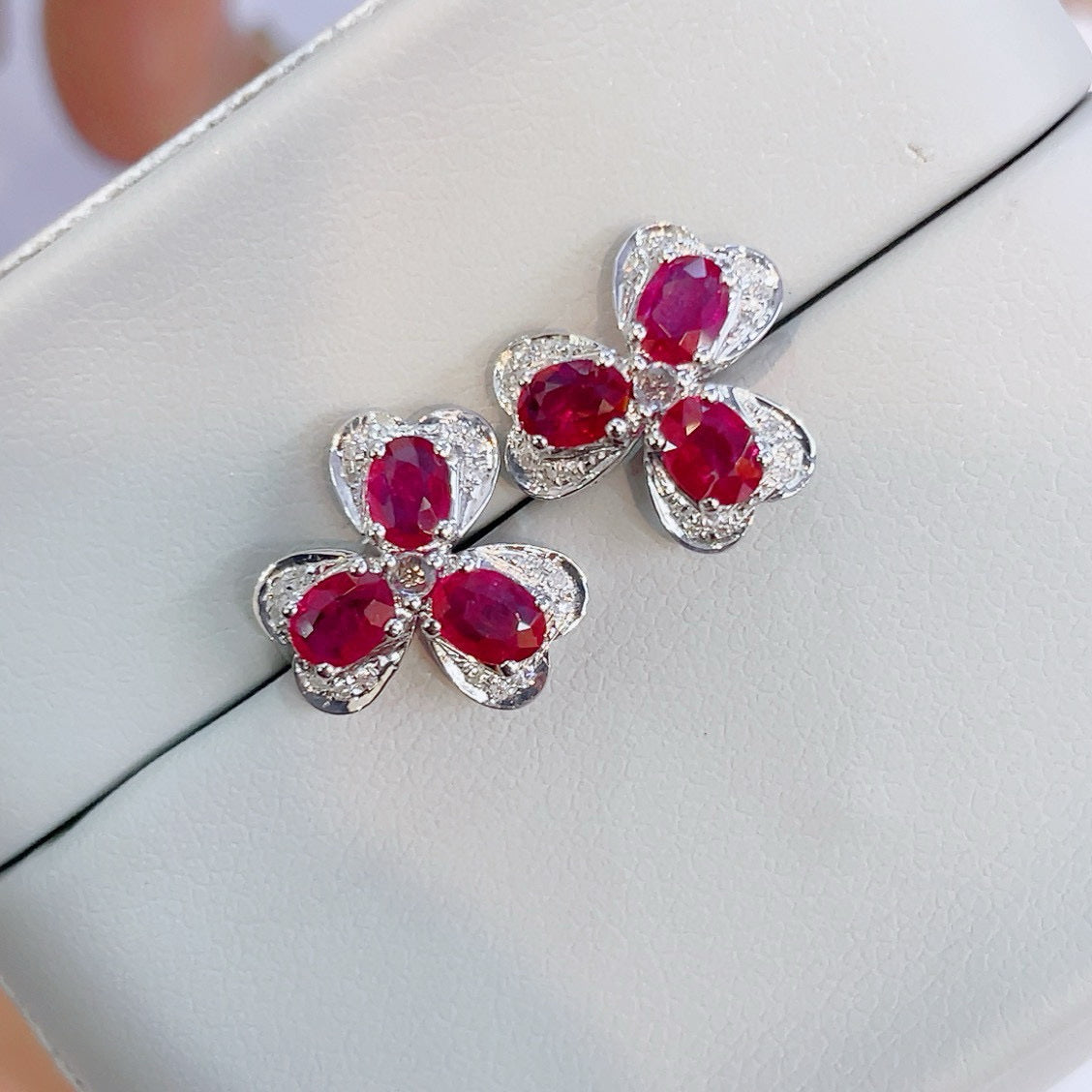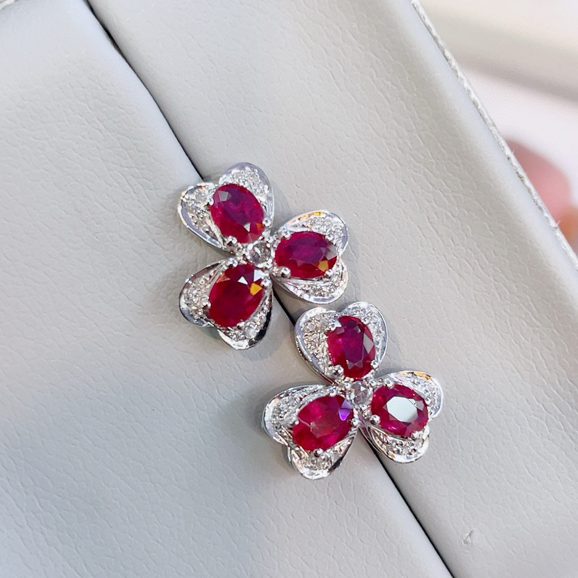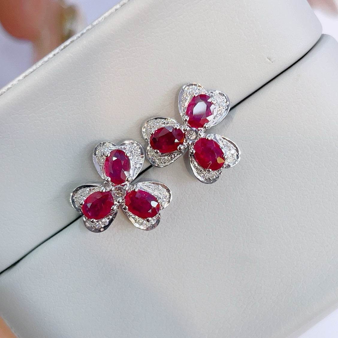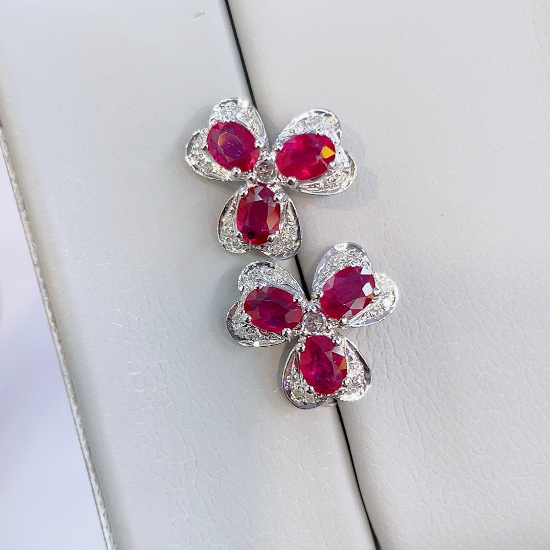 14K GOLD 1.27 CT NATURAL RUBY & DIAMOND & SAPPHIRE EARRINGS
