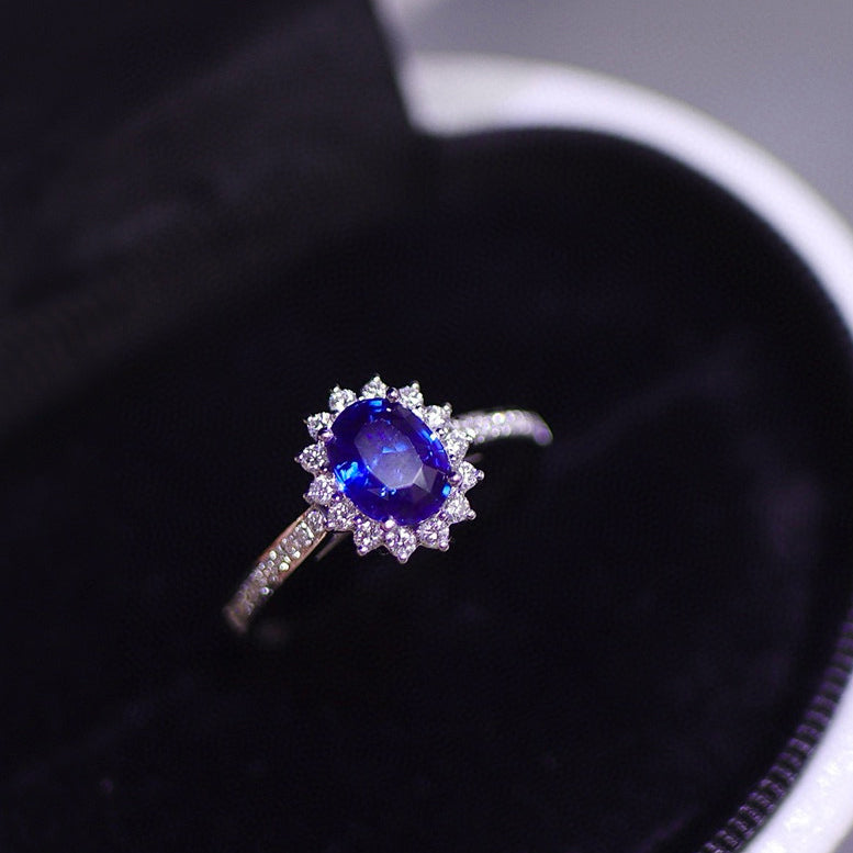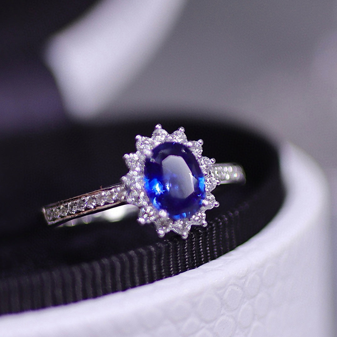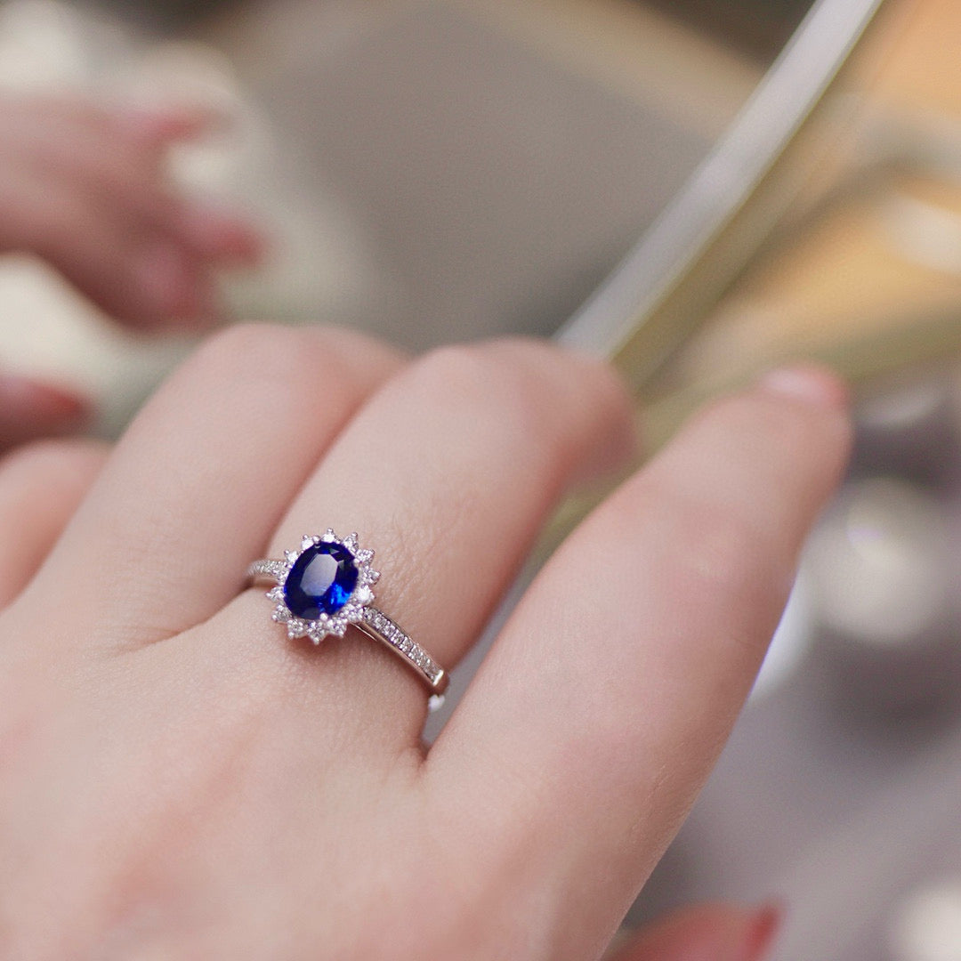 Ref:231025235 // Gold Content:14K Gold // Ring Size:7.25US // // Main Gemstone:Sapphire // Shape:Oval // Carat Weight:1.02ct // Color:Royal blue // Treatment:Natural // // Adjacent Gemstone 2 : Diamond // Shape:Round // Carat Weight:0.27ct // Clarity Grade:VS-SI // Color:H // Treatment:Natural // Cut Grade:G //