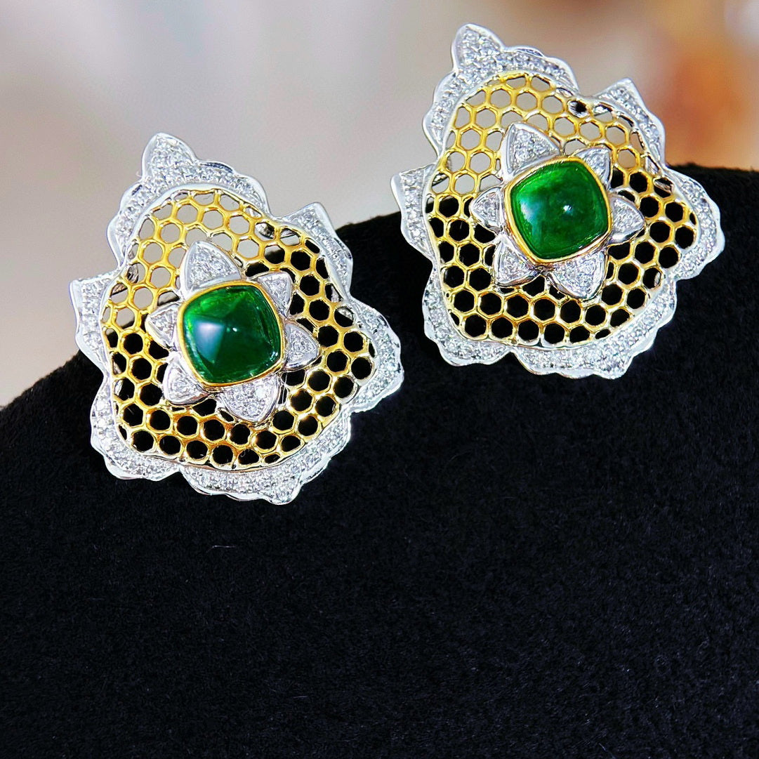 Ref:231023173 // Gold Content:14K Gold // Main Gemstone:Emerald // Shape:Suger-Loaf // Carat Weight:1.3ct // Color:Green // Treatment:Natural // // Adjacent Gemstone 2 : Diamond // Shape:Round // Clarity Grade:VS-SI // Color:H // Treatment:Natural // Cut Grade:G //