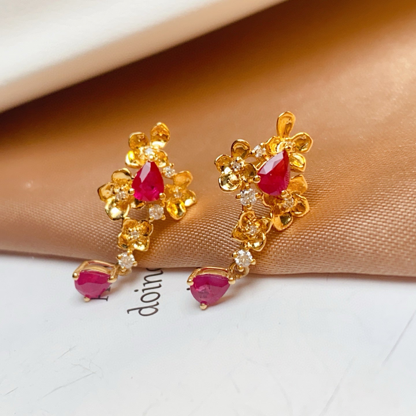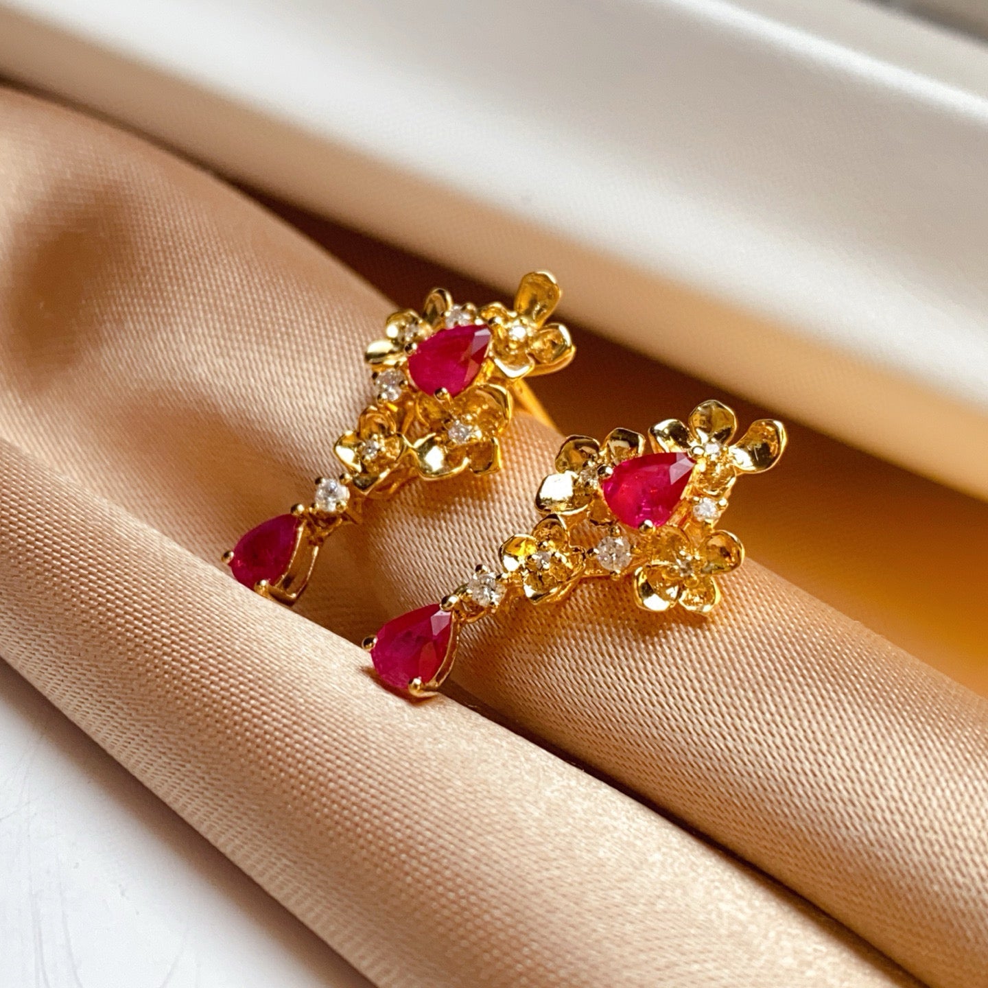 Ref:231019093 // Gold Content:14K Gold // Main Gemstone:Ruby // Shape:Pear // Carat Weight:1.3ct // Color:Red // Treatment:Natural // // Adjacent Gemstone 2 : Diamond // Number of stones:14 // Shape:Round // Clarity Grade:VS-SI // Color:H // Treatment:Natural // Cut Grade:G //