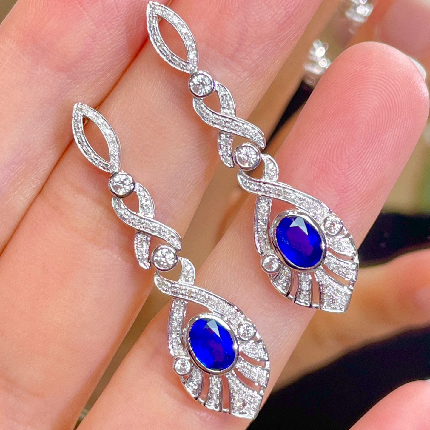 14K GOLD 1.3 CT NATURAL SAPPHIRE & DIAMOND EARRINGS