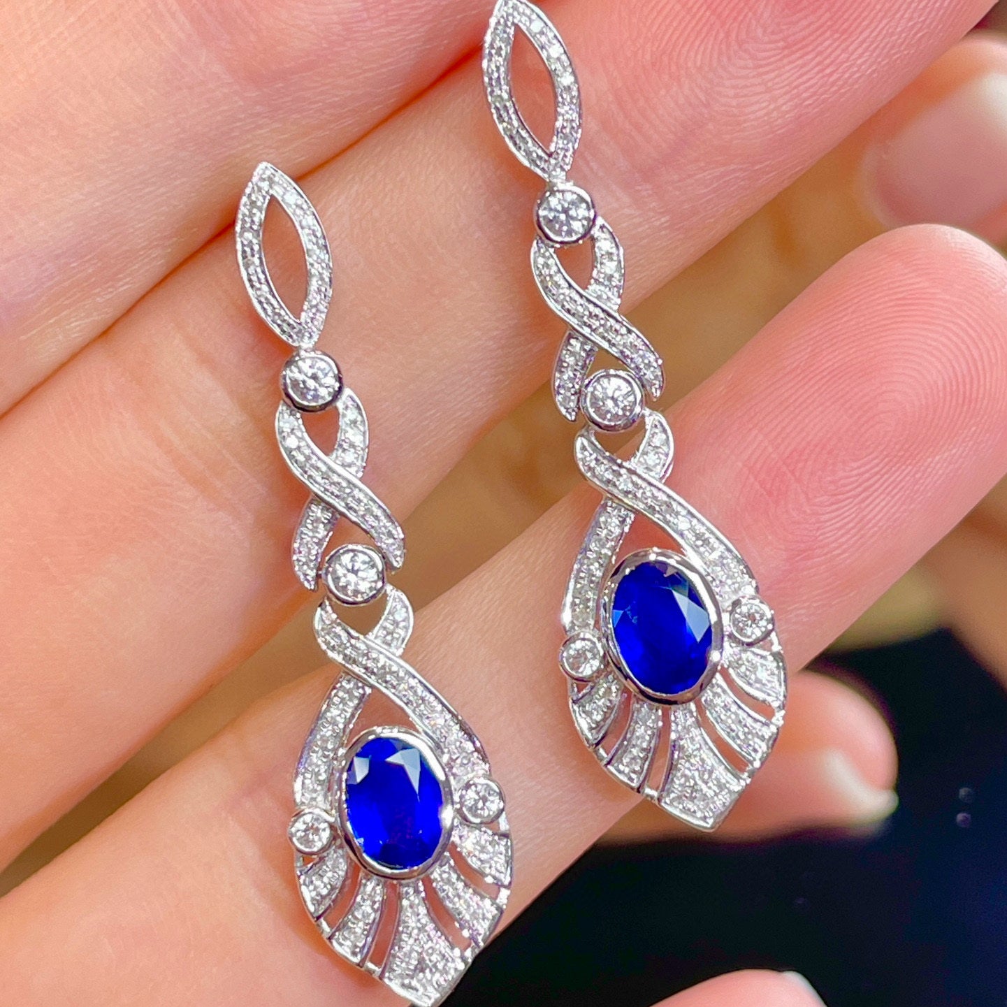 Ref:231023237 // Gold Content:14K Gold // Main Gemstone:Sapphire // Shape:Oval // Carat Weight:1.3ct // Color:Blue // Treatment:Natural // // Adjacent Gemstone 2 : Diamond // Shape:Round // Clarity Grade:VS-SI // Color:H // Treatment:Natural // Cut Grade:G //