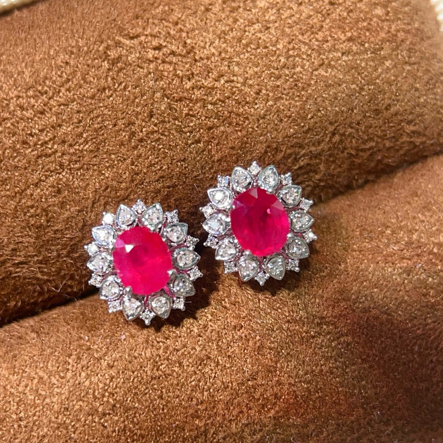14K GOLD 1.3 CTW NATURAL RUBY & DIAMOND EARRINGS