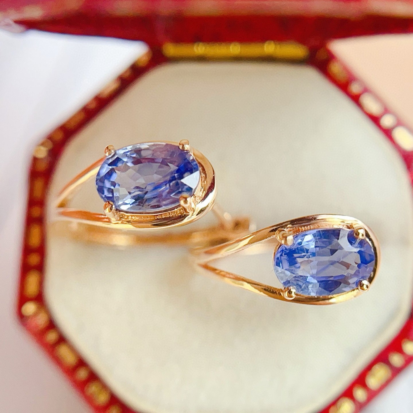 Ref:231021104 // Gold Content:14K Gold // Main Gemstone:Sapphire // Shape:Oval // Carat Weight:1.30ct // Color:Blue // Treatment:Natural //