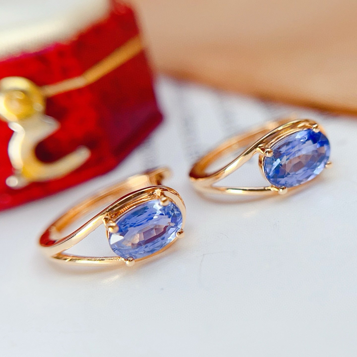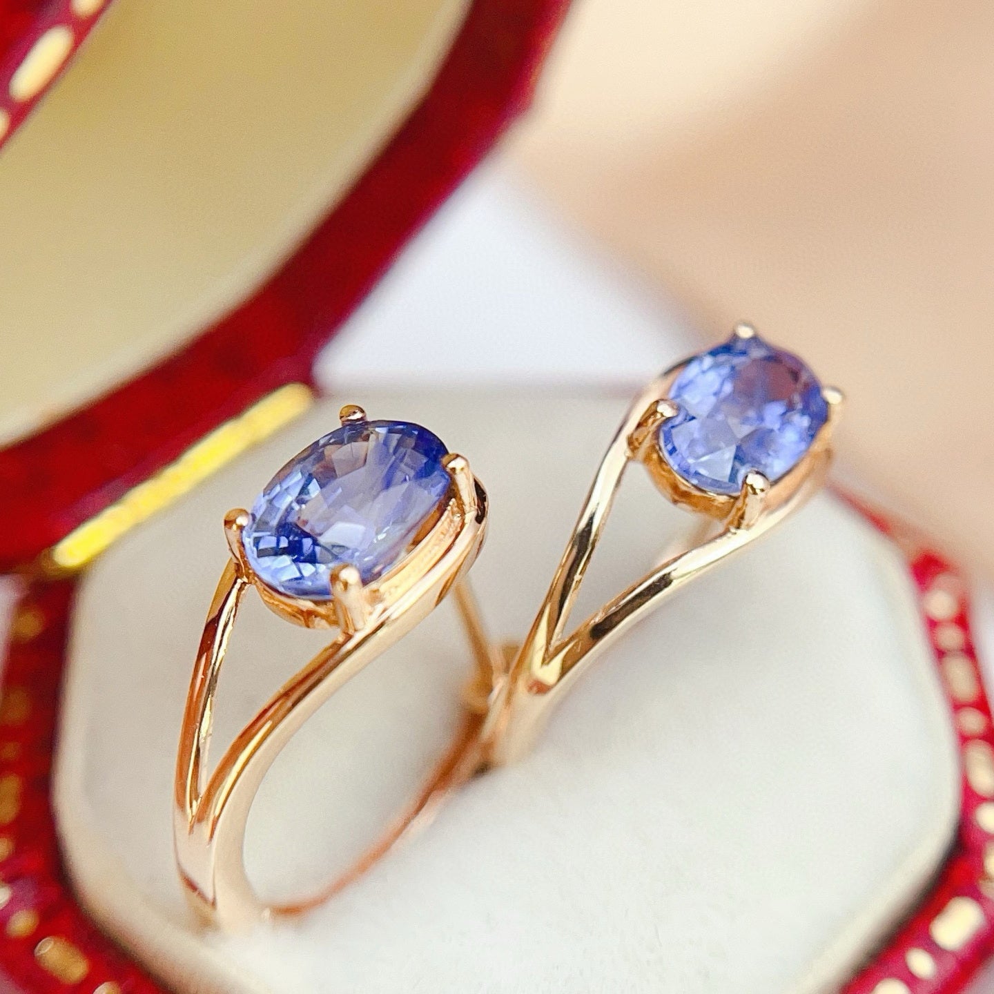14K GOLD 1.30 CT NATURAL SAPPHIRE EARRINGS
