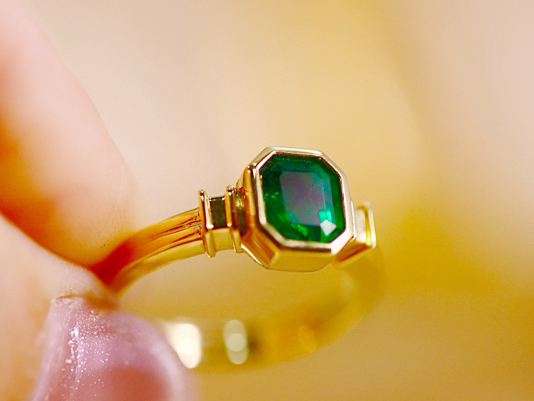 Ref:231025238 // Gold Content:14K Gold // Ring Size:7.25US // // Main Gemstone:Emerald // Shape:Octagonal // Carat Weight:1.33ct // Color:Vivid Green // Treatment:Natural //