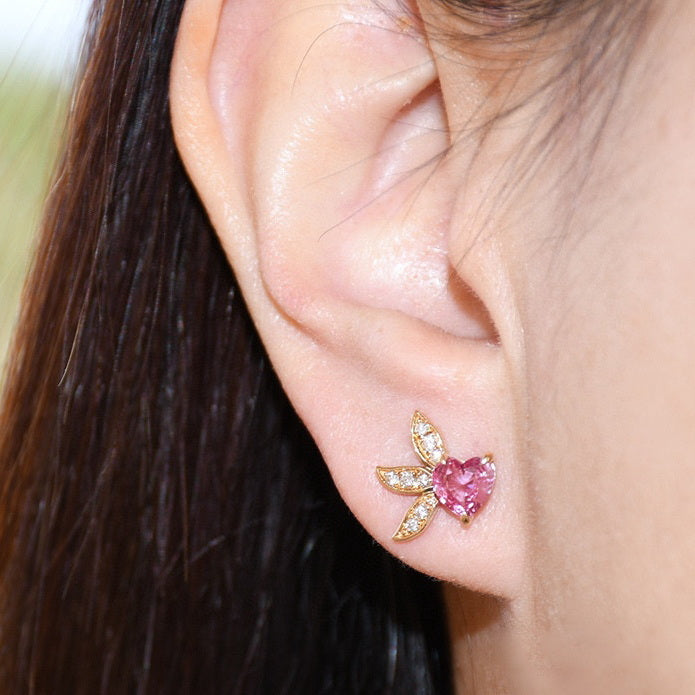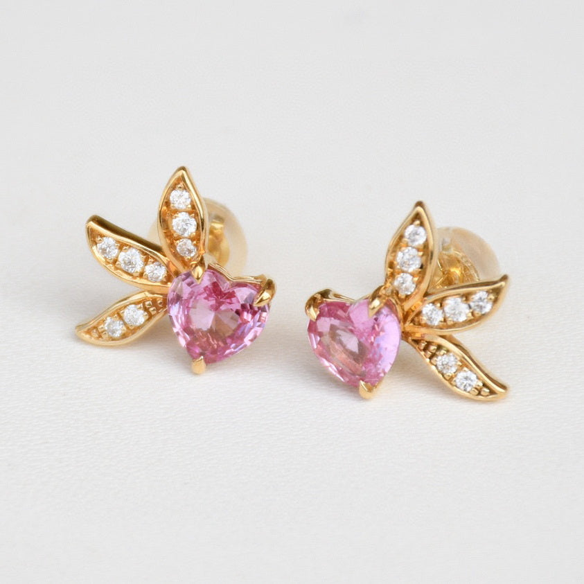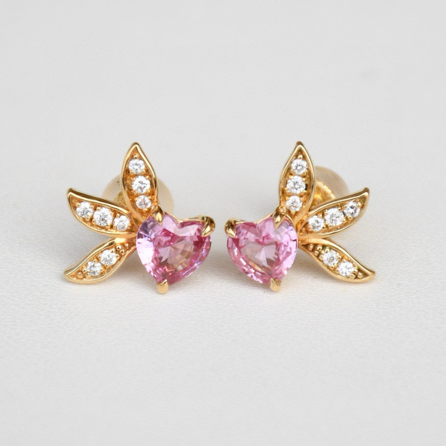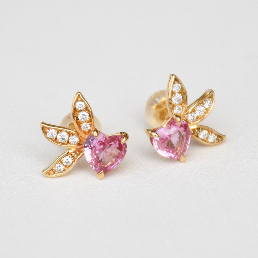 Ref:231023139 // Gold Content:14K Gold // Main Gemstone:Sapphire // Shape:Heart // Carat Weight:1.22ct // Color:Pink // Treatment:Natural // // Adjacent Gemstone 2 : Diamond // Shape:Round // Carat Weight:0.12ct // Clarity Grade:VS-SI // Color:H // Treatment:Natural // Cut Grade:G //