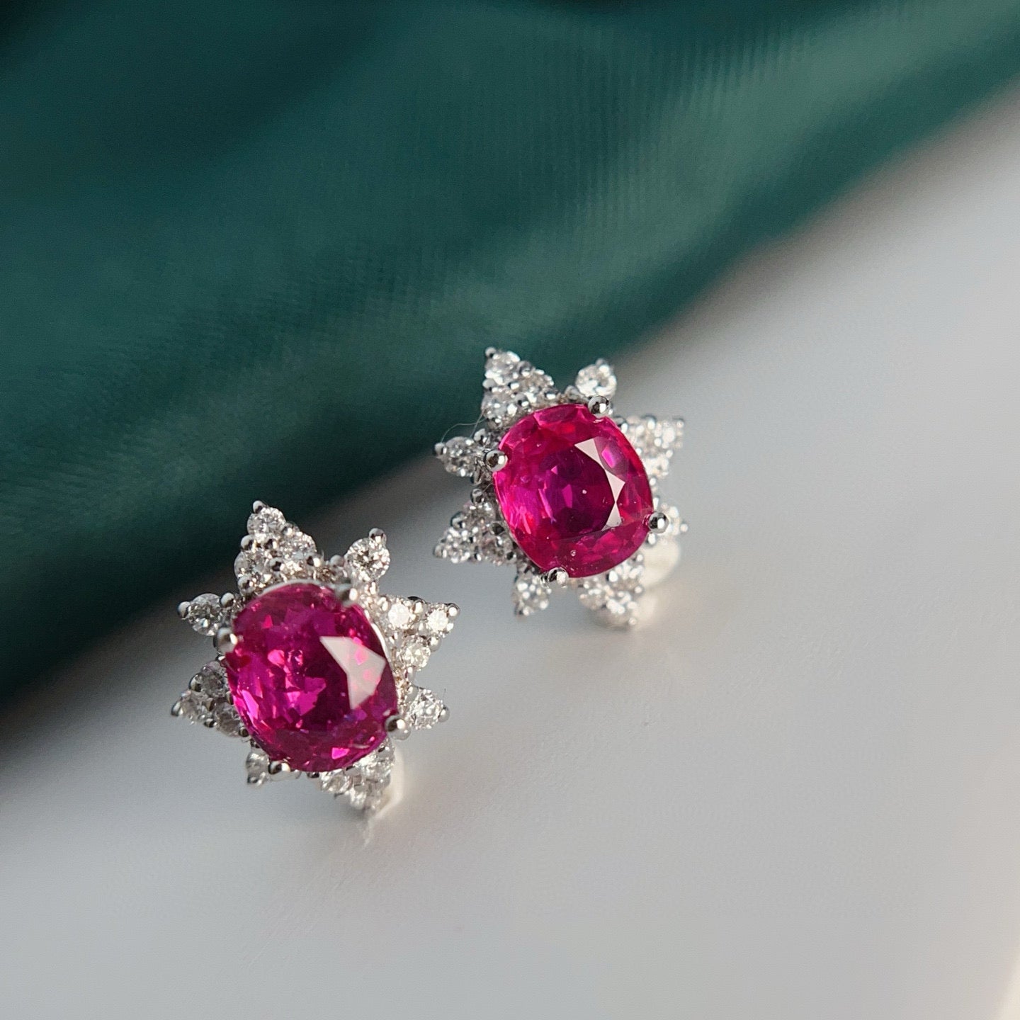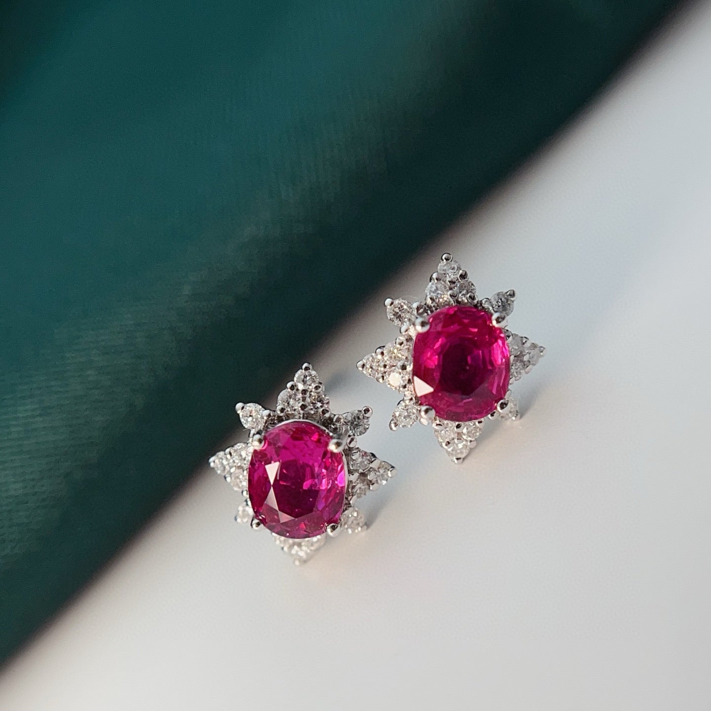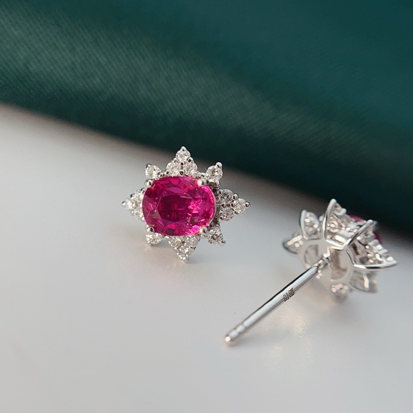 Ref:231027009 // Gold Content:14K Gold // Main Gemstone:Ruby // Shape:Oval // Carat Weight:1.35ct // Color:Red // Treatment:Natural // // Adjacent Gemstone 2 : Diamond // Number of stones:32 // Shape:Round // Clarity Grade:VS-SI // Color:H // Treatment:Natural // Cut Grade:G //