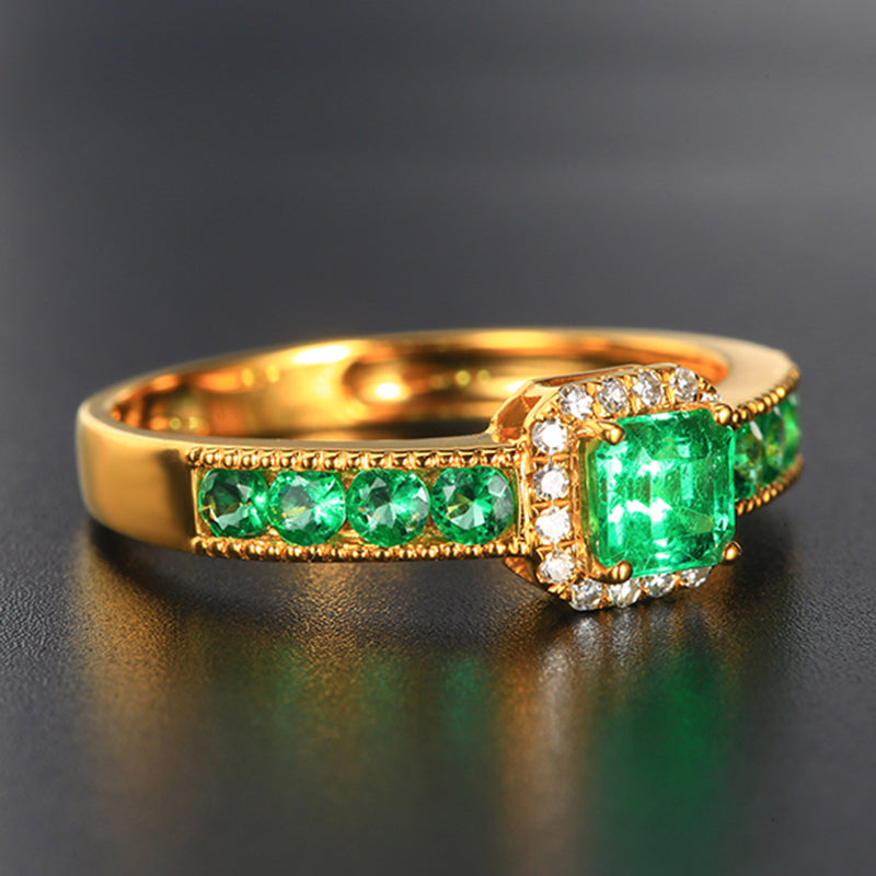 Ref:231021005 // Gold Content:14K Gold // Ring Size:7.25US // // Main Gemstone:Emerald // Shape:Multiply // Carat Weight:1.37ct // Color:Vivid Green // Treatment:Natural // // Adjacent Gemstone 2 : Diamond // Shape:Round // Clarity Grade:VS-SI // Color:H // Treatment:Natural // Cut Grade:G //