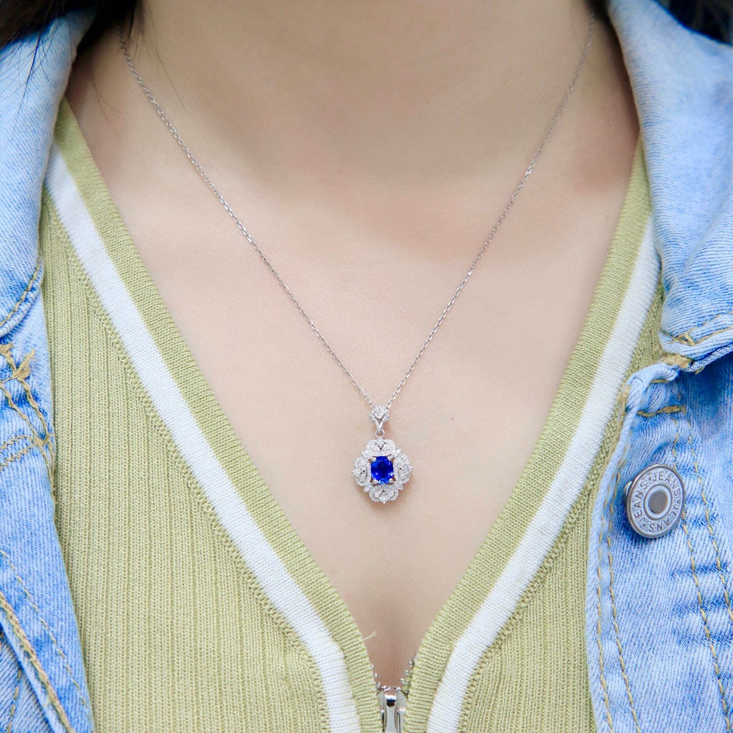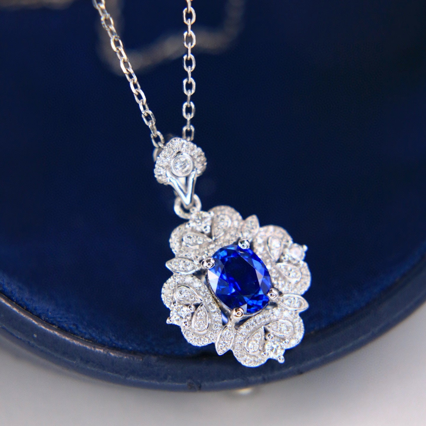 Ref:231025251 // Gold Content:14K Gold // Main Gemstone:Sapphire // Shape:Oval // Carat Weight:1.1ct // Color:Royal blue // Treatment:Natural // // Adjacent Gemstone 2 : Diamond // Shape:Round // Carat Weight:0.27ct // Clarity Grade:VS-SI // Color:H // Treatment:Natural // Cut Grade:G //