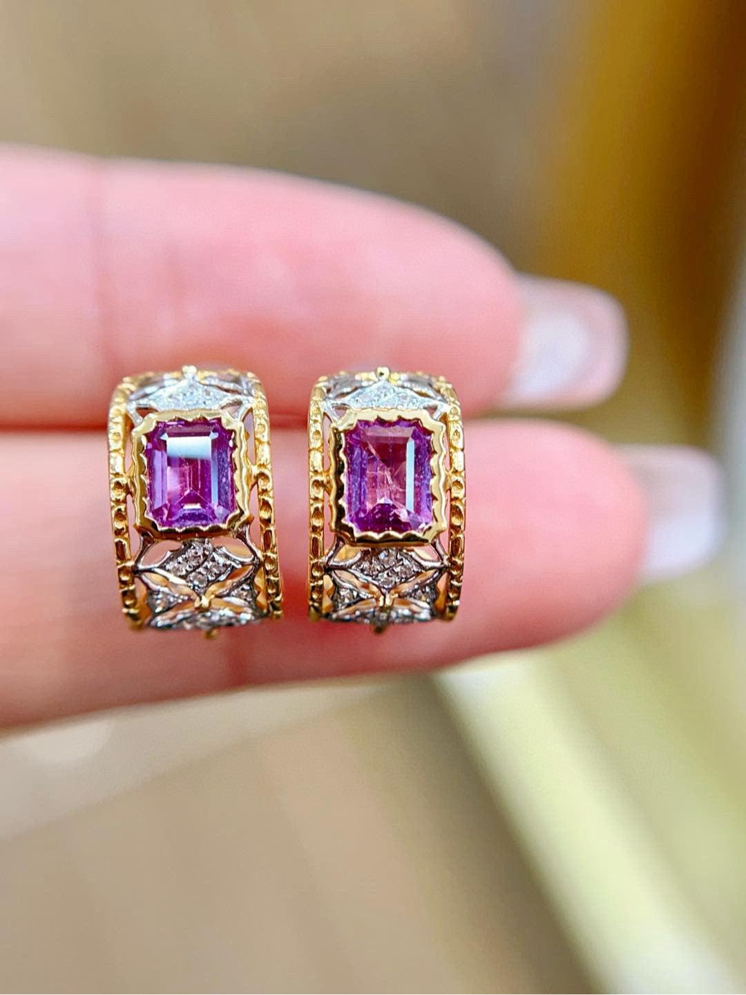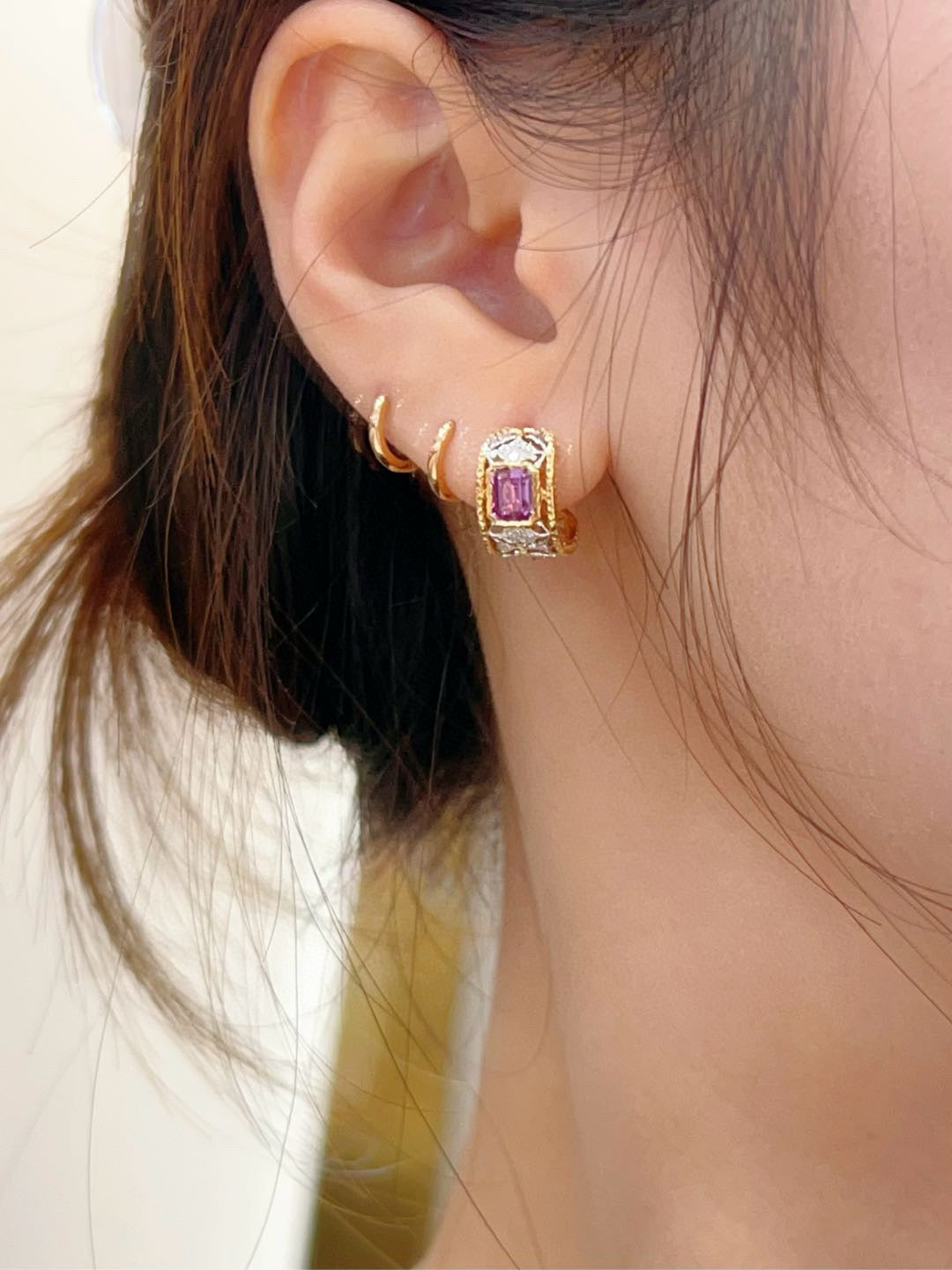 Ref:231019228 // Gold Content:14K Gold // Main Gemstone:Sapphire // Shape:Octagonal // Carat Weight:1.25ct // Color:Purple // Treatment:Natural // // Adjacent Gemstone 2 : Diamond // Shape:Round // Carat Weight:0.14ct // Clarity Grade:VS-SI // Color:H // Treatment:Natural // Cut Grade:G //