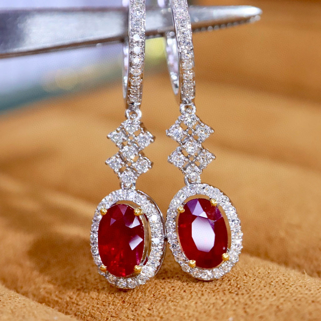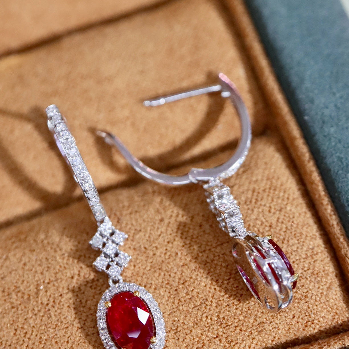 14K GOLD 1.4 CTW VIVID RED NATURAL RUBY & DIAMOND EARRINGS