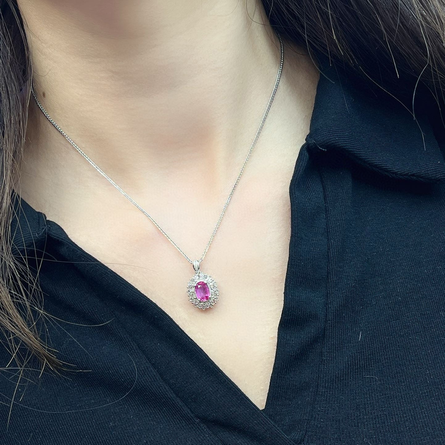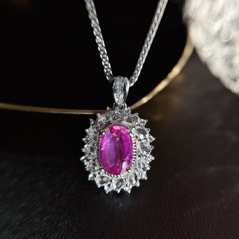 Ref:231021243 // Gold Content:14K Gold // Main Gemstone:Ruby // Shape:Oval // Carat Weight:1.40ct // Color:Red // Treatment:Natural // // Adjacent Gemstone 2 : Diamond // Number of stones:5 // Shape:Round // Clarity Grade:VS-SI // Color:H // Treatment:Natural // Cut Grade:G // // Adjacent Gemstone 3 : Sapphire // Number of stones:24 // Shape:Multiply // Color:White // Treatment:Natural //