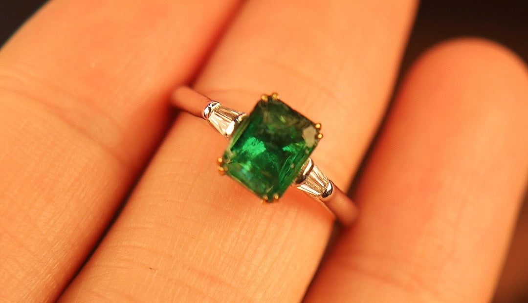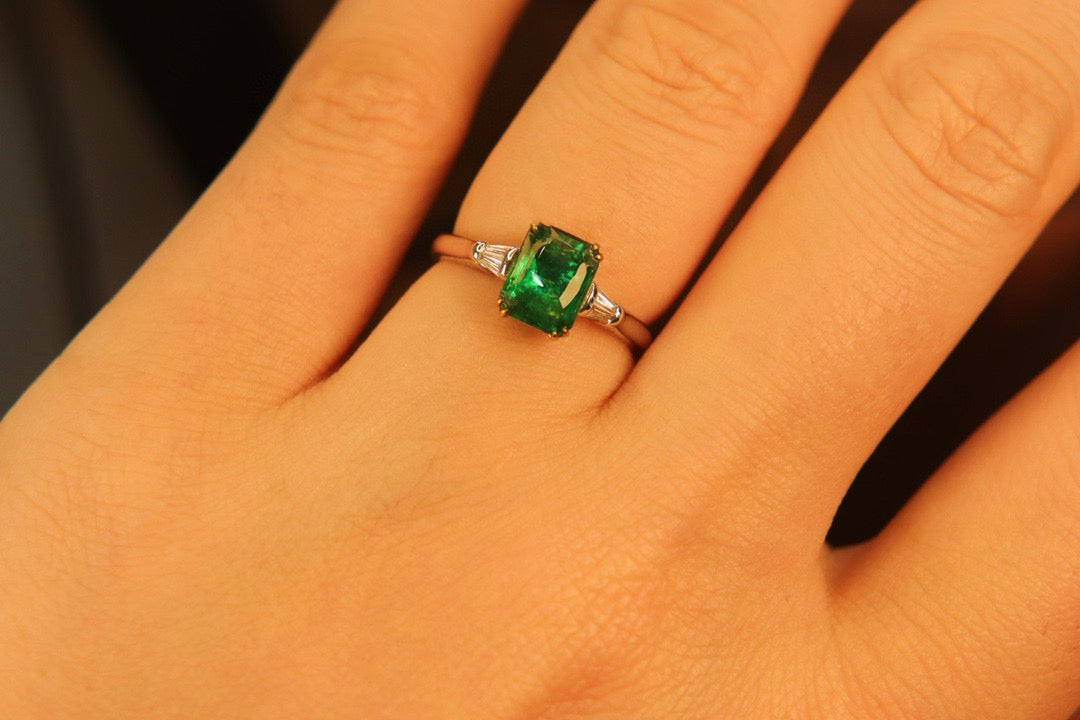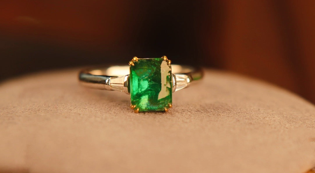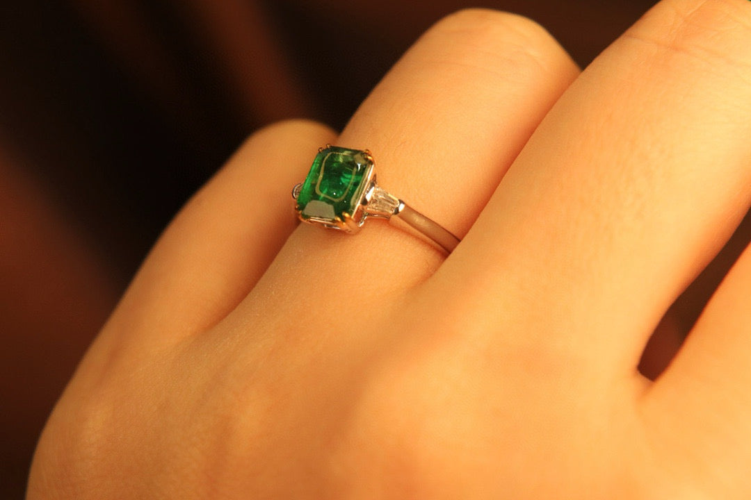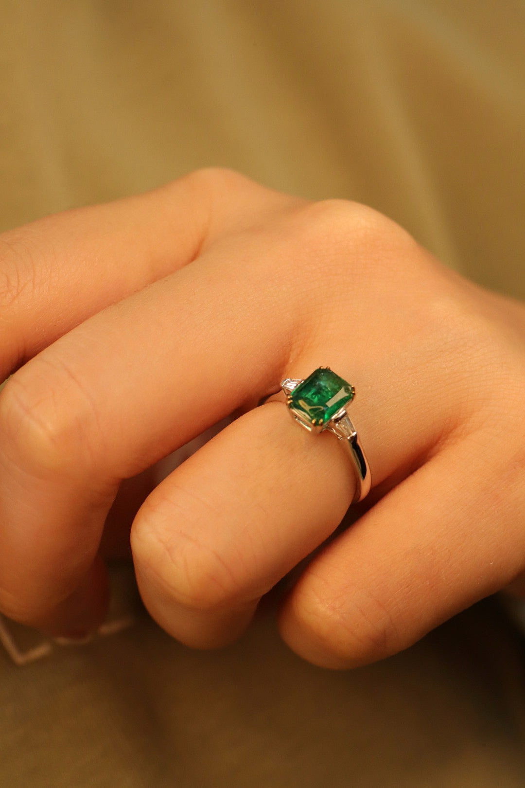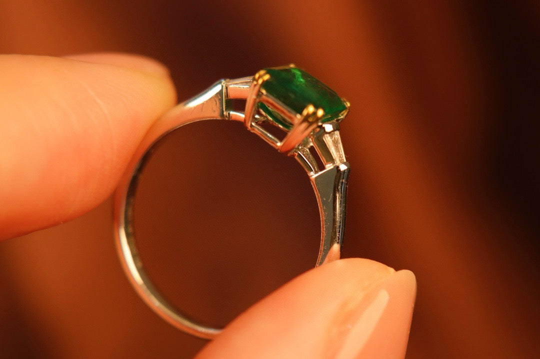 Ref:231019225 // Gold Content:14K Gold // Ring Size:7.25US // // Main Gemstone:Emerald // Shape:Octagonal // Carat Weight:1.26ct // Color:Green // Treatment:Natural // // Adjacent Gemstone 2 : Diamond // Shape:Baguette // Carat Weight:0.14ct // Clarity Grade:VS-SI // Color:H // Treatment:Natural //