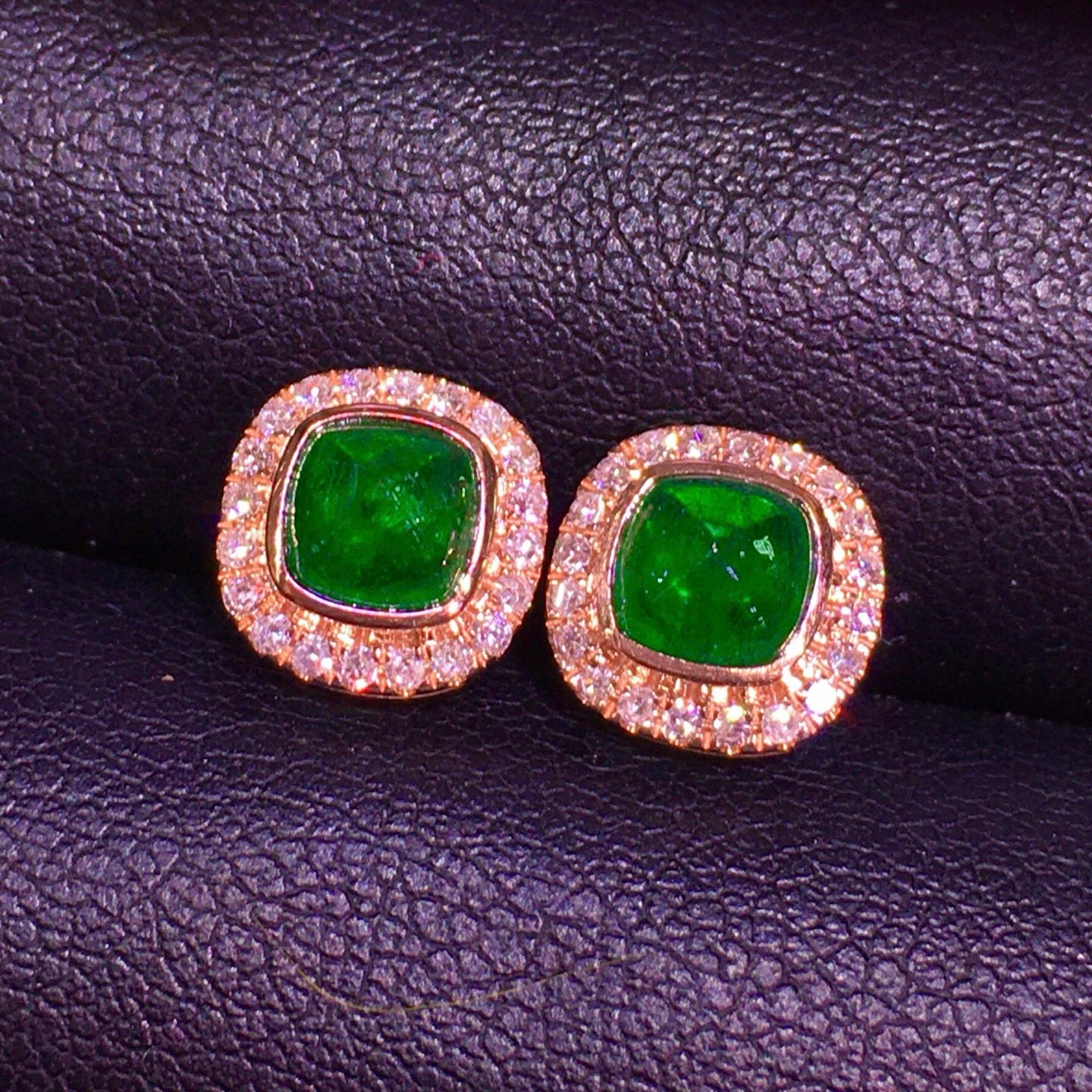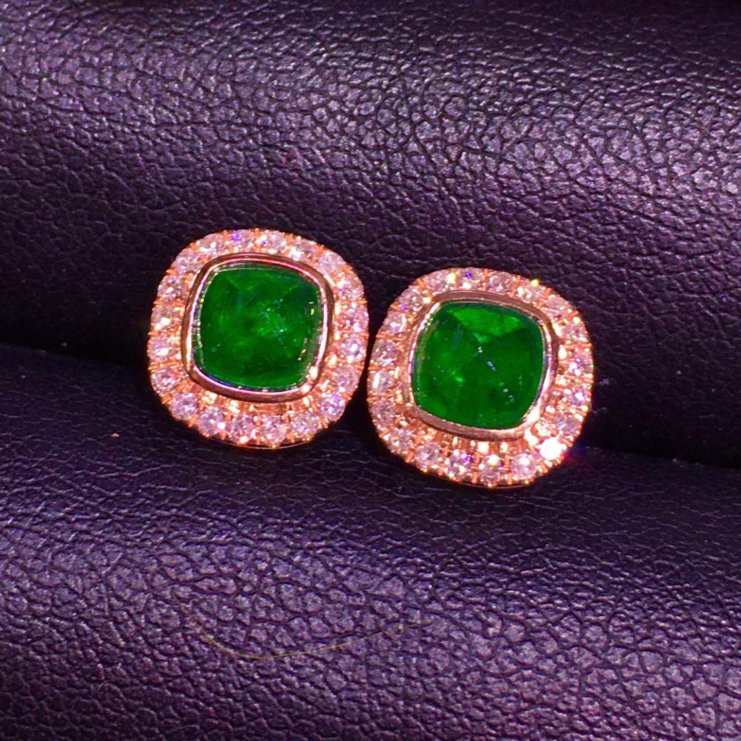 Ref:231023158 // Gold Content:14K Gold // Main Gemstone:Emerald // Shape:Suger-Loaf // Carat Weight:1.42ct // Color:Green // Treatment:Natural // // Adjacent Gemstone 2 : Diamond // Shape:Round // Clarity Grade:VS-SI // Color:H // Treatment:Natural // Cut Grade:G //