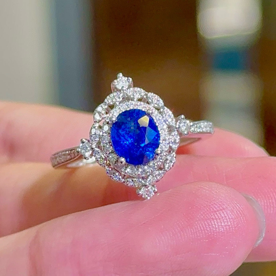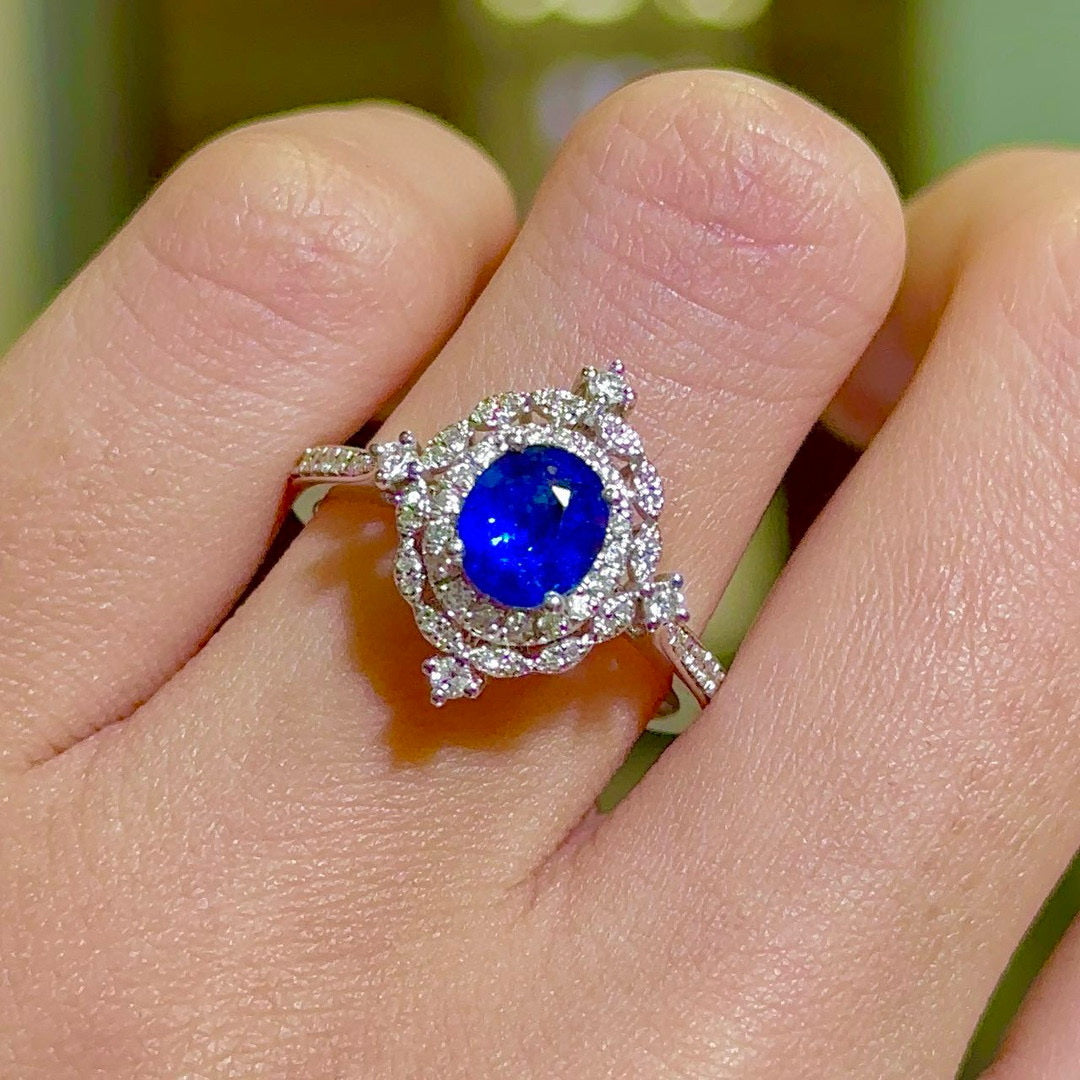 Ref:231023145 // Gold Content:14K Gold // Ring Size:7.25US // // Main Gemstone:Sapphire // Shape:Oval // Carat Weight:1.07ct // Color:Blue // Treatment:Natural // // Adjacent Gemstone 2 : Diamond // Shape:Round // Carat Weight:0.36ct // Clarity Grade:VS-SI // Color:H // Treatment:Natural // Cut Grade:G //