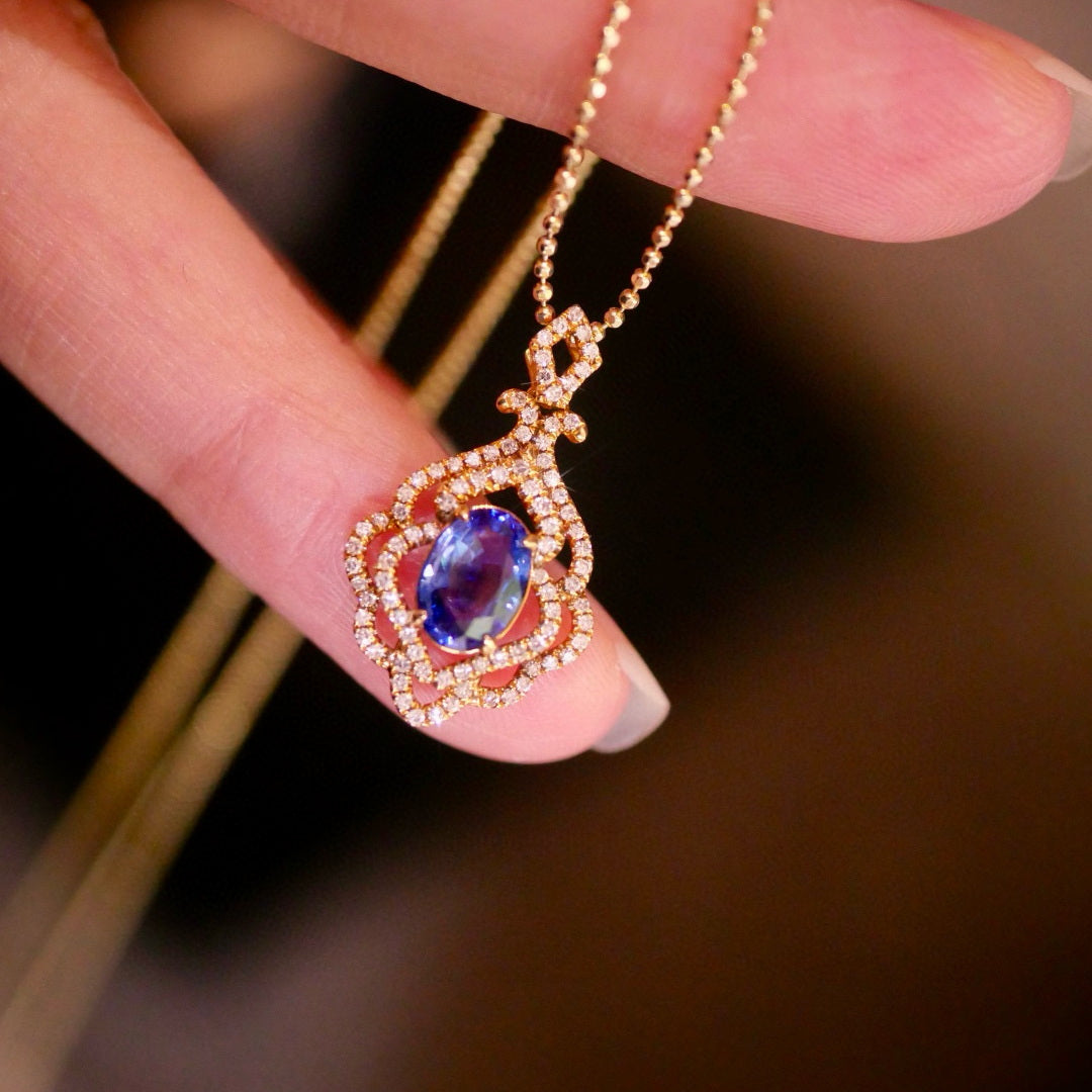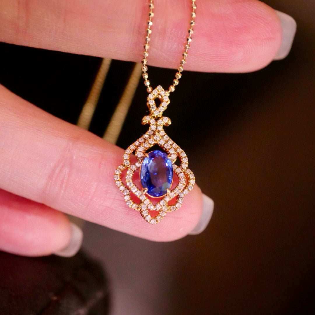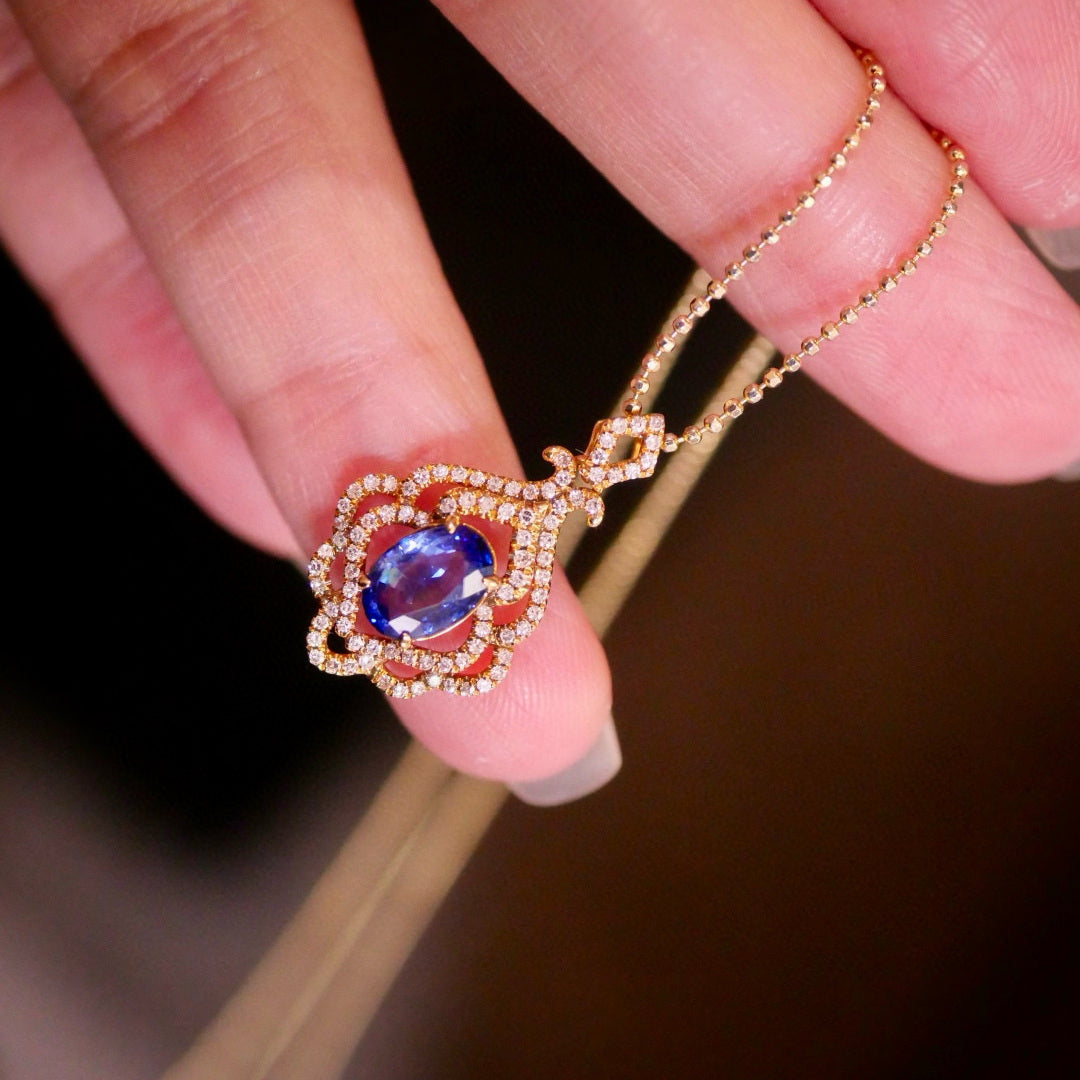 Ref:231023205 // Gold Content:14K Gold // Main Gemstone:Sapphire // Shape:Oval // Carat Weight:1.1ct // Color:Blue // Treatment:Natural // // Adjacent Gemstone 2 : Diamond // Shape:Round // Carat Weight:0.34ct // Clarity Grade:VS-SI // Color:H // Treatment:Natural // Cut Grade:G //