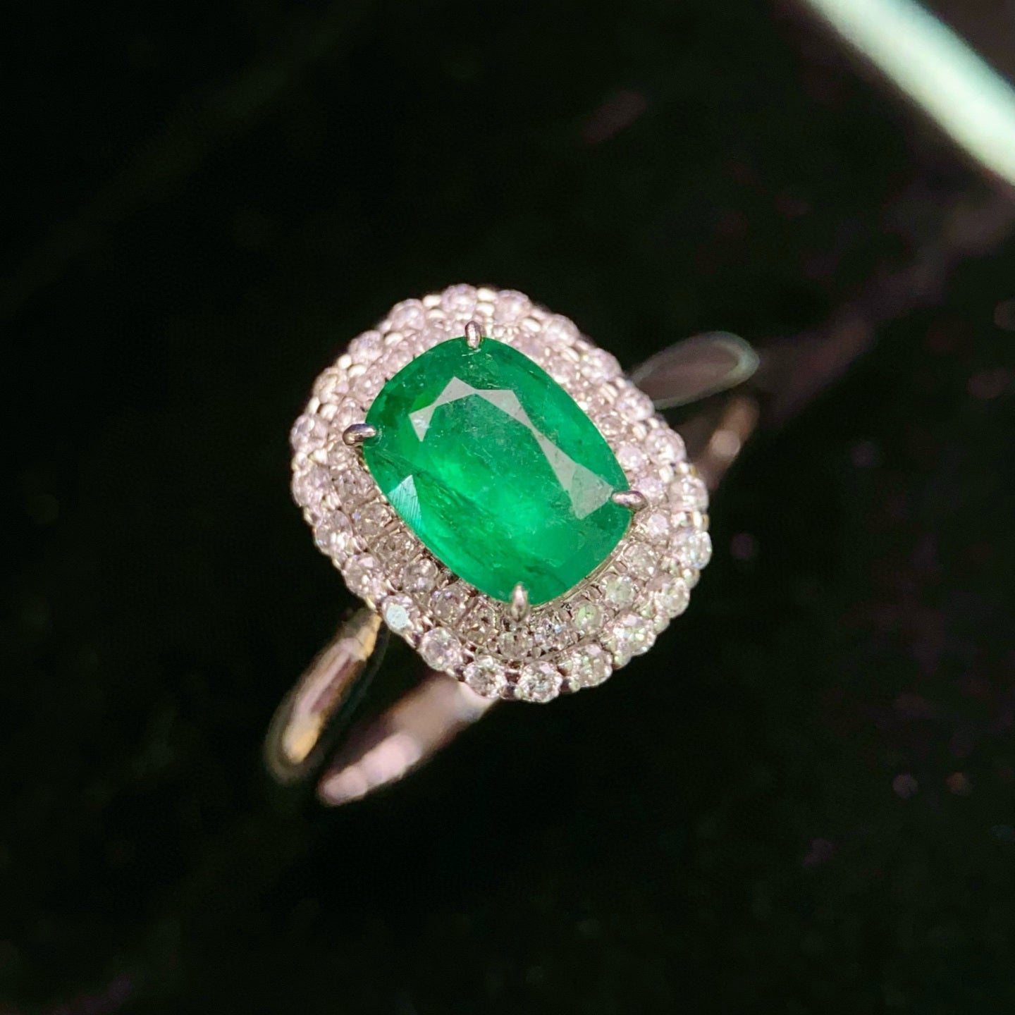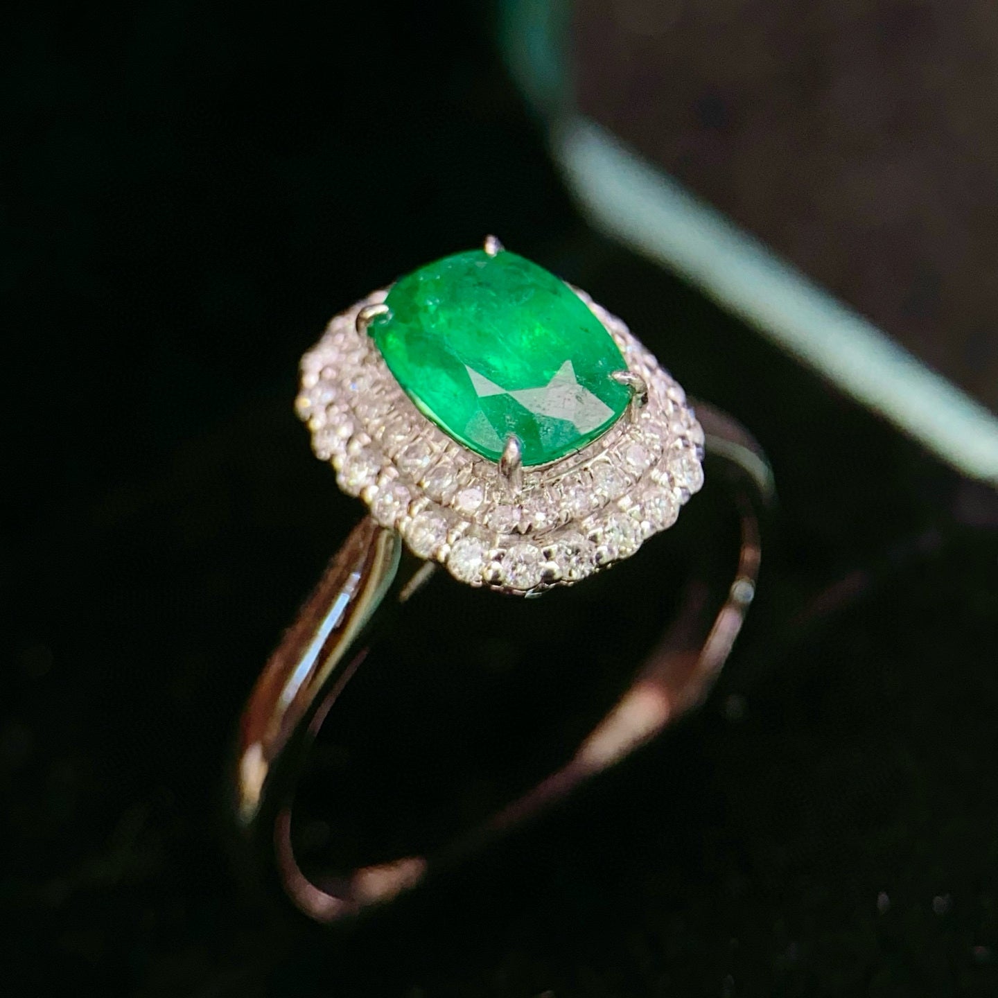 Ref:231023046 // Gold Content:14K Gold // Ring Size:7.25US // // Main Gemstone:Emerald // Shape:Cushion // Carat Weight:1ct // Color:Green // Treatment:Natural // // Adjacent Gemstone 2 : Diamond // Shape:Round // Carat Weight:0.45ct // Clarity Grade:VS-SI // Color:H // Treatment:Natural // Cut Grade:G //
