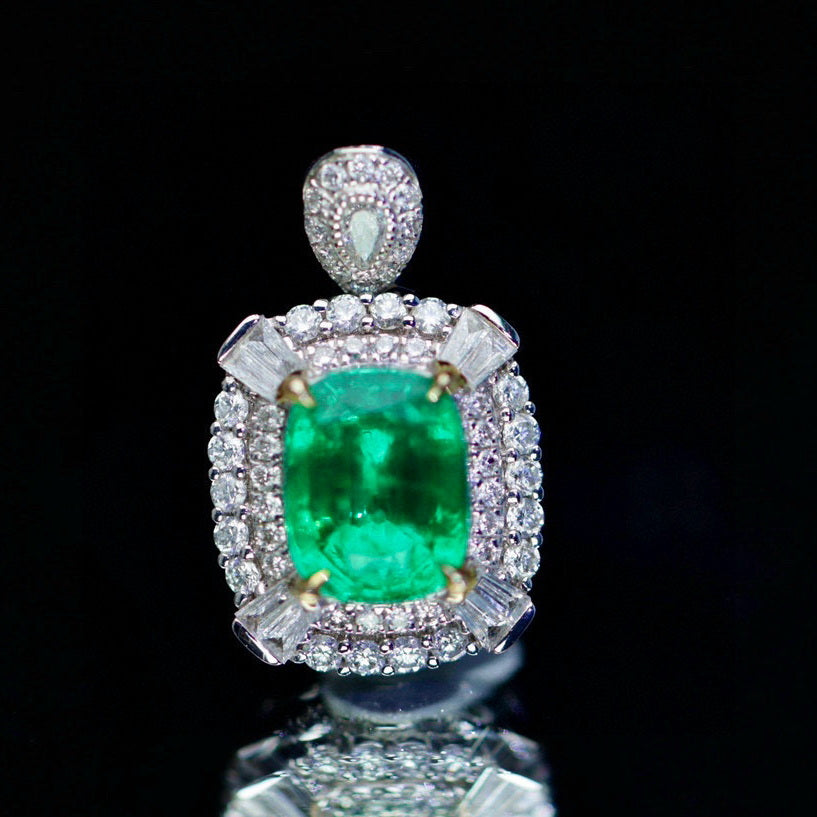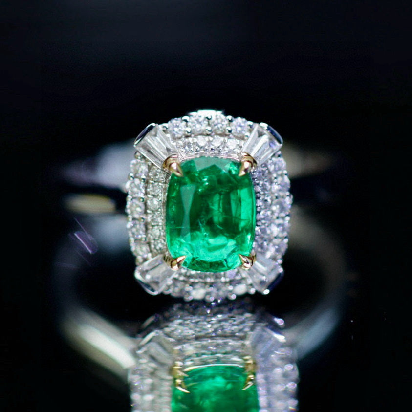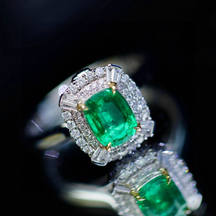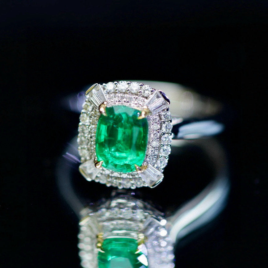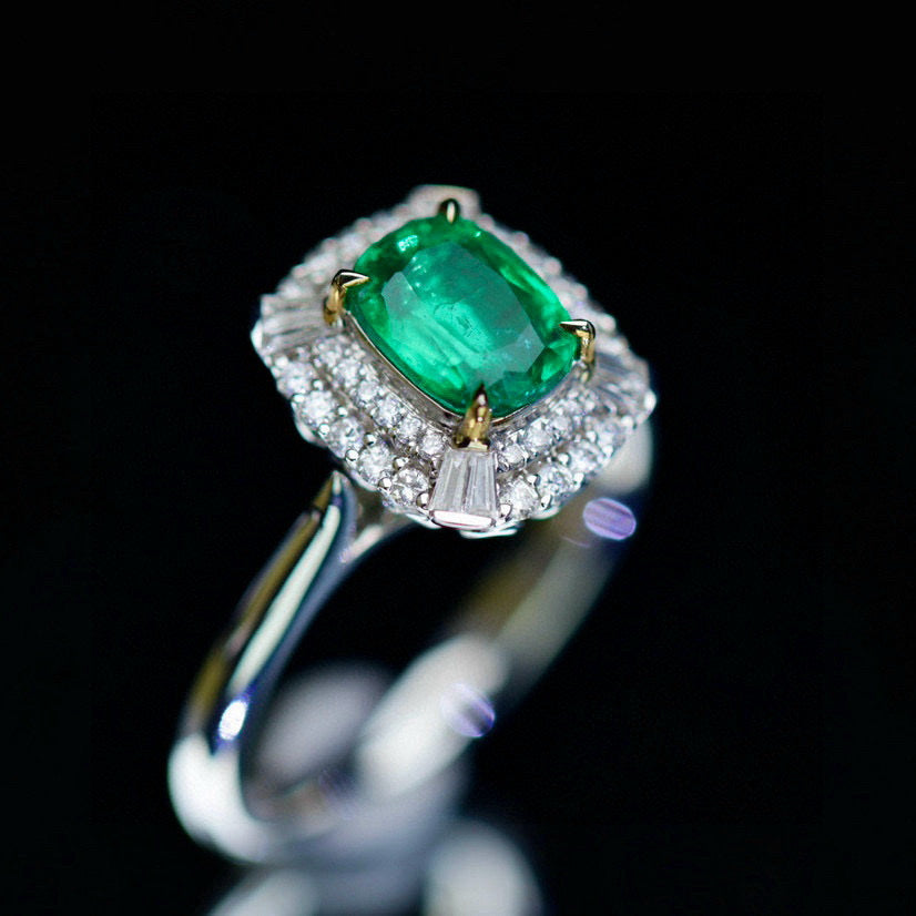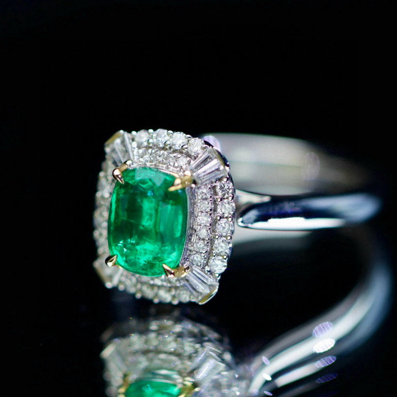 Ref:231023124 // Gold Content:14K Gold // Ring Size:7.25US // // Main Gemstone:Emerald // Shape:Cushion // Carat Weight:1.12ct // Color:Green // Treatment:Natural // // Adjacent Gemstone 2 : Diamond // Shape:Multiply // Carat Weight:0.34ct // Clarity Grade:VS-SI // Color:H // Treatment:Natural //
