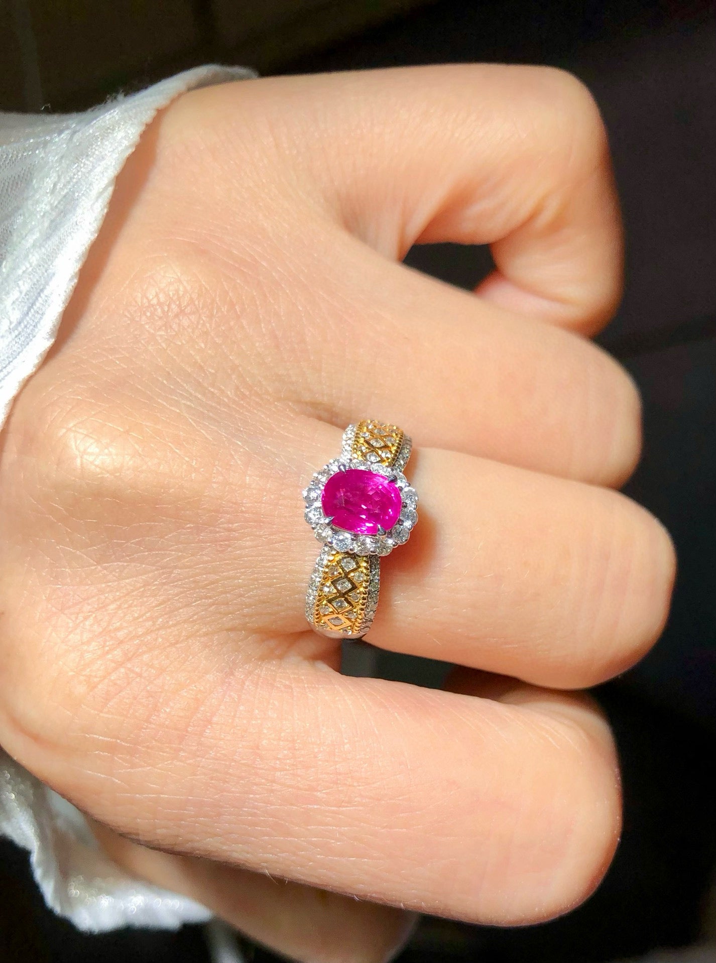 Ref:231019154 // Gold Content:14K Gold // Ring Size:7.25US // // Main Gemstone:Ruby // Shape:Oval // Carat Weight:1.05ct // Color:Red // Treatment:Natural // // Adjacent Gemstone 2 : Diamond // Shape:Round // Carat Weight:0.41ct // Clarity Grade:VS-SI // Color:H // Treatment:Natural // Cut Grade:G //
