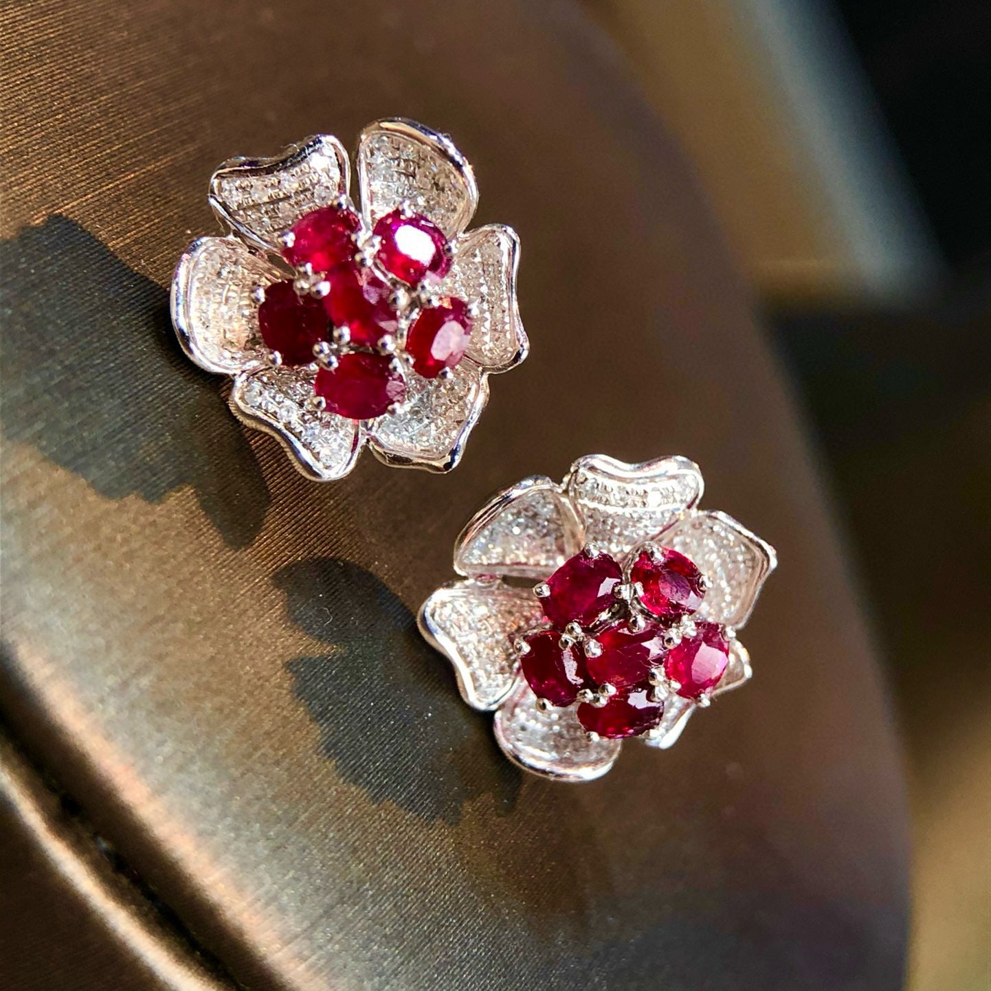 14K GOLD 1.5 CT NATURAL RUBY & DIAMOND EARRINGS
