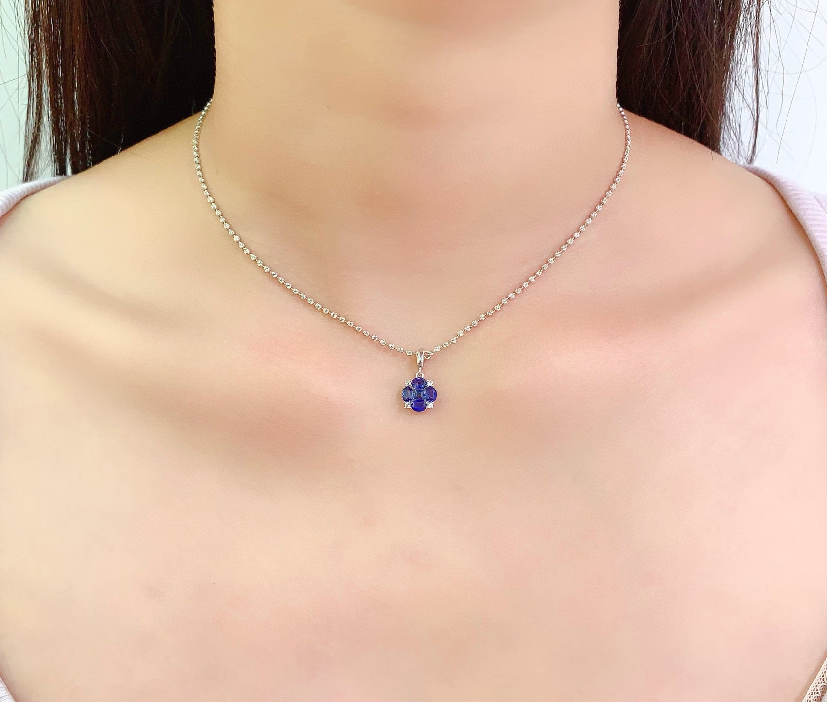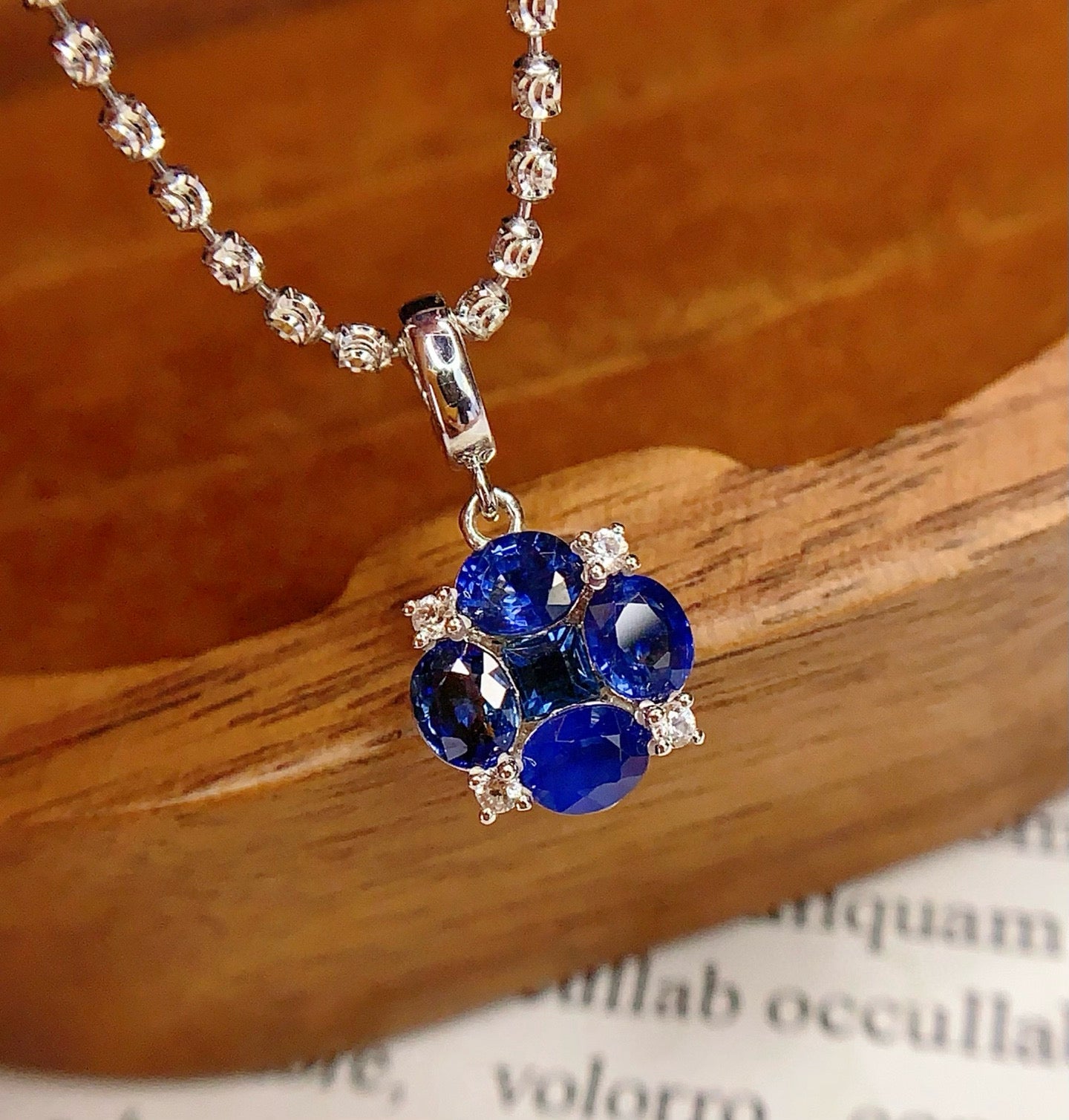 Ref:231025193 // Gold Content:14K Gold // Main Gemstone:Sapphire // Shape:Multiply // Carat Weight:1.5ct // Color:Blue // Treatment:Natural // // Adjacent Gemstone 2 : Sapphire // Number of stones:4 // Shape:Round // Color:White // Treatment:Natural // Cut Grade:G //