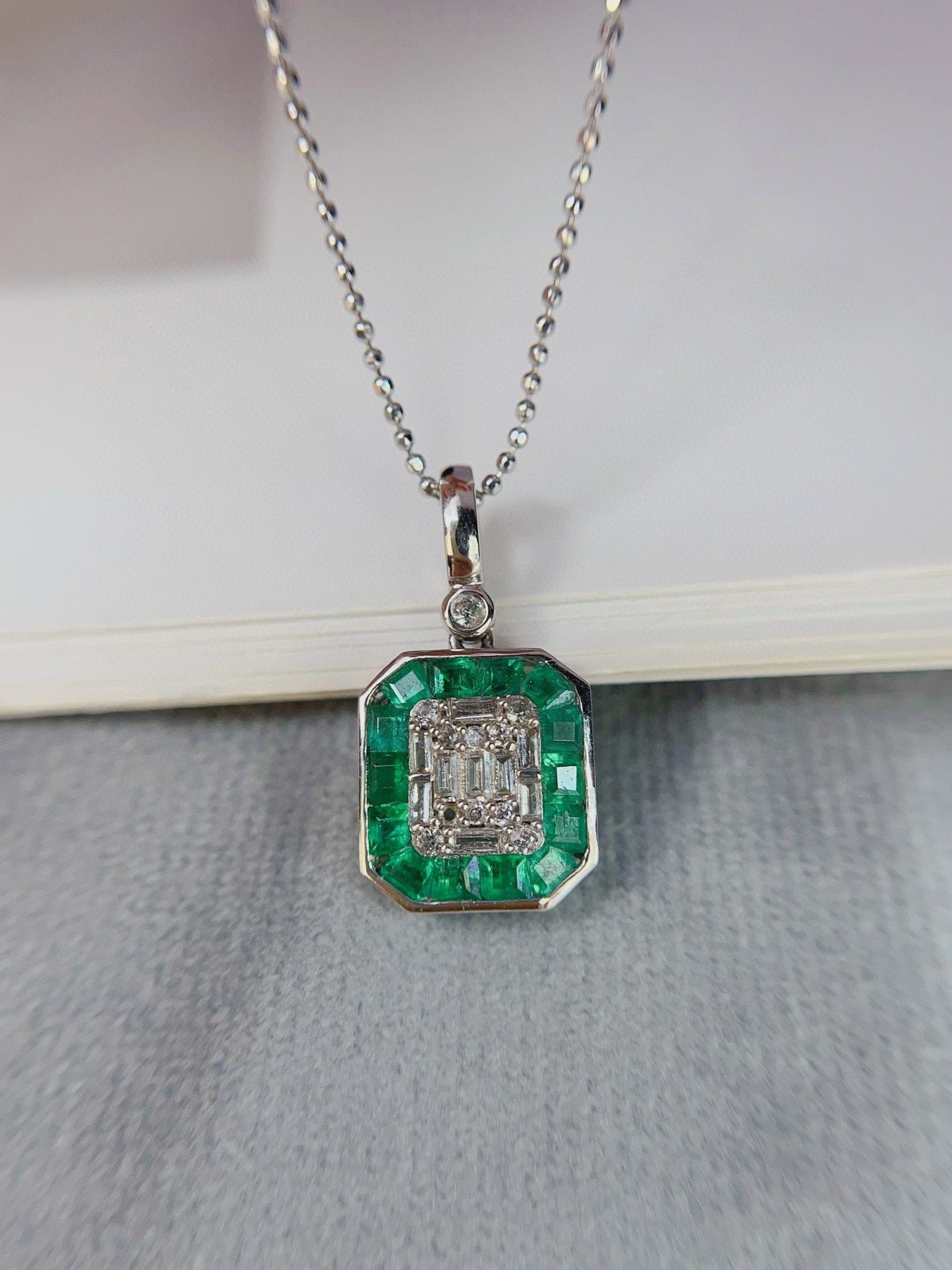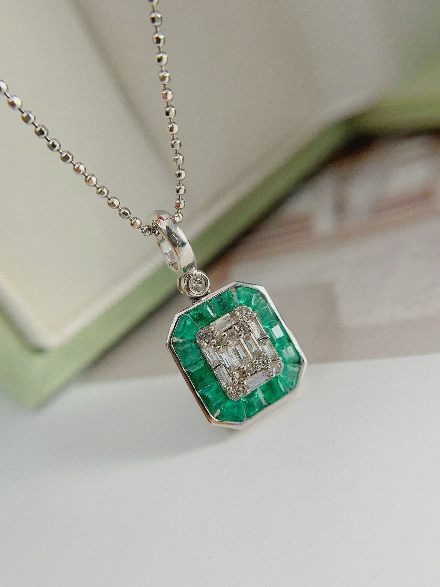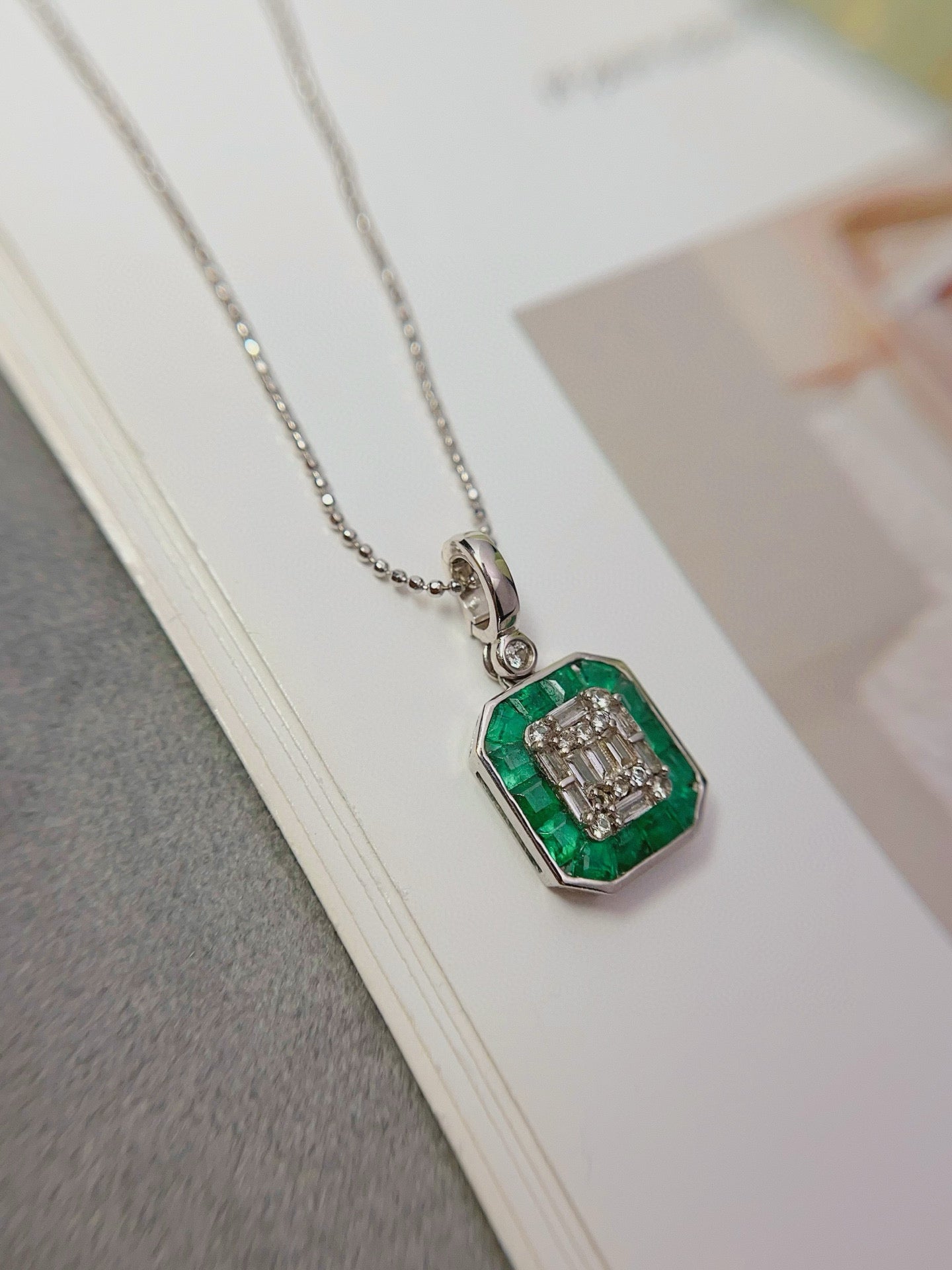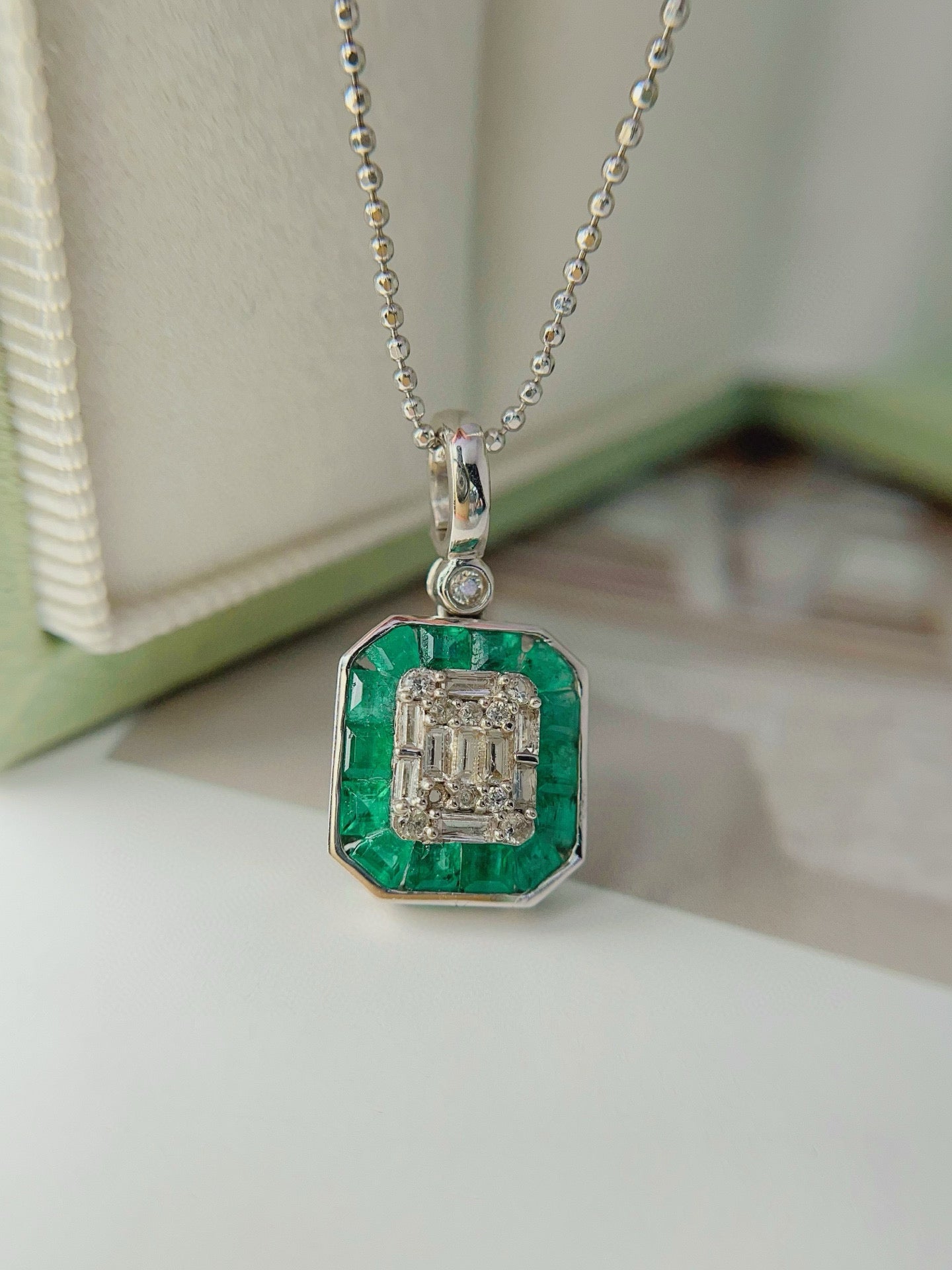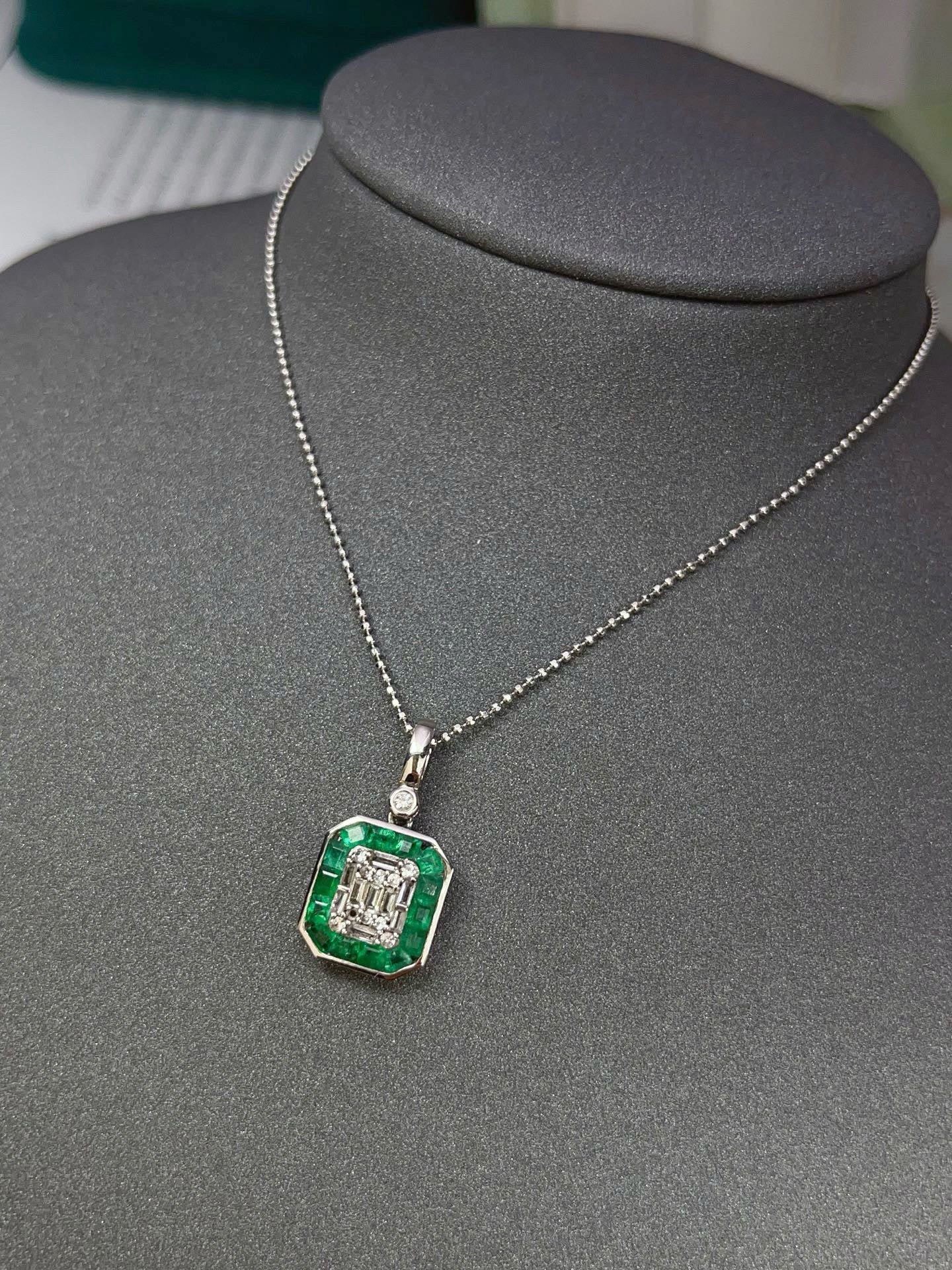 Ref:231027197 // Gold Content:14K Gold // Main Gemstone:Emerald // Shape:Square // Carat Weight:1.50ct // Color:Green // Treatment:Natural // // Adjacent Gemstone 2 : Sapphire // Number of stones:20 // Shape:Multiply // Color:White // Treatment:Natural //