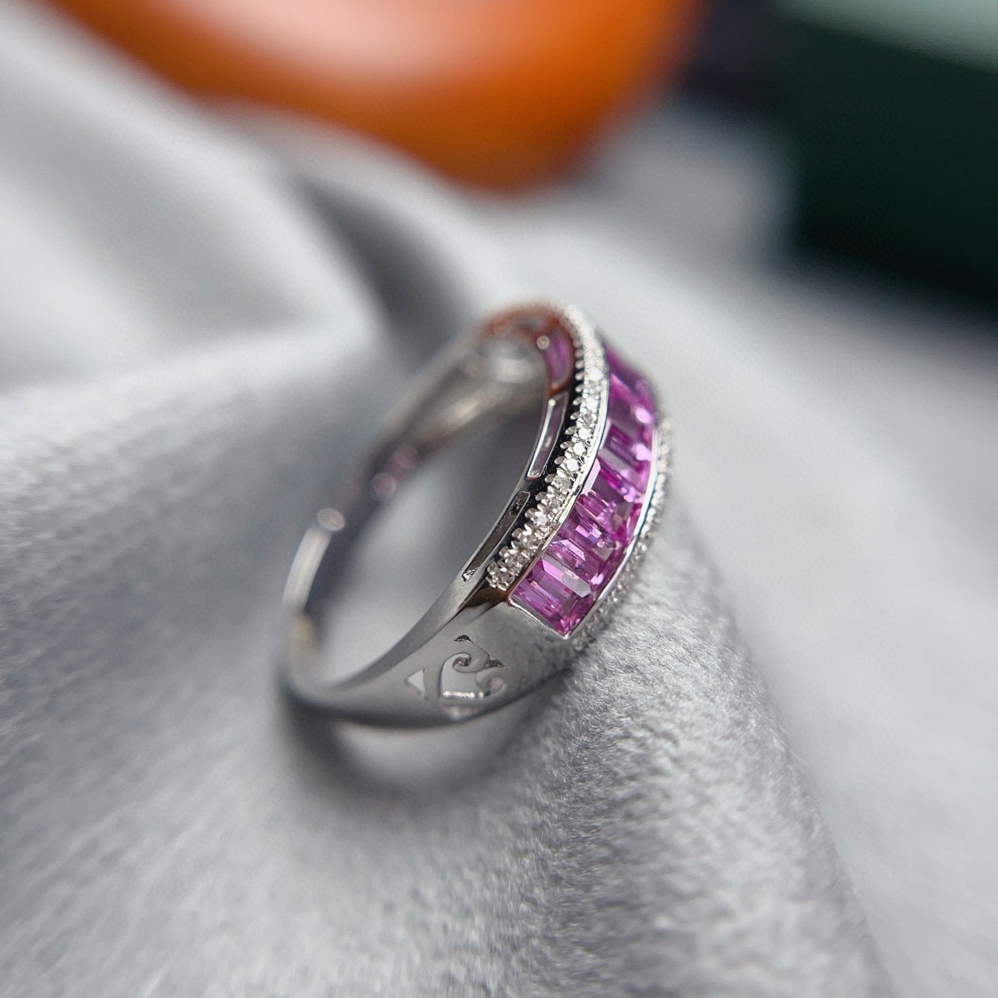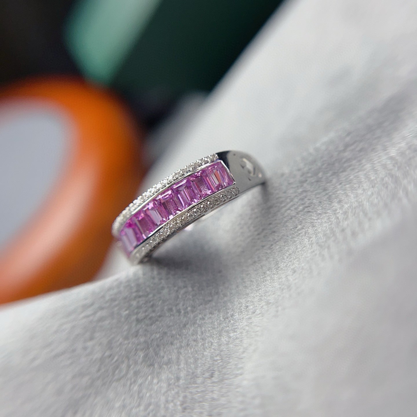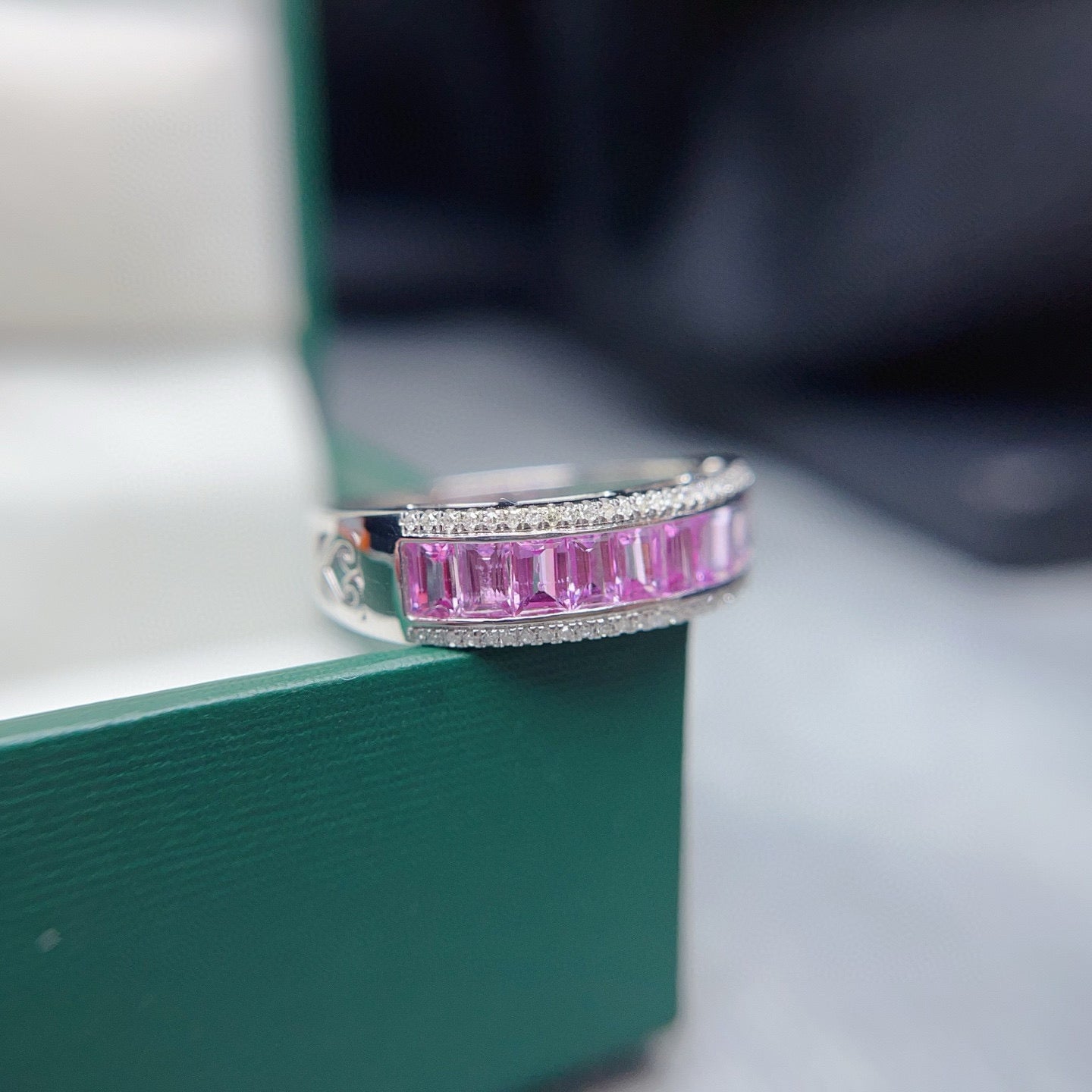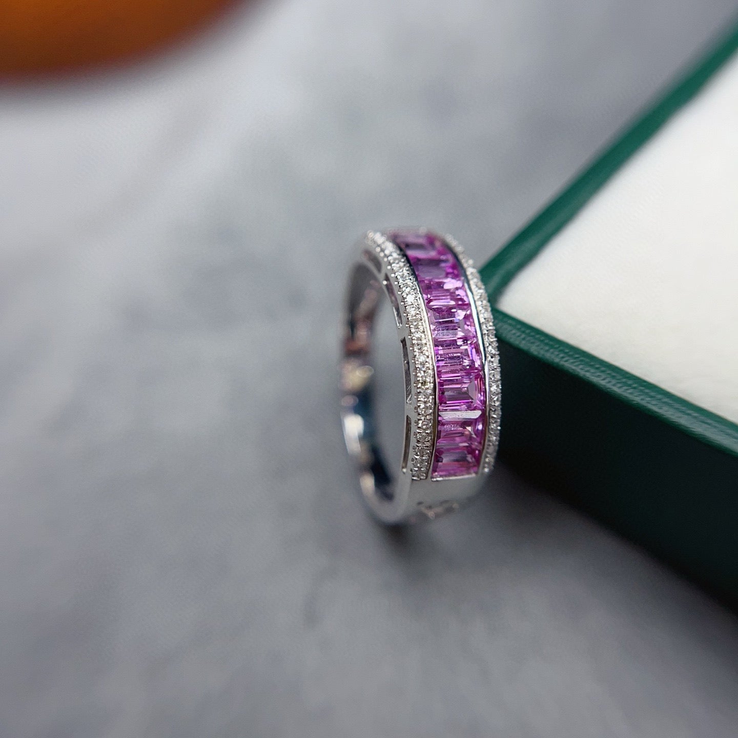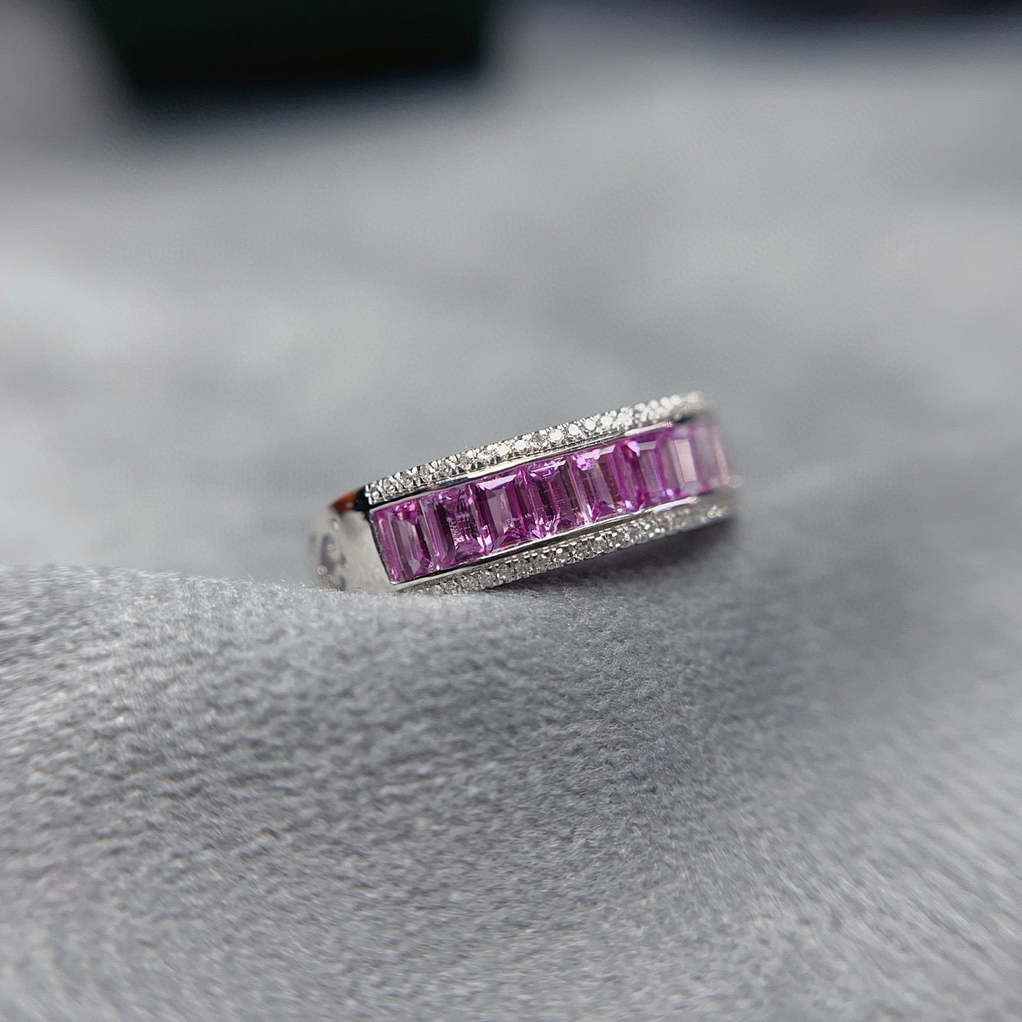 Ref:231027173 // Gold Content:14K Gold // Ring Size:7.25US // // Main Gemstone:Sapphire // Shape:Rectangle // Carat Weight:1.50ct // Color:Pink // Treatment:Natural // // Adjacent Gemstone 2 : Diamond // Number of stones:50 // Shape:Round // Clarity Grade:VS-SI // Color:H // Treatment:Natural // Cut Grade:G //