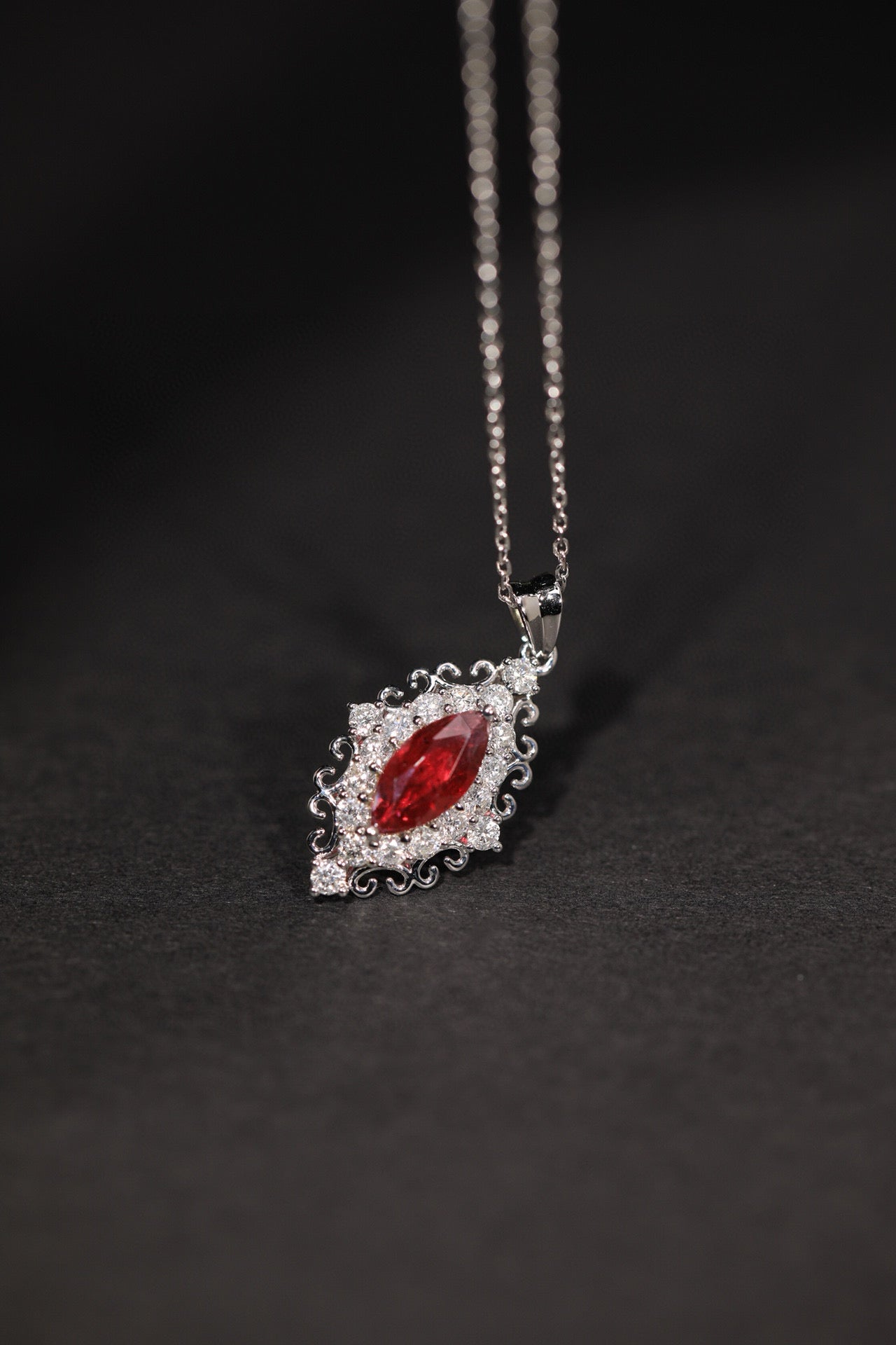 Ref:231025134 // Gold Content:14K Gold // Main Gemstone:Ruby // Shape:Marquise // Carat Weight:0.87ct // Color:Red // Treatment:Natural // // Adjacent Gemstone 2 : Diamond // Shape:Round // Carat Weight:0.63ct // Clarity Grade:VS-SI // Color:H // Treatment:Natural // Cut Grade:G //