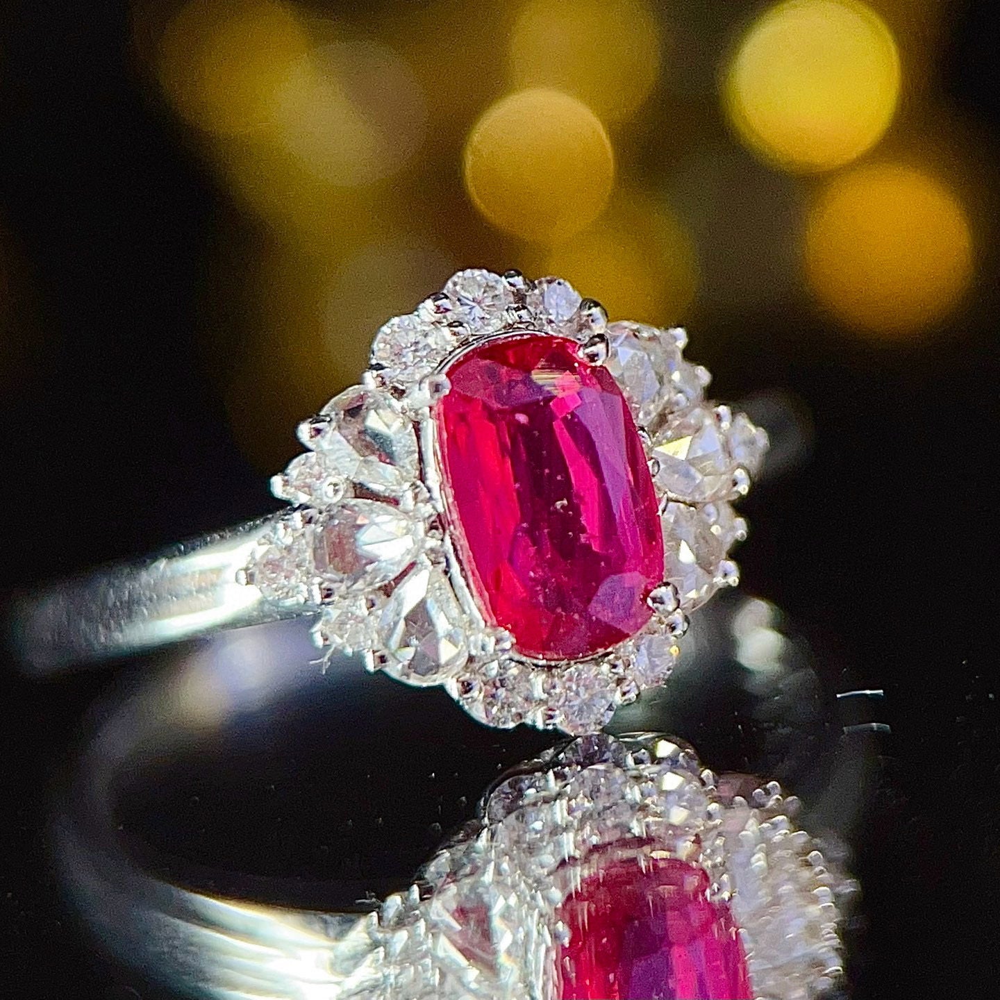 Ref:231021127 // Gold Content:14K Gold // Ring Size:7.25US // // Main Gemstone:Ruby // Shape:Oval // Carat Weight:1.08ct // Color:Red // Treatment:Natural // // Adjacent Gemstone 2 : Diamond // Shape:Multiply // Carat Weight:0.42ct // Clarity Grade:VS-SI // Color:H // Treatment:Natural //