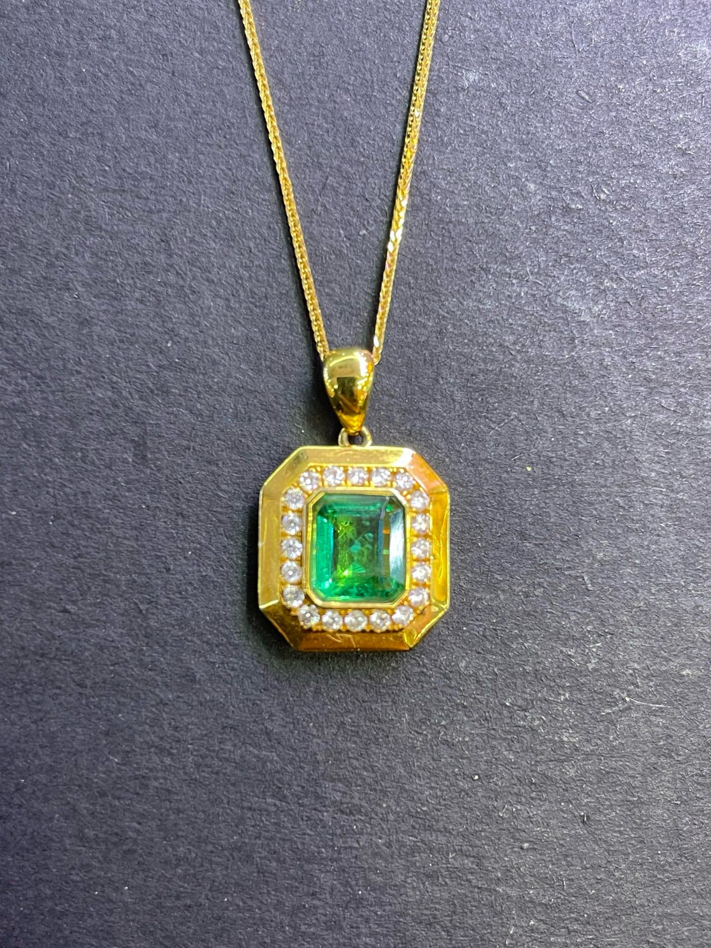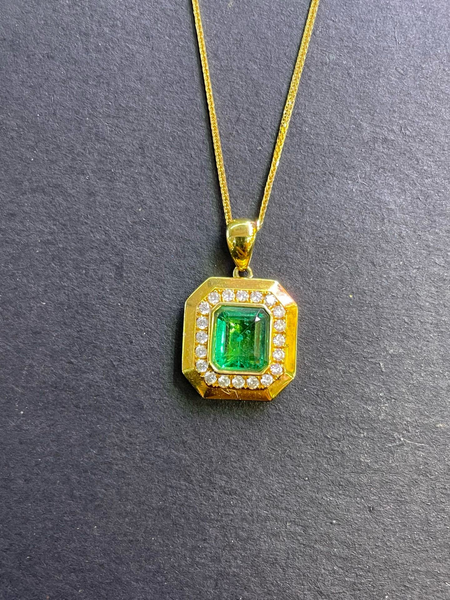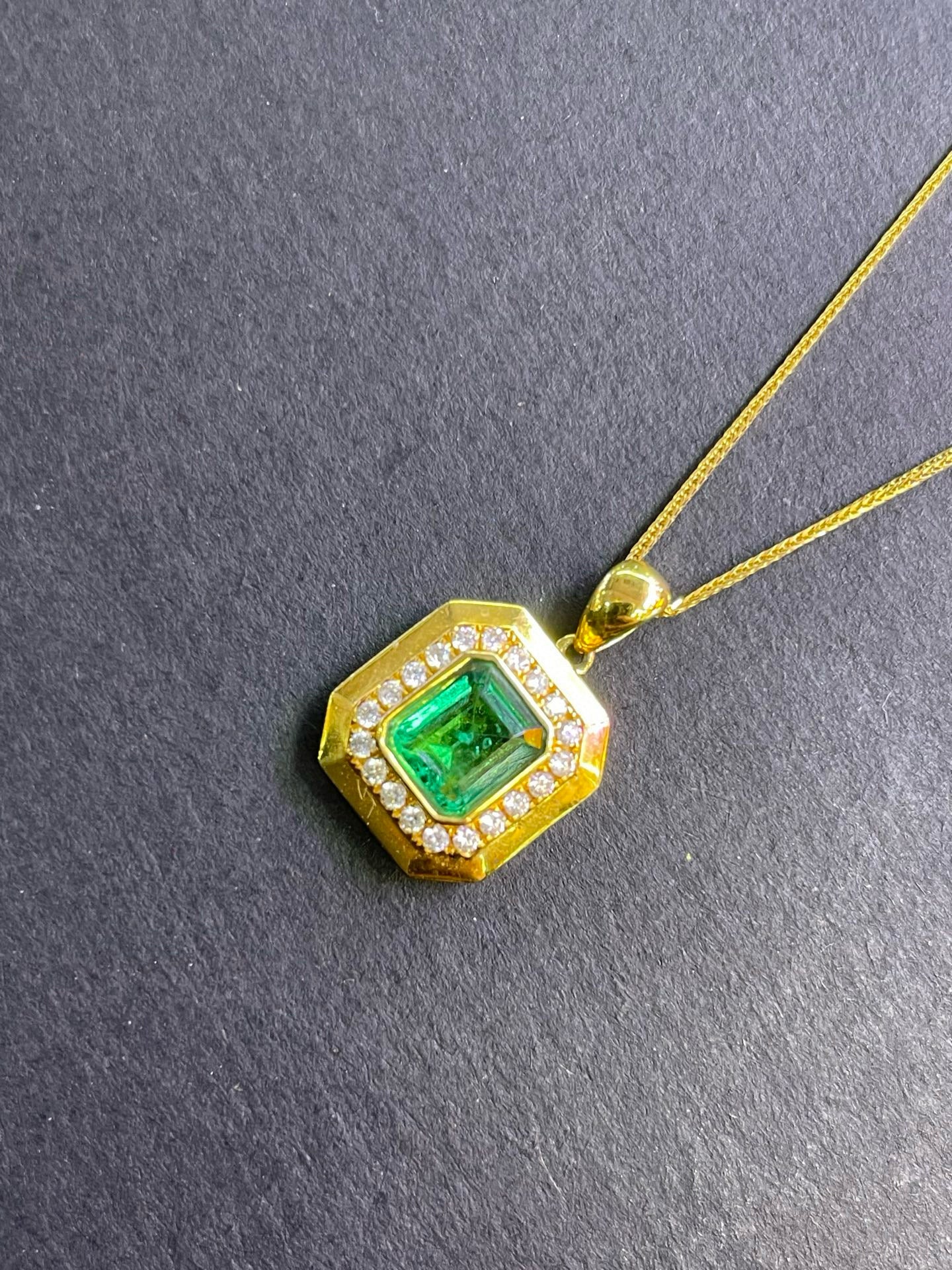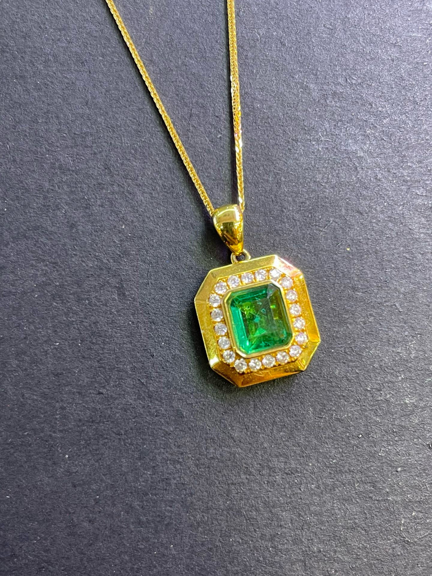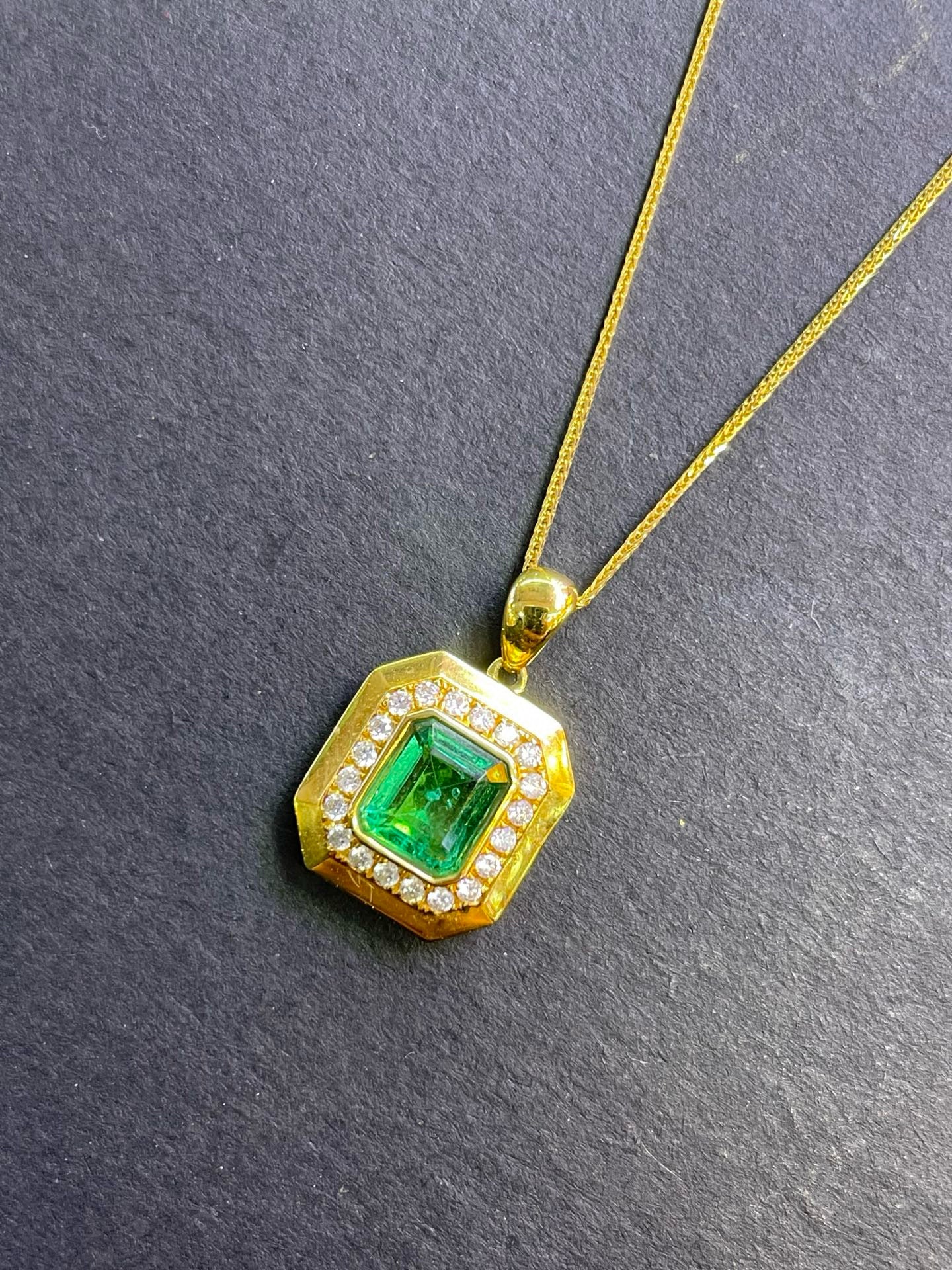 14K GOLD 1.52 CTW NATURAL EMERALD & DIAMOND PENDANT( WITHOUT CHAIN )