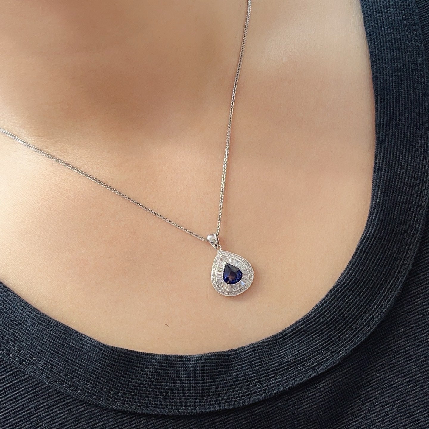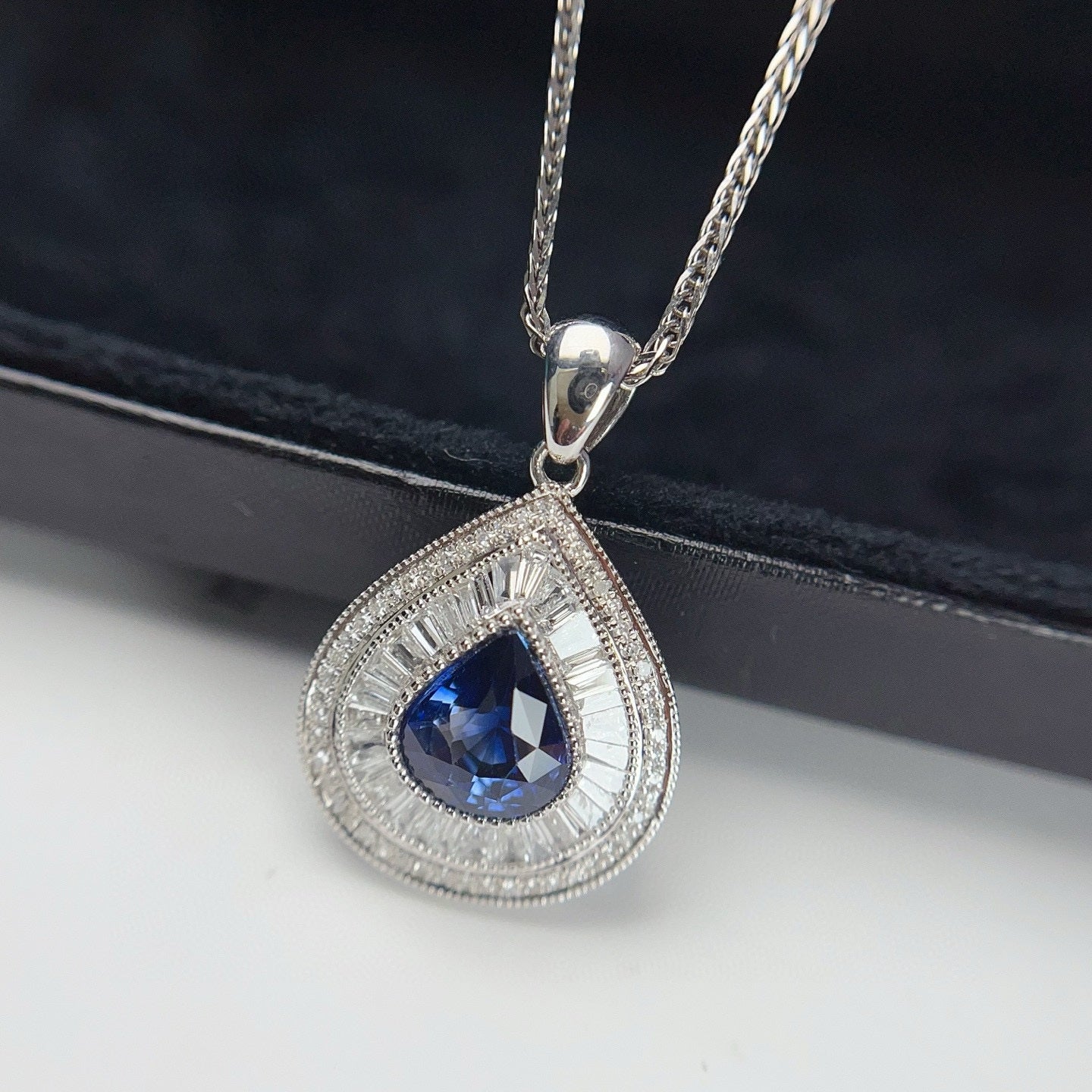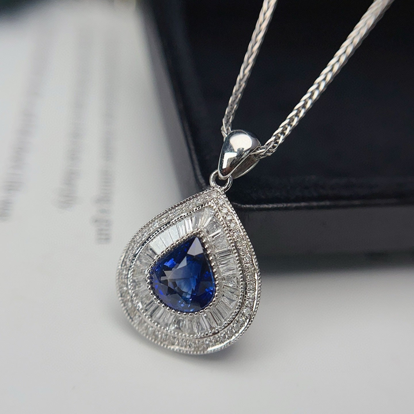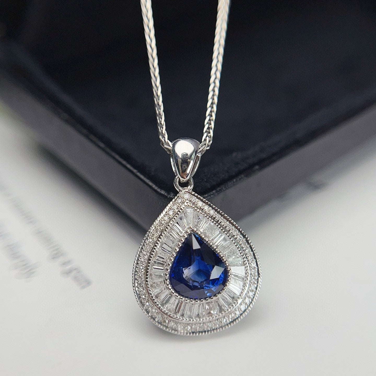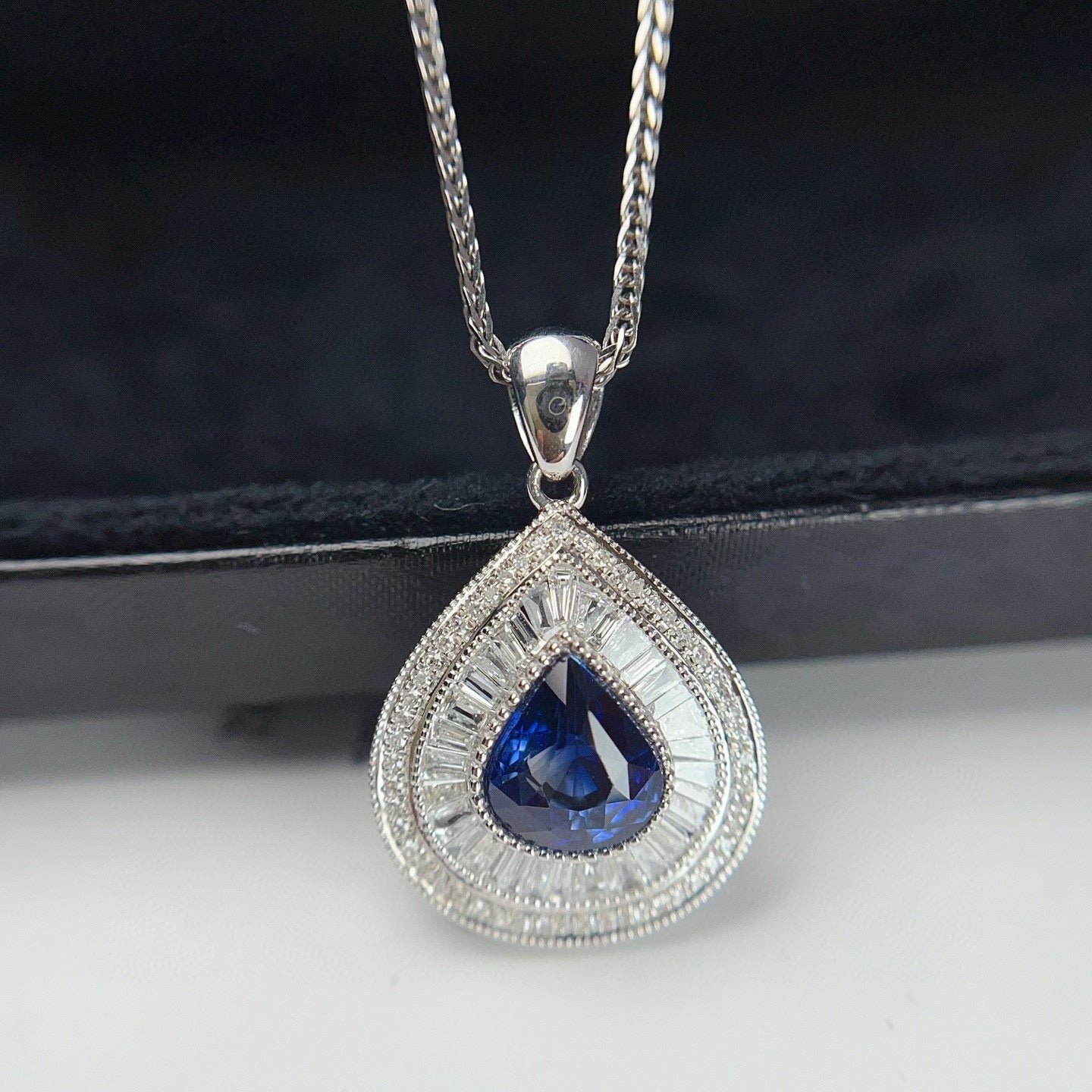 Ref:231021183 // Gold Content:14K Gold // Main Gemstone:Sapphire // Shape:Pear // Carat Weight:1.55ct // Color:Blue // Treatment:Natural // // Adjacent Gemstone 2 : Diamond // Number of stones:85 // Shape:Multiply // Clarity Grade:VS-SI // Color:H // Treatment:Natural //