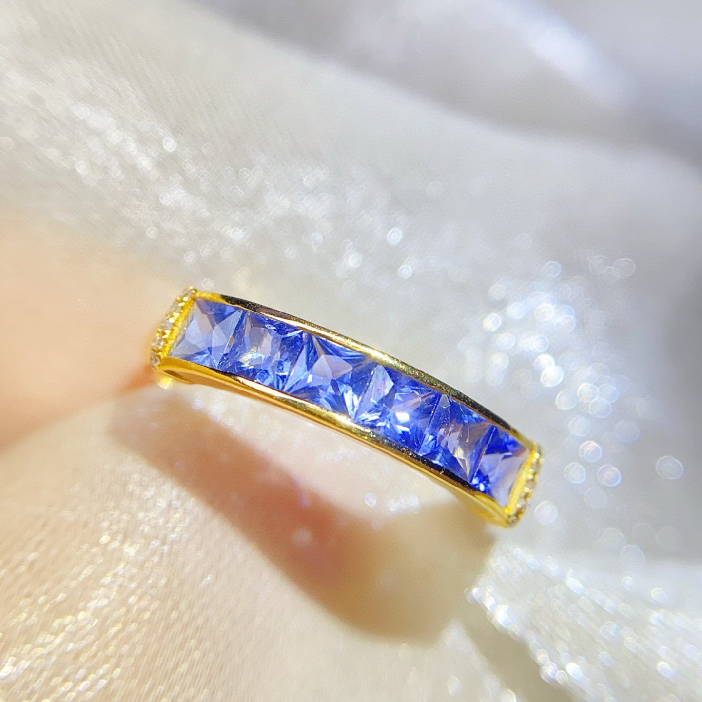 Ref:231019031 // Gold Content:14K Gold // Ring Size:7.25US // // Main Gemstone:Sapphire // Shape:Princess // Carat Weight:1.55ct // Color:Blue // Treatment:Natural // // Adjacent Gemstone 2 : Diamond // Number of stones:10 // Shape:Round // Clarity Grade:VS-SI // Color:H // Treatment:Natural // Cut Grade:G //