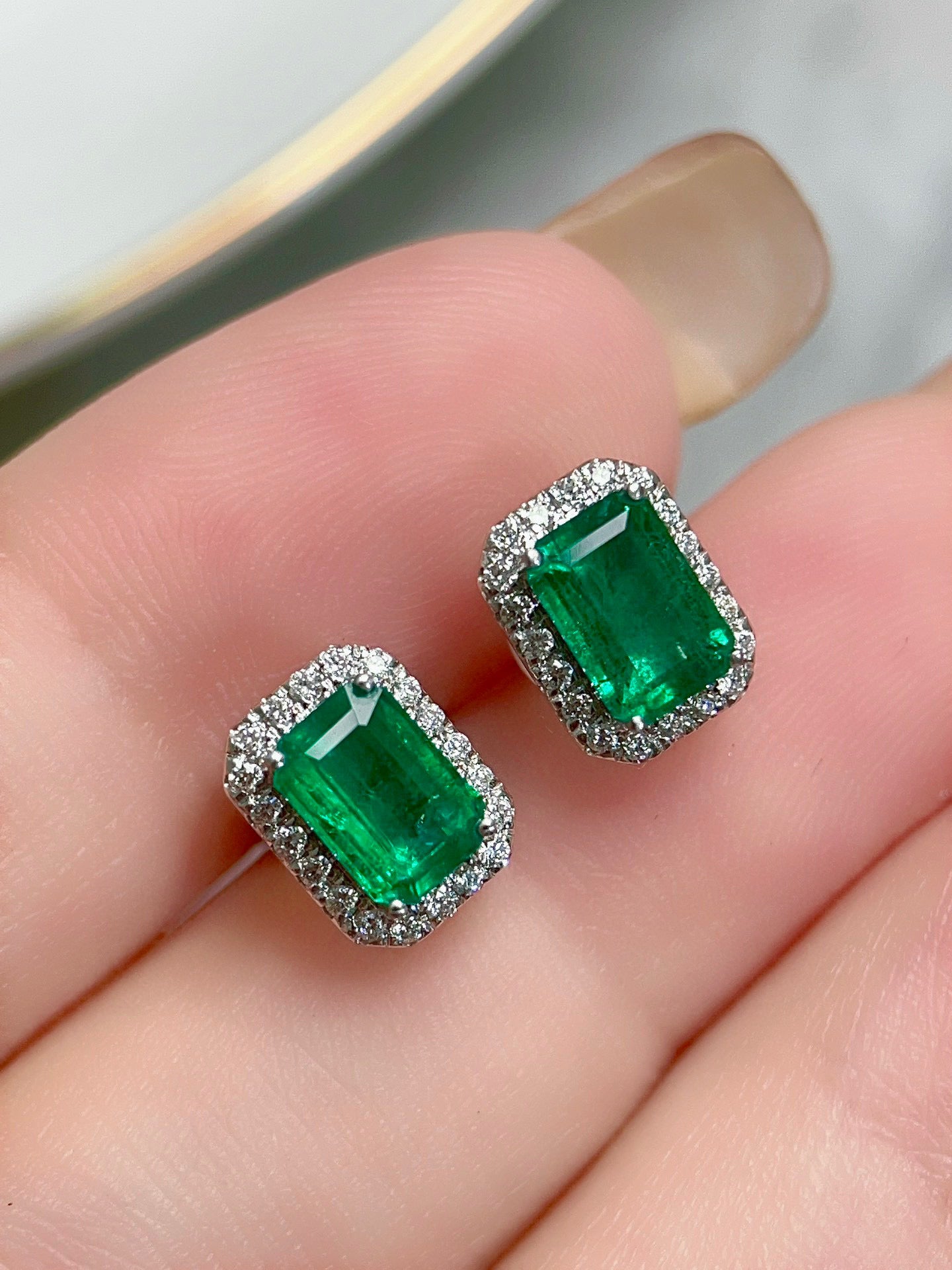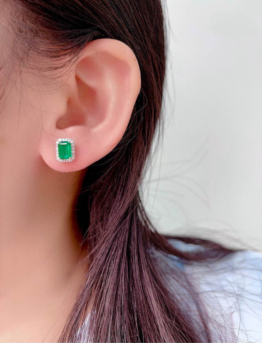 14K GOLD 1.55 CTW NATURAL EMERALD & DIAMOND EARRINGS