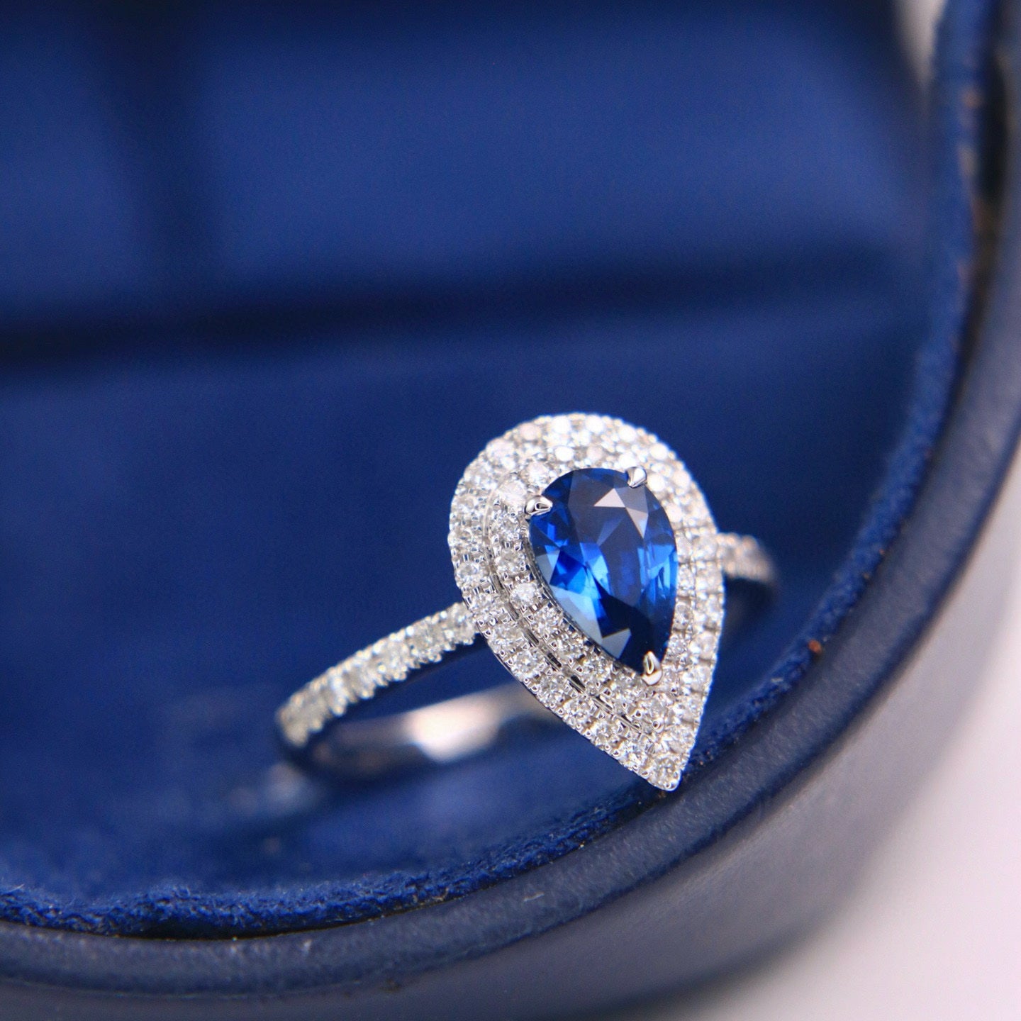Ref:231023082 // Gold Content:14K Gold // Ring Size:7.25US // // Main Gemstone:Sapphire // Shape:Pear // Carat Weight:1.16ct // Color:Blue // Treatment:Natural // // Adjacent Gemstone 2 : Diamond // Shape:Round // Carat Weight:0.39ct // Clarity Grade:VS-SI // Color:H // Treatment:Natural // Cut Grade:G //