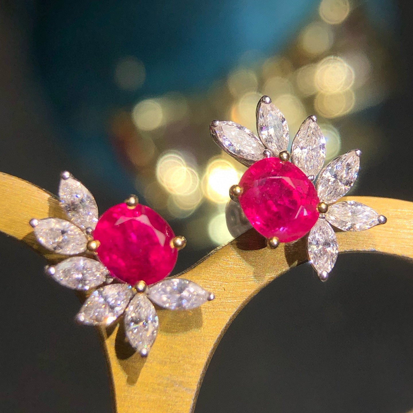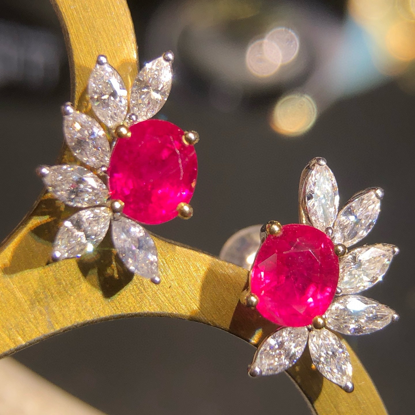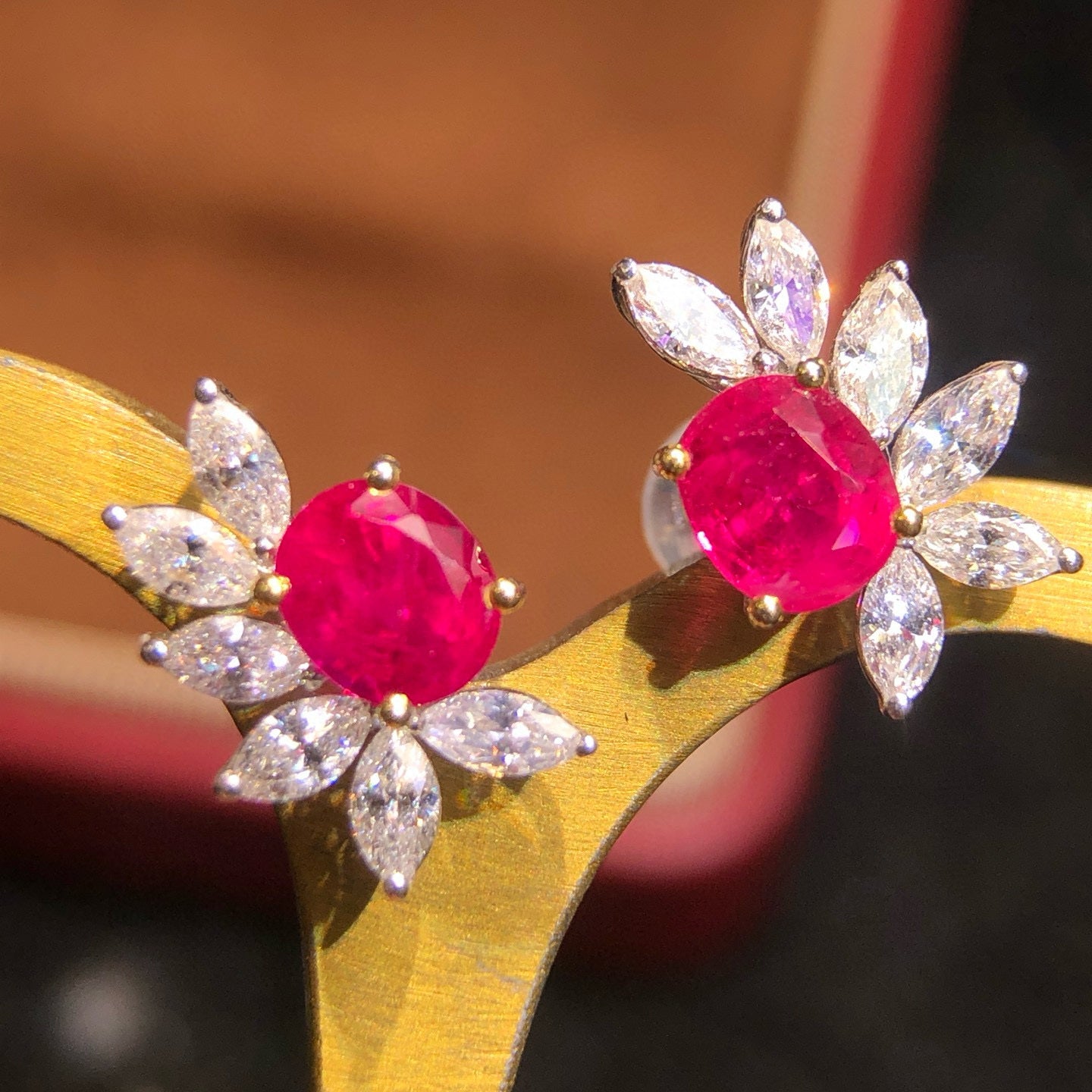 Ref:231023147 // Gold Content:14K Gold // Main Gemstone:Ruby // Shape:Oval // Carat Weight:1.60ct // Color:Red // Treatment:Natural // // Adjacent Gemstone 2 : Diamond // Shape:Marquise // Clarity Grade:VS-SI // Color:H // Treatment:Natural //