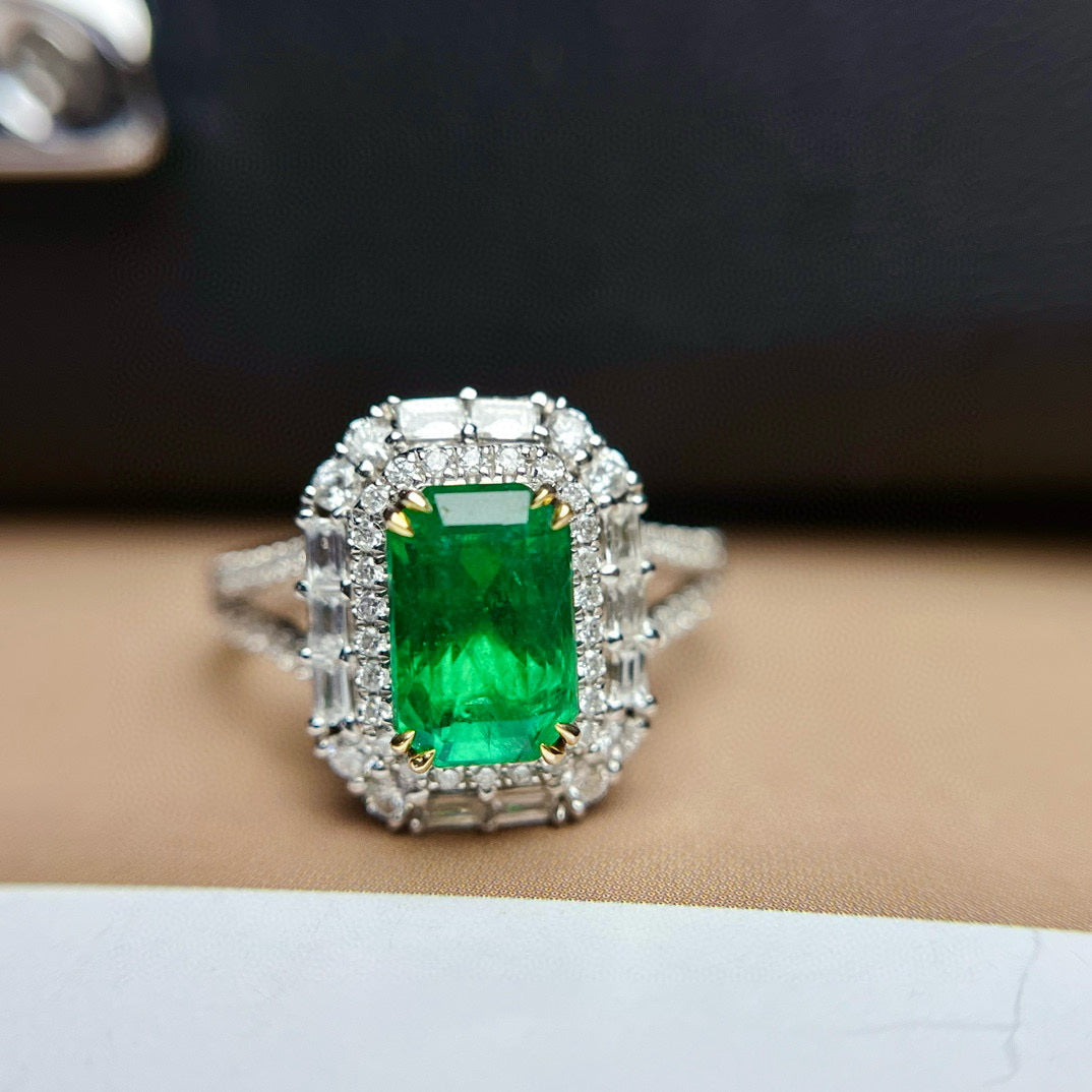 Ref:231021144 // Gold Content:14K Gold // Ring Size:7.25US // // Main Gemstone:Emerald // Shape:Octagonal // Carat Weight:1.60ct // Color:Vivid Green // Treatment:Natural // // Adjacent Gemstone 2 : Diamond // Number of stones:84 // Shape:Multiply // Clarity Grade:VS-SI // Color:H // Treatment:Natural //