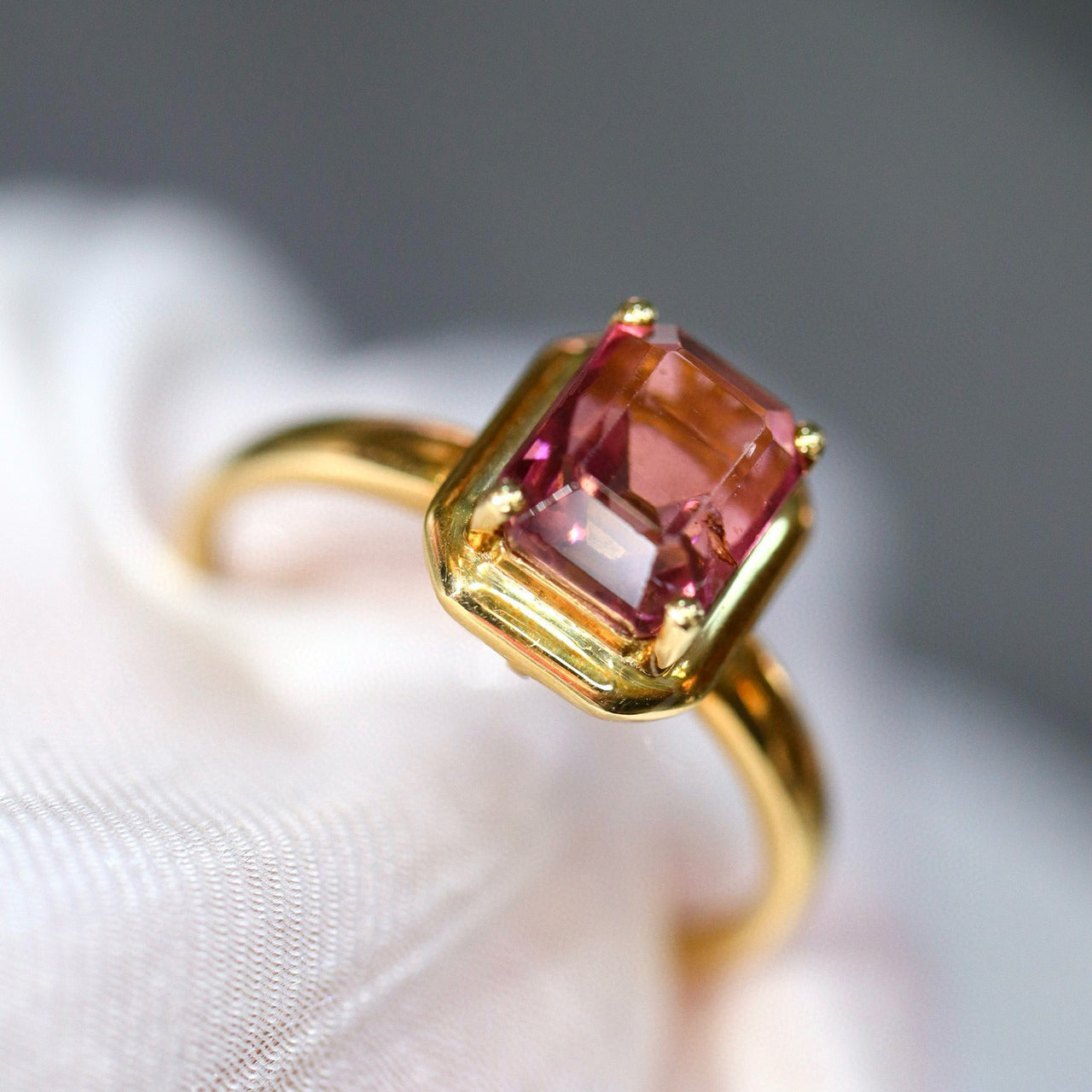 Ref:231019157 // Gold Content:14K Gold // Ring Size:7.25US // // Main Gemstone:Tourmaline // Shape:Octagonal // Carat Weight:1.61ct // Color:Orangish Red // Treatment:Natural //