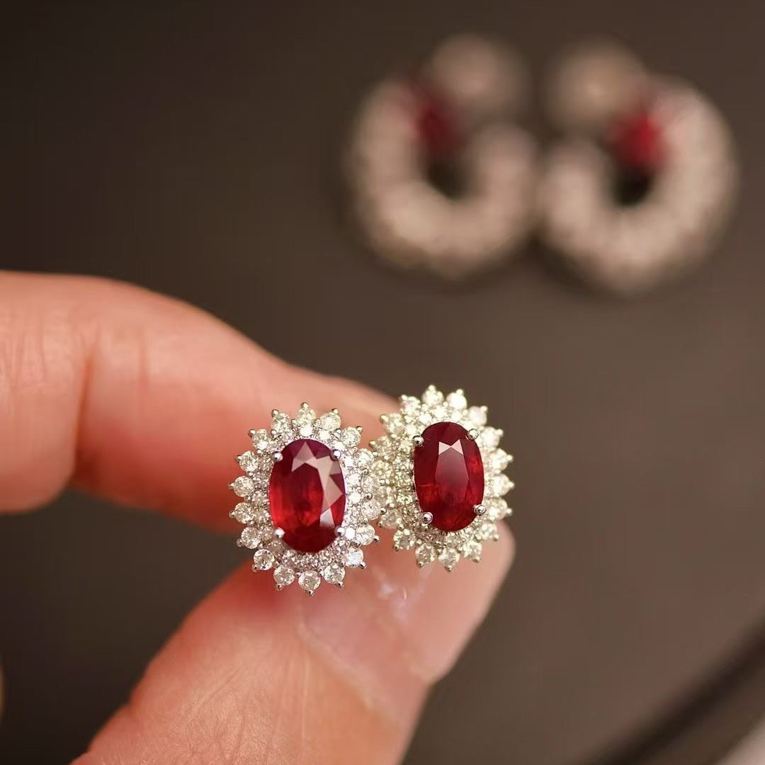 Ref:231025257 // Gold Content:14K Gold // Main Gemstone:Ruby // Shape:Oval // Carat Weight:1.2ct // Color:PigeonBlood Red // Treatment:Natural // // Adjacent Gemstone 2 : Diamond // Shape:Round // Carat Weight:0.42ct // Clarity Grade:VS-SI // Color:H // Treatment:Natural // Cut Grade:G //