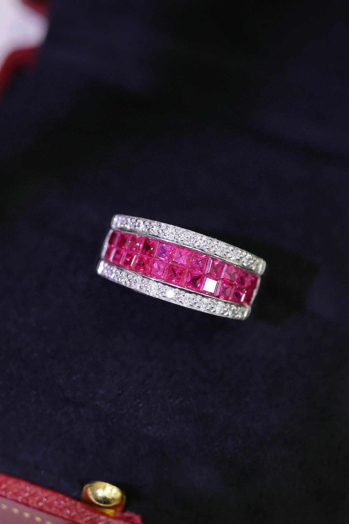 Ref:231019142 // Gold Content:14K Gold // Ring Size:7.25US // // Main Gemstone:Ruby // Shape:Princess // Carat Weight:1.34ct // Color:Red // Treatment:Natural // // Adjacent Gemstone 2 : Diamond // Shape:Round // Carat Weight:0.28ct // Clarity Grade:VS-SI // Color:H // Treatment:Natural // Cut Grade:G //