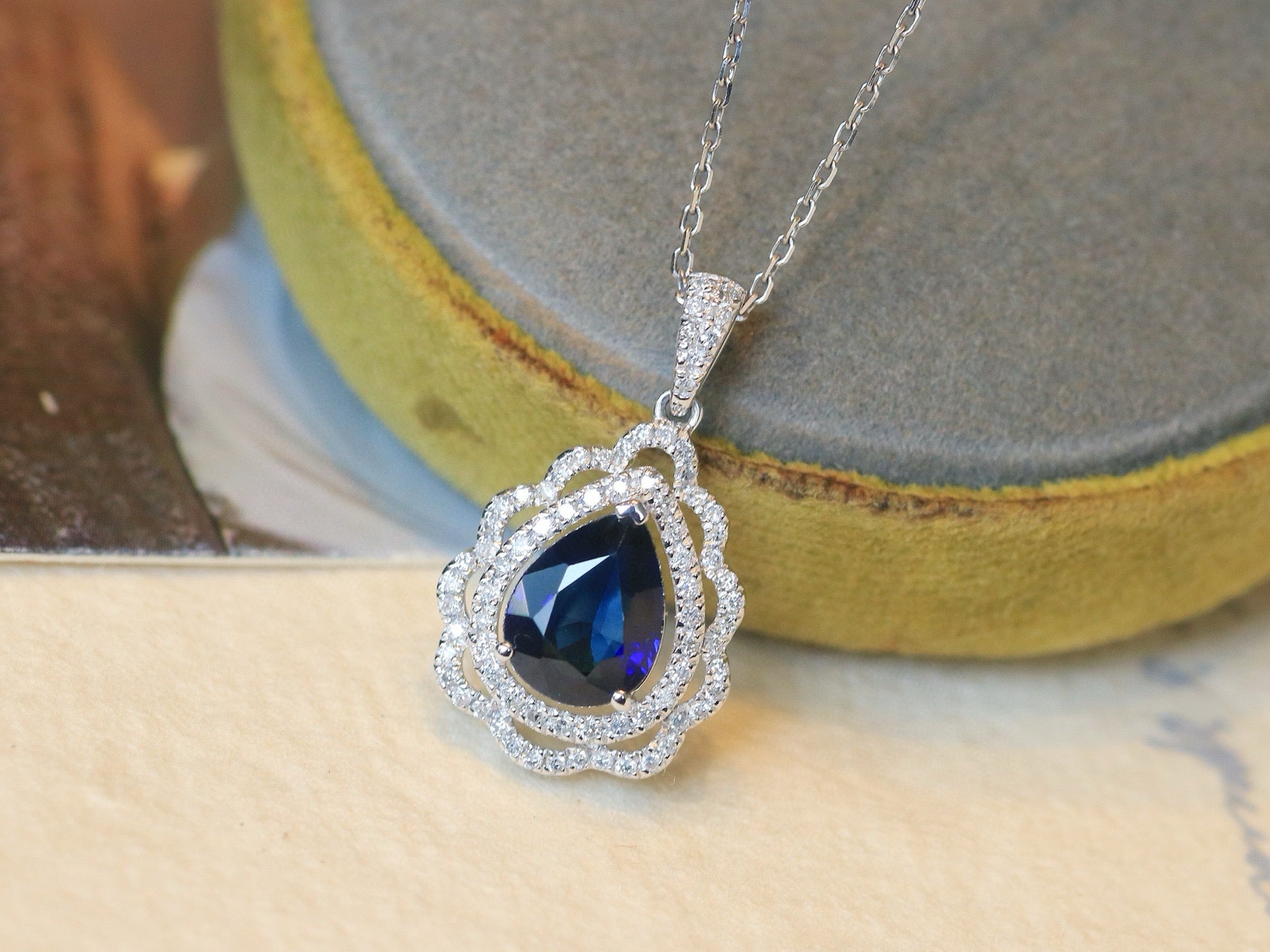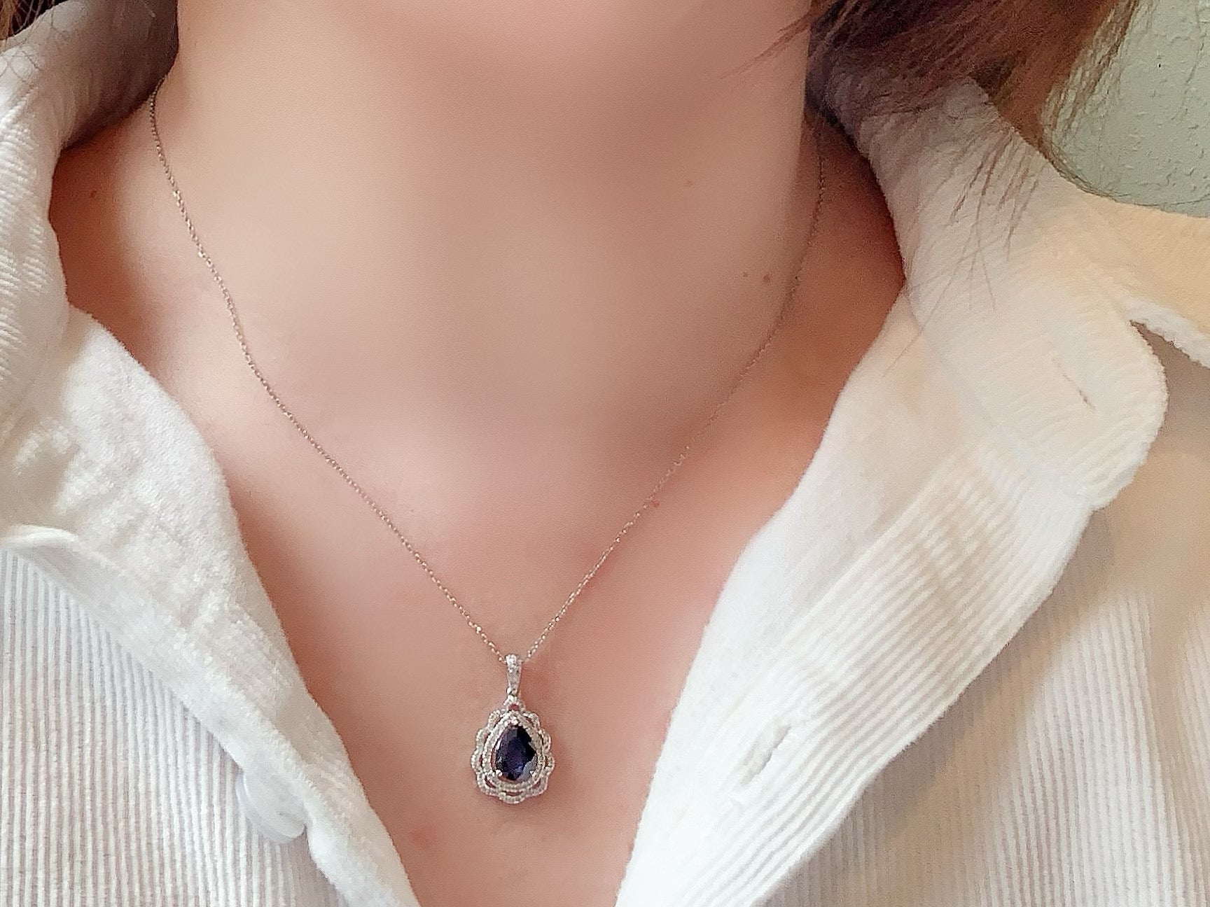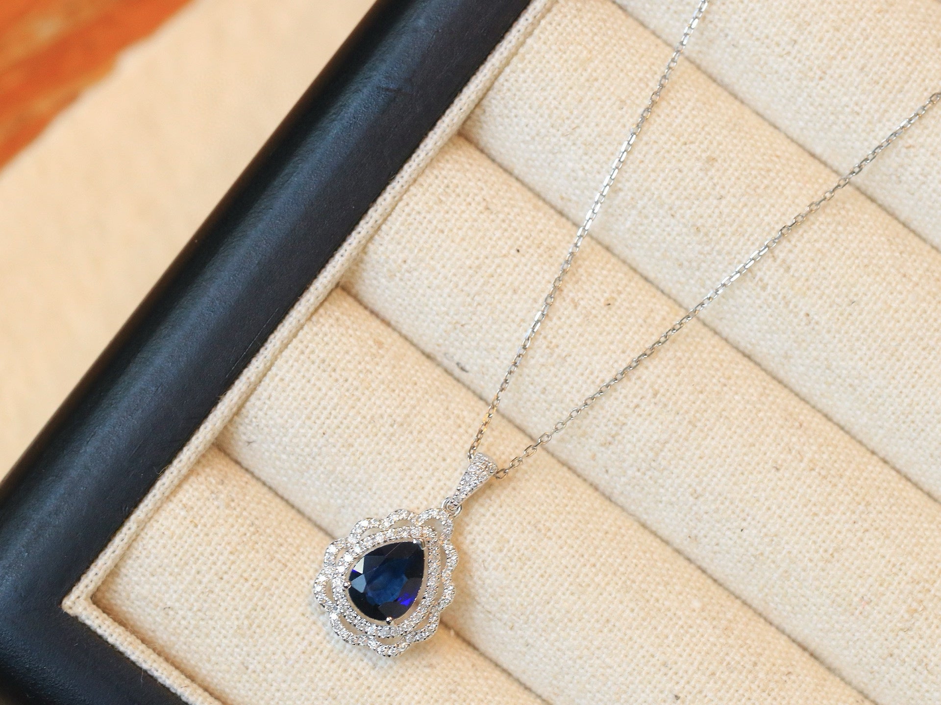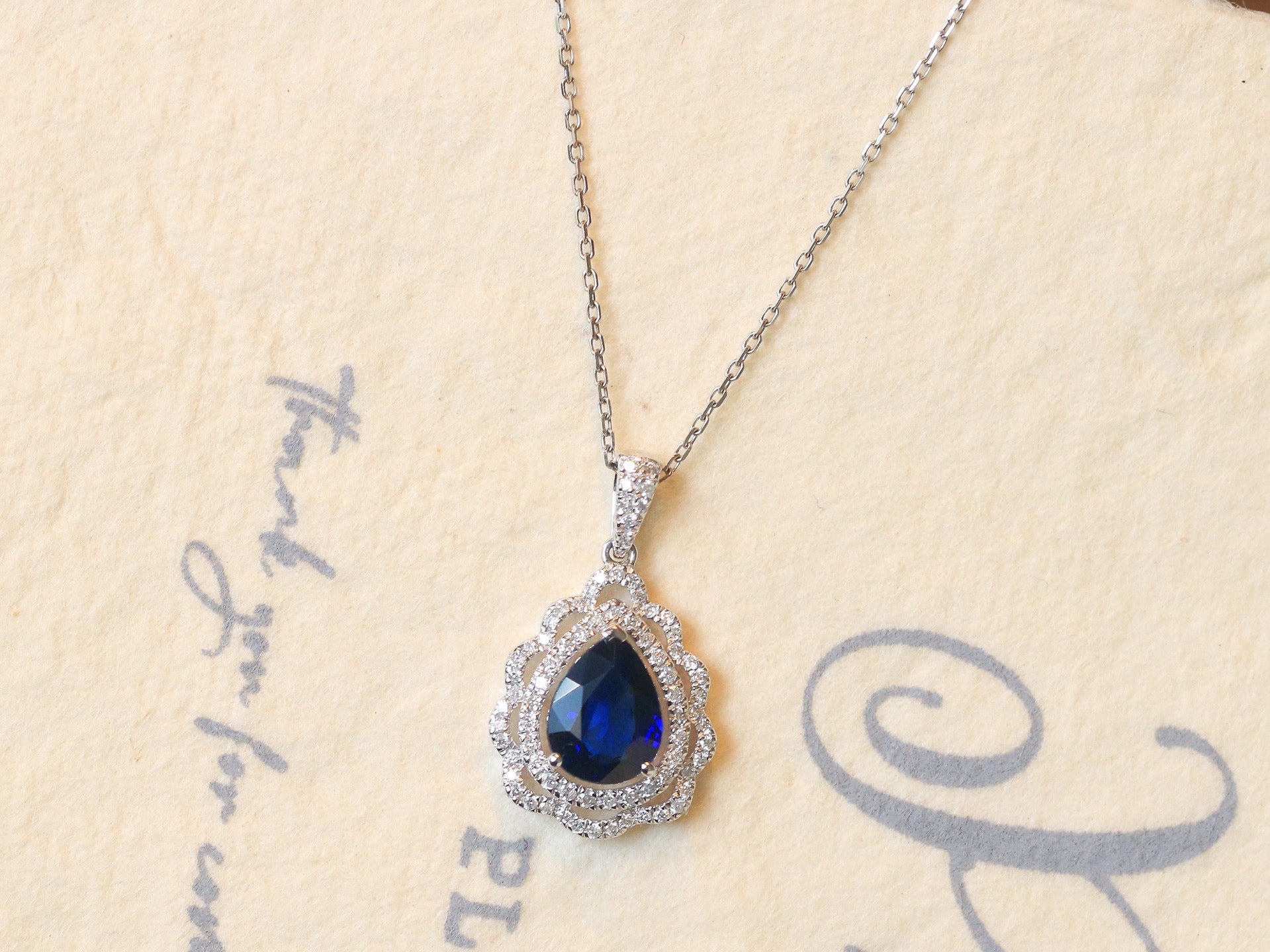 Ref:231025166 // Gold Content:14K Gold // Main Gemstone:Sapphire // Shape:Pear // Carat Weight:1.37ct // Color:Royal blue // Treatment:Natural // // Adjacent Gemstone 2 : Diamond // Shape:Round // Carat Weight:0.29ct // Clarity Grade:VS-SI // Color:H // Treatment:Natural // Cut Grade:G //