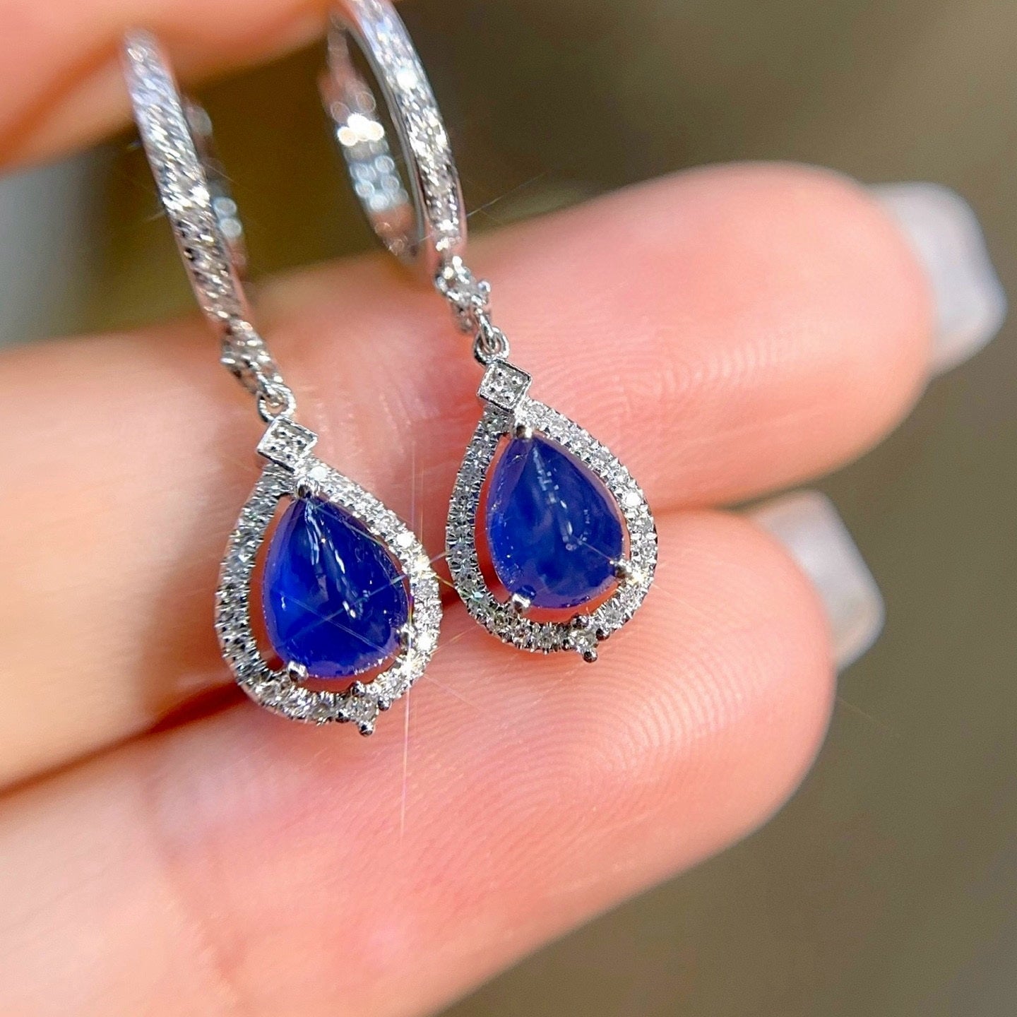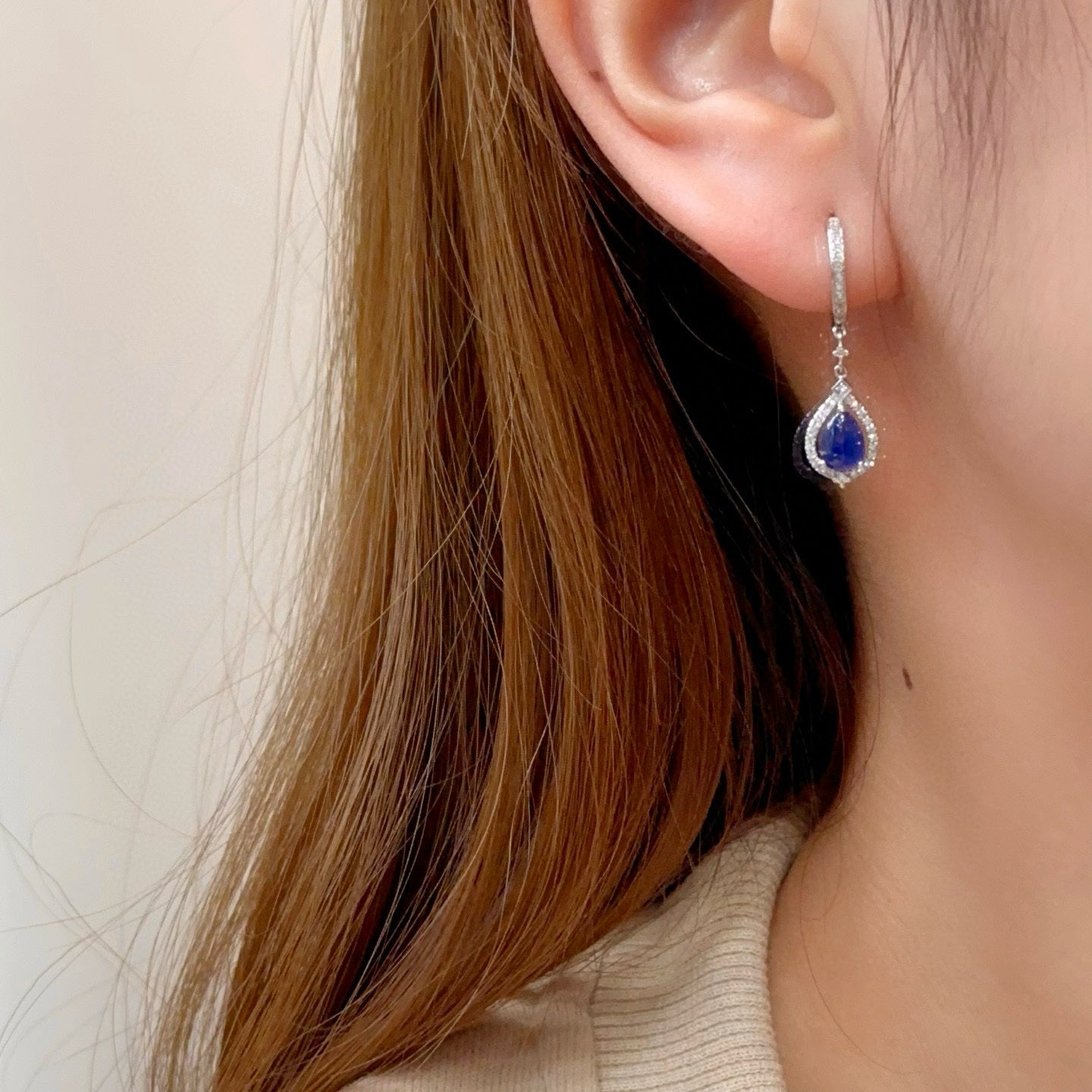Ref:231023246 // Gold Content:14K Gold // Main Gemstone:Sapphire // Shape:Pear // Carat Weight:1.68ct // Color:Blue // Treatment:Natural // // Adjacent Gemstone 2 : Diamond // Shape:Round // Clarity Grade:VS-SI // Color:H // Treatment:Natural // Cut Grade:G // // Adjacent Gemstone 3 : Sapphire // Number of stones:4 // Shape:Round // Color:White // Treatment:Natural // Cut Grade:G //