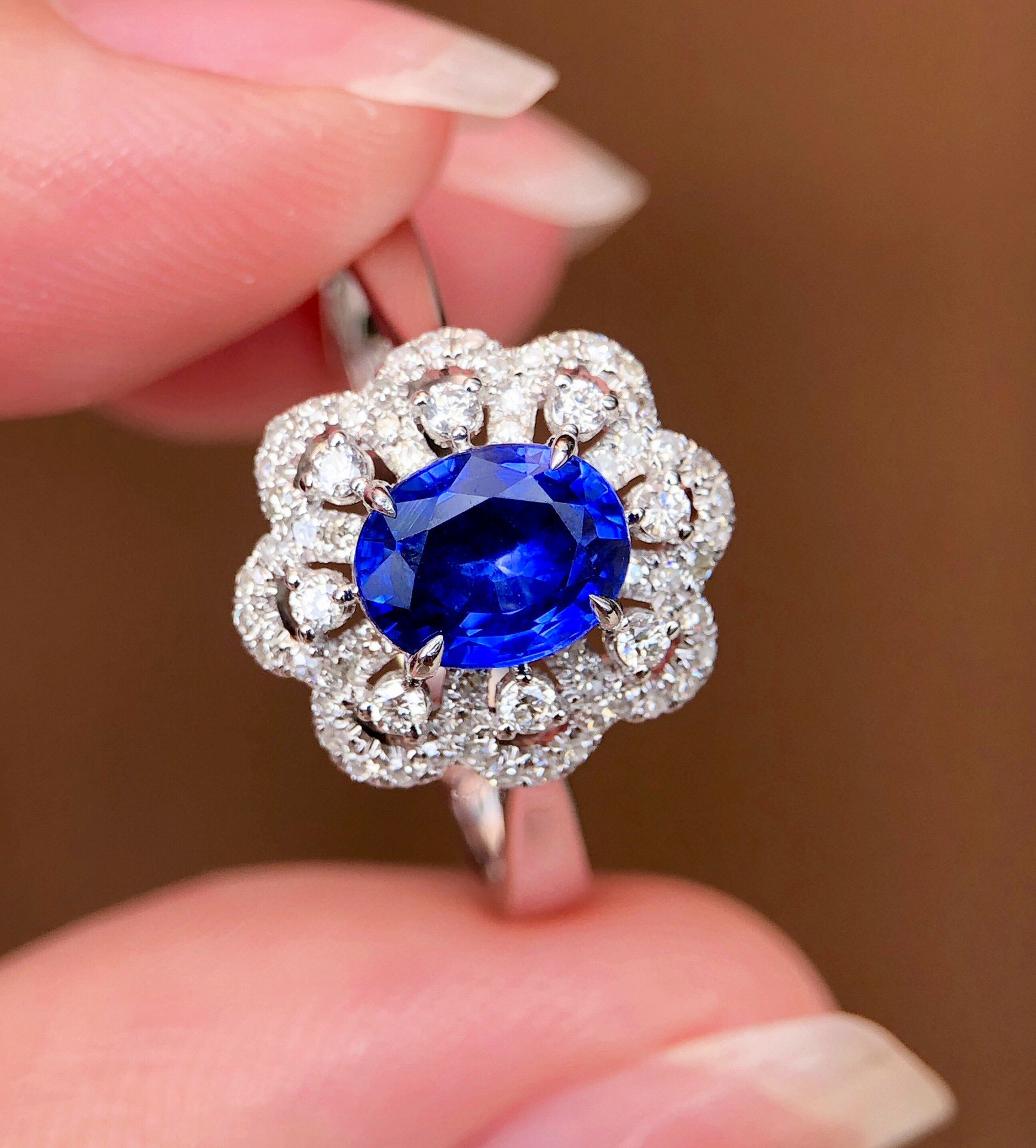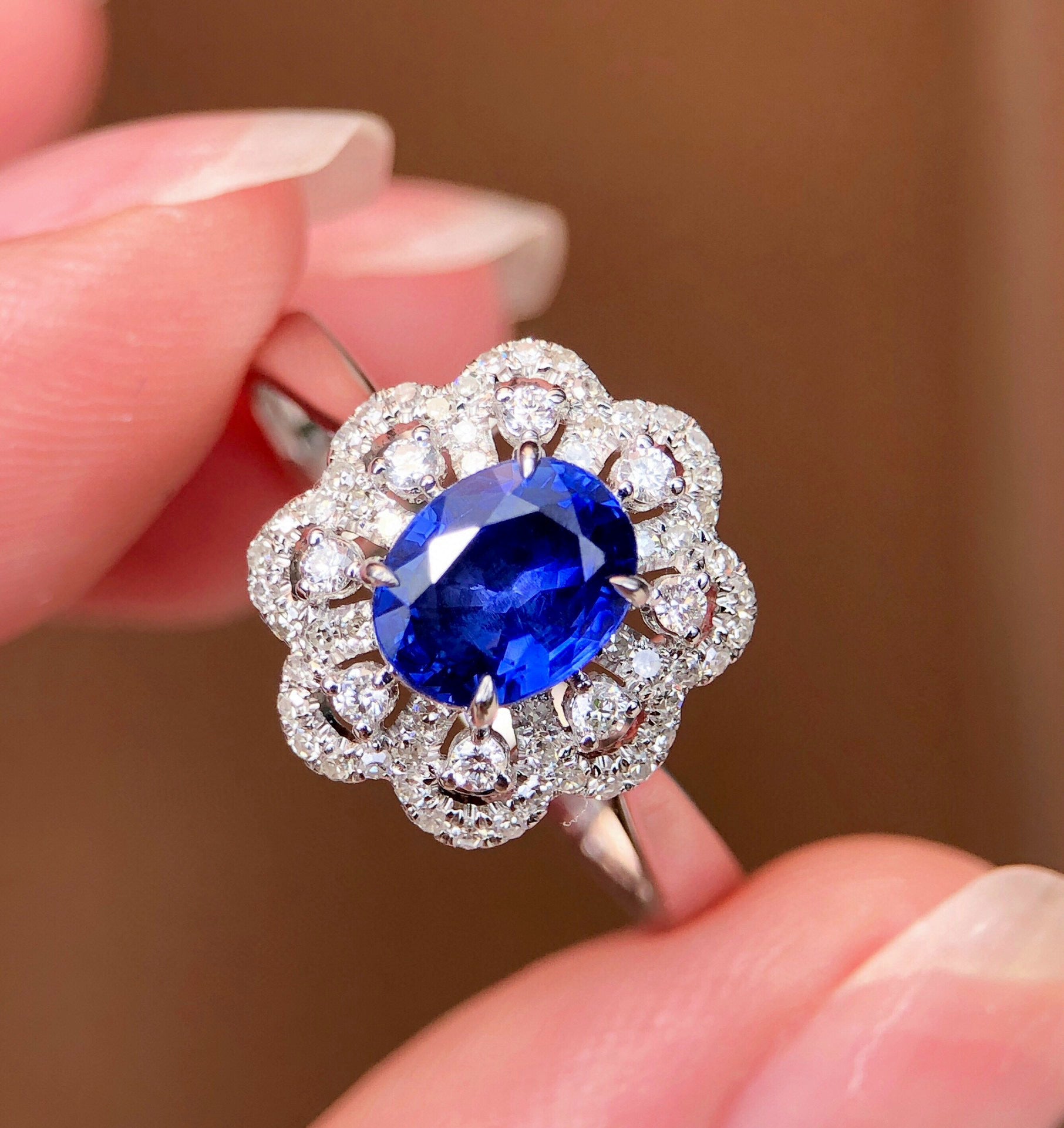 Ref:231019190 // Gold Content:14K Gold // Ring Size:7.25US // // Main Gemstone:Sapphire // Shape:Oval // Carat Weight:1.35ct // Color:Blue // Treatment:Natural // // Adjacent Gemstone 2 : Diamond // Shape:Round // Carat Weight:0.34ct // Clarity Grade:VS-SI // Color:H // Treatment:Natural // Cut Grade:G //