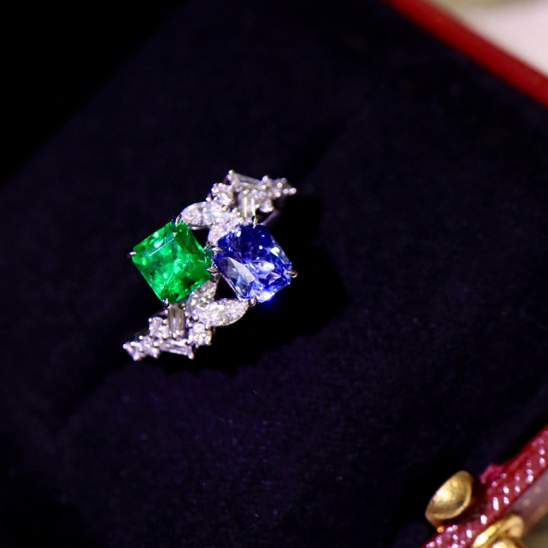 Ref:231021246 // Gold Content:14K Gold // Ring Size:7.25US // // Main Gemstone:Sapphire // Shape:Octagonal // Carat Weight:1.07ct // Color:Blue // Treatment:Natural // // Adjacent Gemstone 2 : Emerald // Shape:Octagonal // Carat Weight:0.62ct // Color:Green // Treatment:Natural // // Adjacent Gemstone 3 : Diamond // Shape:Multiply // Carat Weight:0.41ct // Clarity Grade:VS-SI // Color:H // Treatment:Natural //