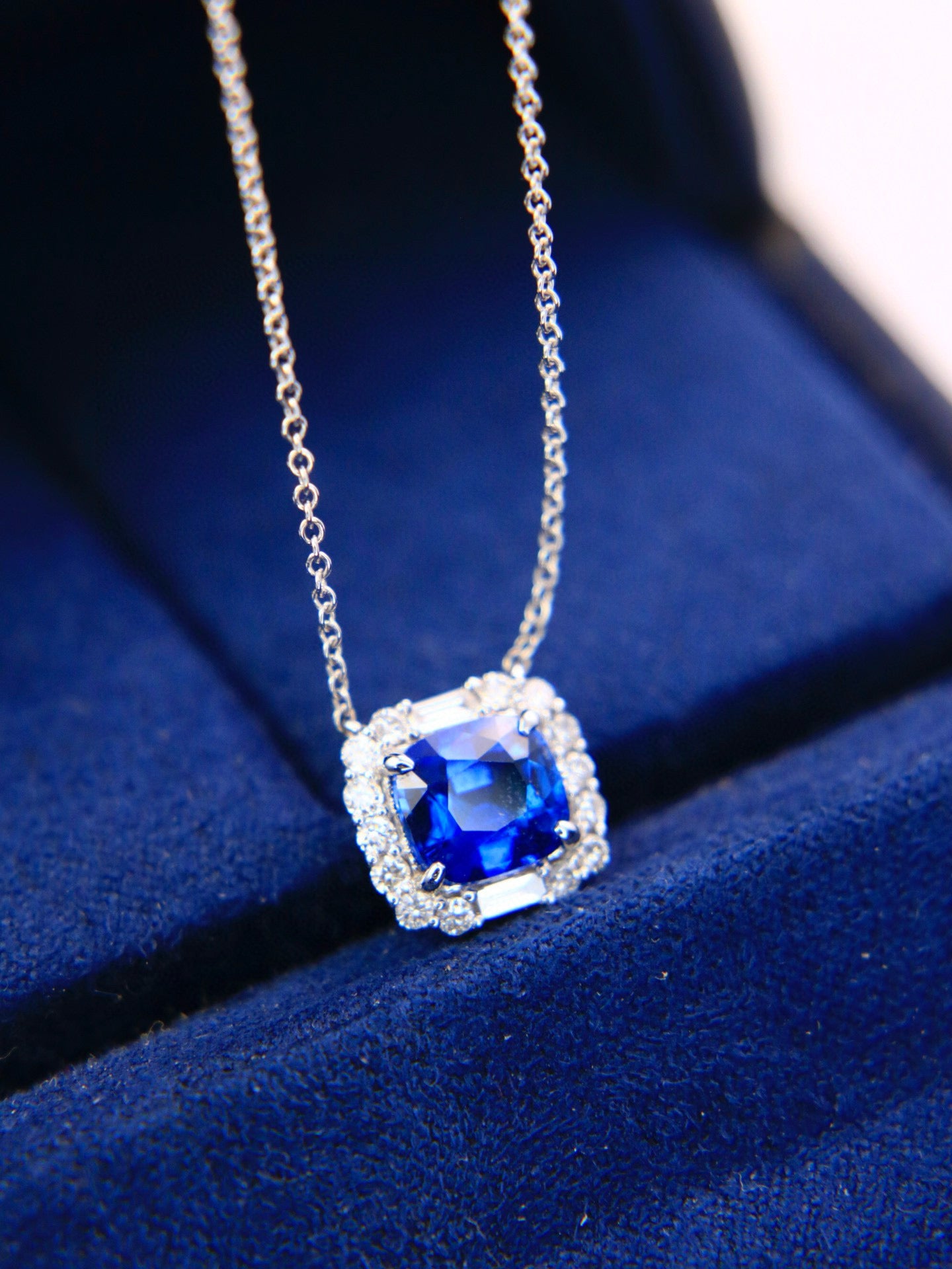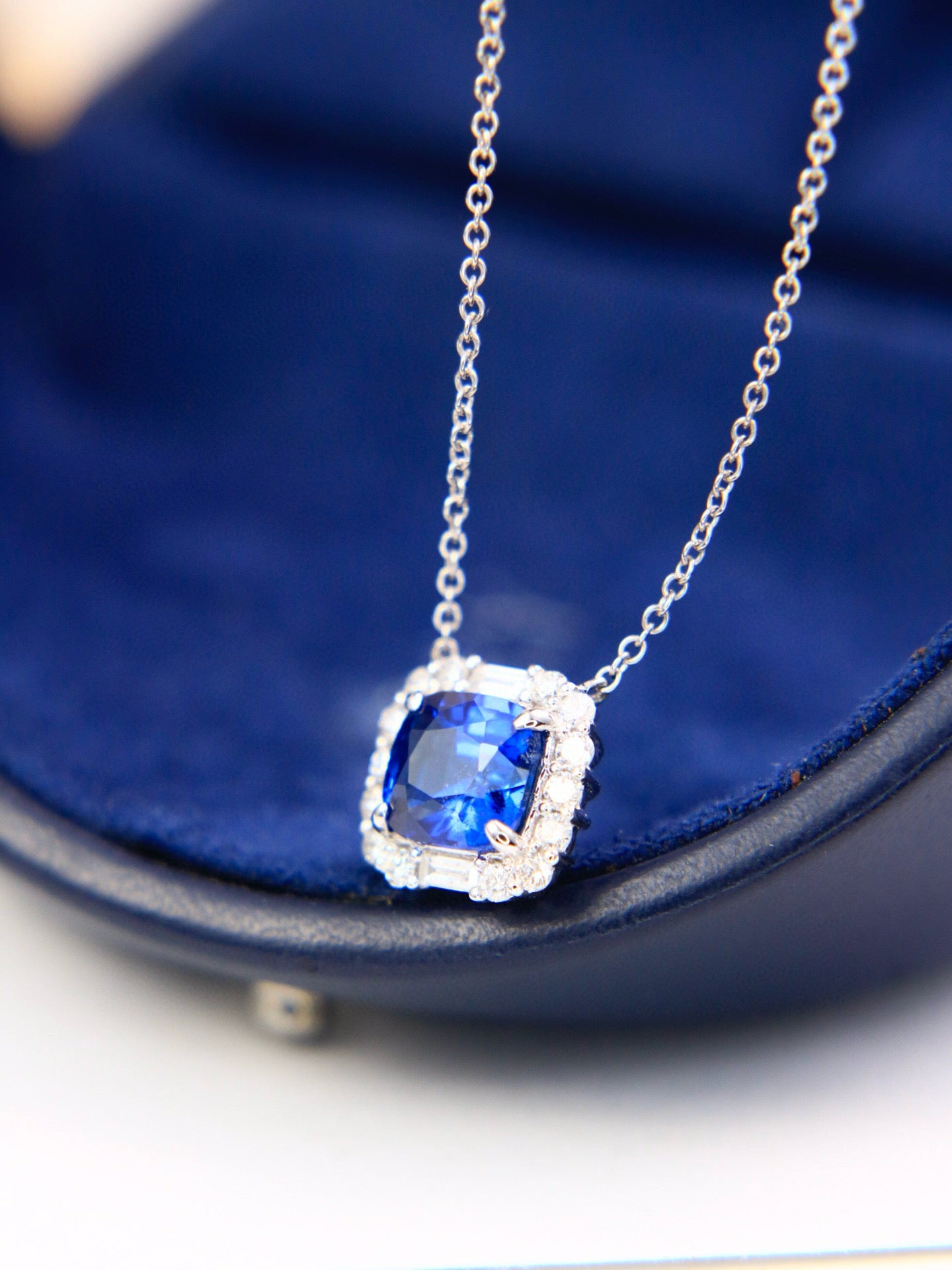 Ref:231025157 // Gold Content:14K Gold // Main Gemstone:Sapphire // Shape:Cushion // Carat Weight:1.46ct // Color:Royal blue // Treatment:Natural // // Adjacent Gemstone 2 : Diamond // Shape:Multiply // Carat Weight:0.25ct // Clarity Grade:VS-SI // Color:H // Treatment:Natural //