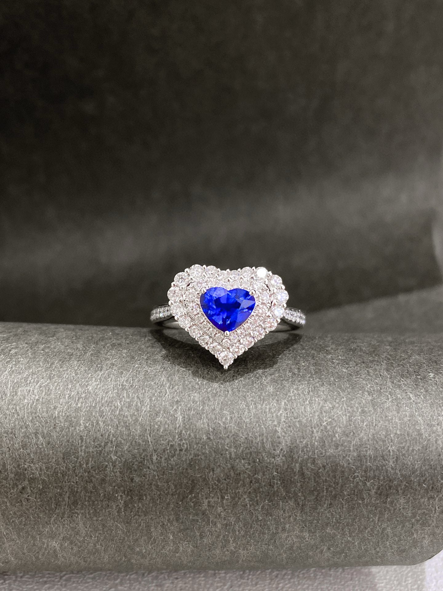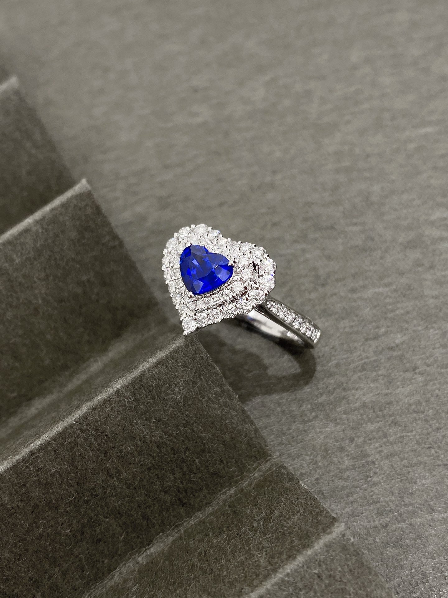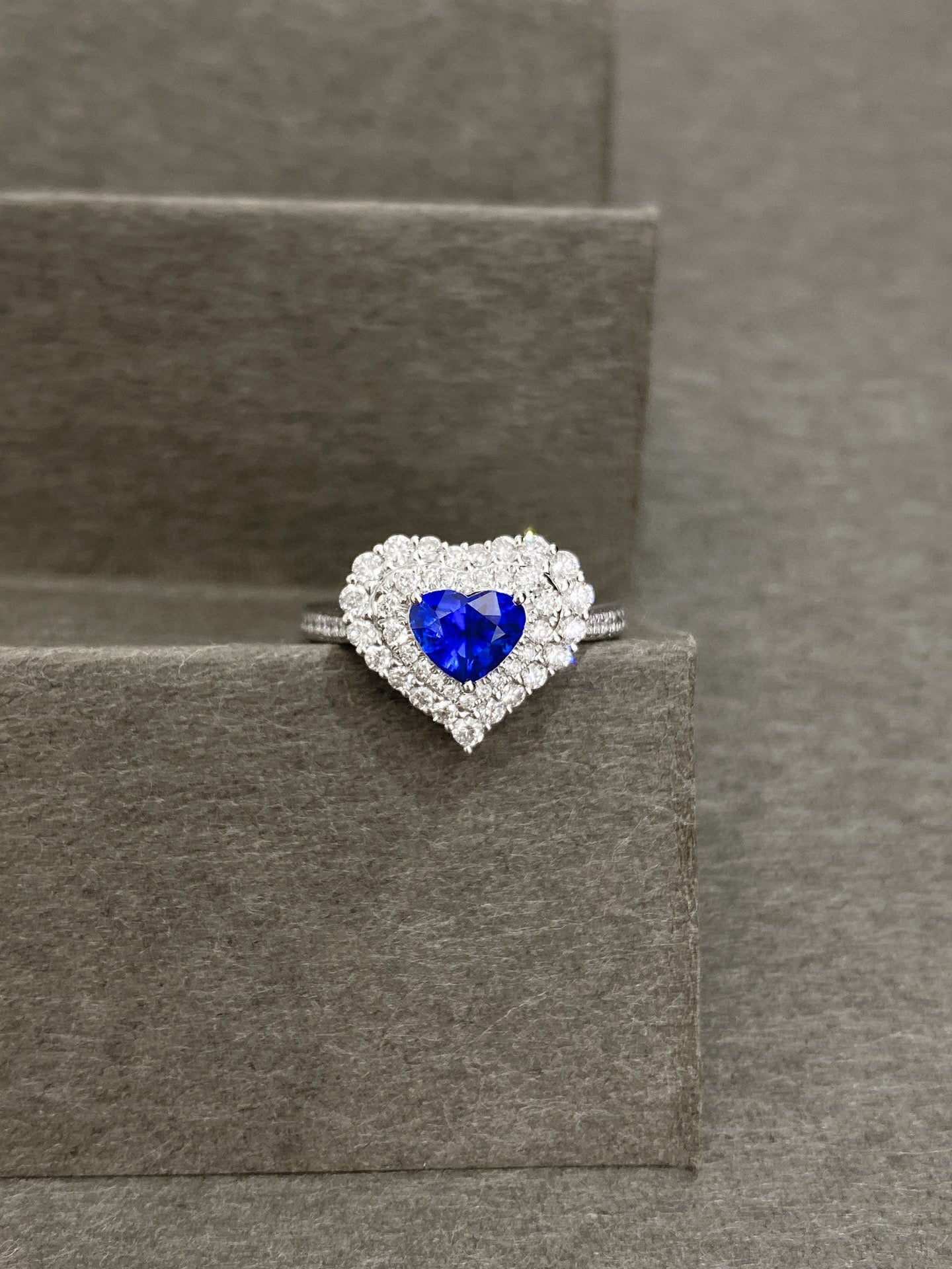 Ref:231025135 // Gold Content:14K Gold // Ring Size:7.25US // // Main Gemstone:Sapphire // Shape:Heart // Carat Weight:1.03ct // Color:Royal blue // Treatment:Natural // // Adjacent Gemstone 2 : Diamond // Shape:Round // Carat Weight:0.68ct // Clarity Grade:VS-SI // Color:H // Treatment:Natural // Cut Grade:G //