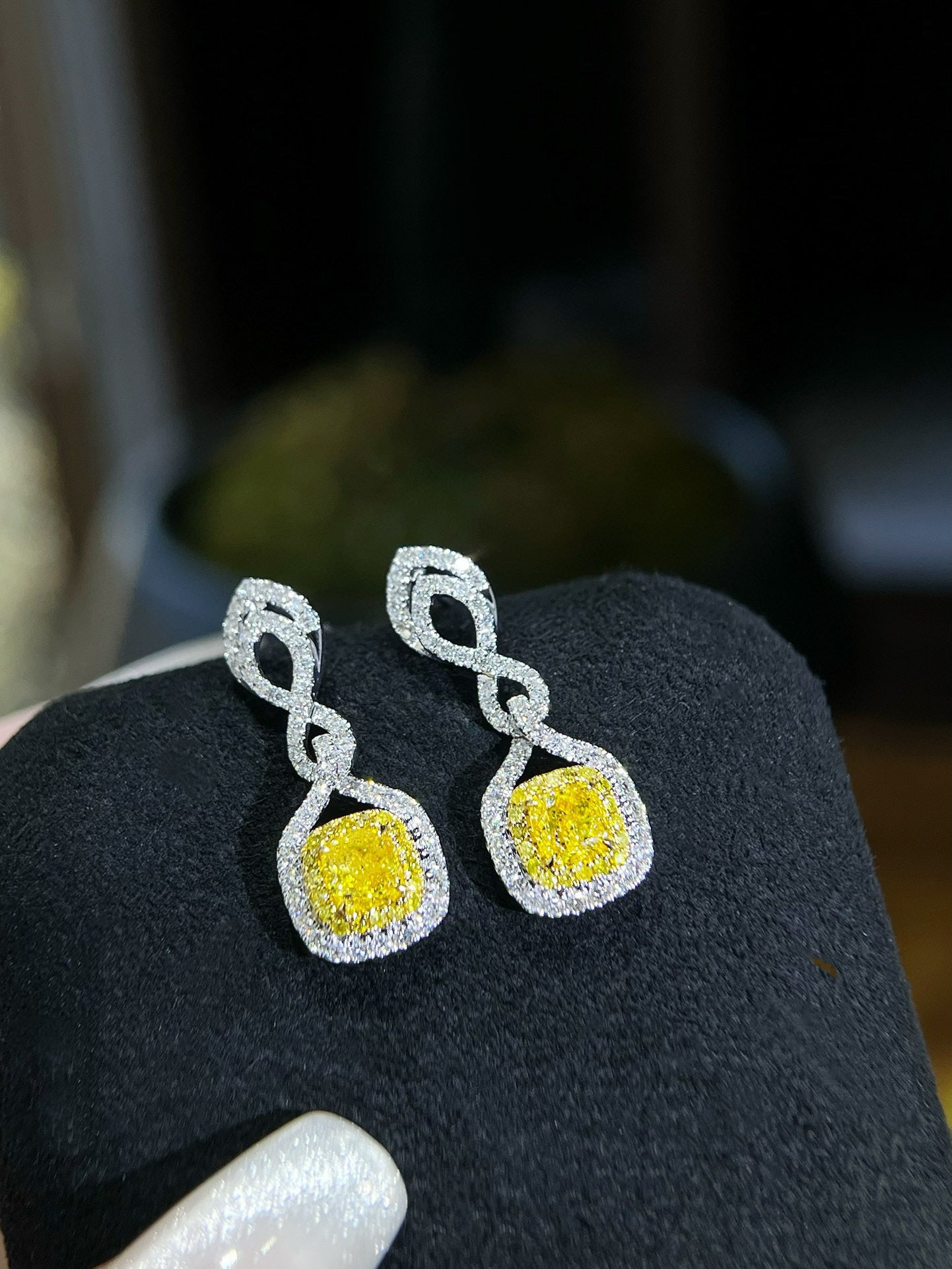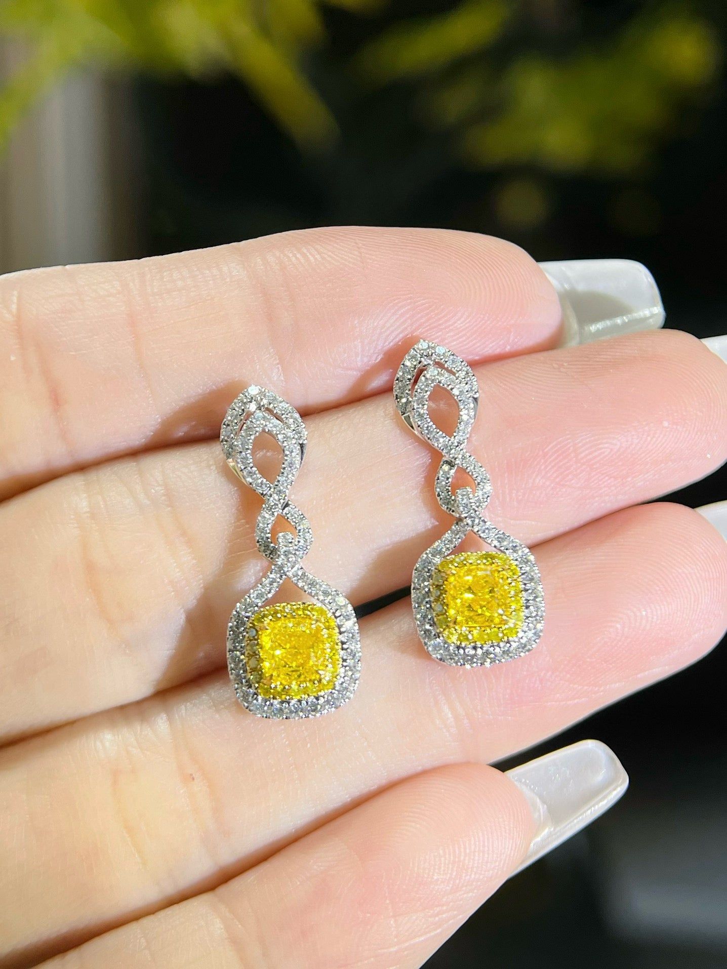 14K GOLD 1.73 CTW NATURAL YELLOW DIAMOND & DIAMOND EARRINGS
